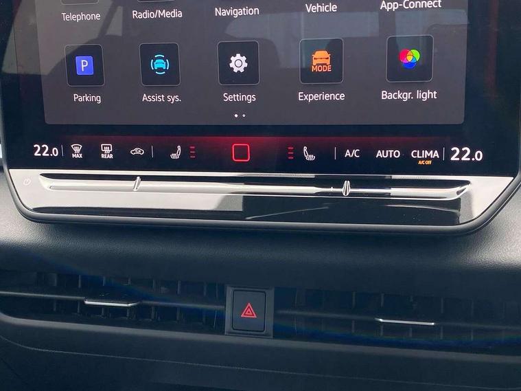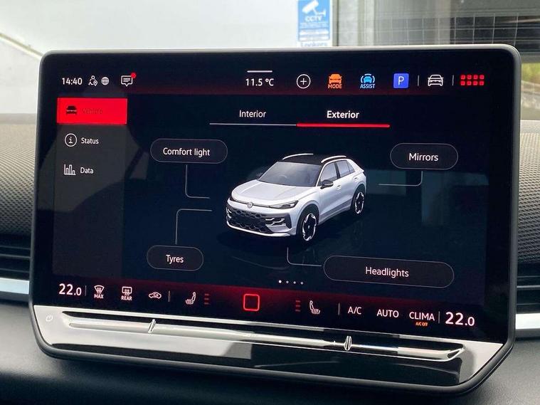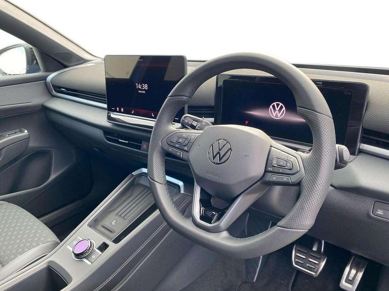 Adaptive cruise control, Driver attention monitor and driver alert system, Driving experience control with atmosphere selection, Dynamic road sign display, E-Sim card for online connectivity, Emergency call service, Front and rear parking sensors, Front cross traffic assist, Lane change system, Side assist, Rear traffic alert and Exit warning system, Lane keeping system Lane Assist, Multi color digital cockpit pro, Navigation system, Oncoming vehicle braking when turning including swerve support, PAS, Rear view camera, Voice activation spoken voice commands for telephone and navigation system, Warning sound and light for front seatbelts unfastened, Wireless app connect, Wireless Smartphone charger, Hybrid drive system MHEV, Sports suspension - Sport +15mm, Start/stop function with battery regeneration, 12.9" infotainment display, 2 USB C ports in front, 1 USB C charging socket on the rear center console, charging capacity up to 45W, DAB Digital radio, Diversity antenna for FM reception, Mobile phone interface with inductive charging feature, We Connect and We Connect Plus functionality, 3D LED rear combination lamps, Auto dimming interior rear view mirror, Automatic headlight control with LED separate daytime running lights with coming/leaving home function, Electrically folding, adjustable and heated door mirrors with front passenger exterior mirror lowering function, High Beam Assist, automatic sensing for switching between dipped and main beam, Illuminated door handle recesses, Illuminated Volkswagen logo and molding, LED 3rd brake light, R-Line design body coloured bumpers, Rain sensor, Rear fog light on one side and reversing lights on both sides, Rear privacy glass, Rear side wing doors, Rear wiper, Surround lighting with welcome light, Without headlamp washer system with washer fluid level indicator, 12V power socket in centre console, 3 rear head restraints, 3 seat bench in 2nd row, Air care climatronic 3 zone air conditioning system with rear air conditioning control panel, Aluminium front scuff plates with R Line logo, Artvelours cloth upholstery, Black roof lining, Brushed stainless steel pedals, Chrome plated radiator grille inserts, air vent surrounds and light switch surrounds, Door and side trim panel with leatherette insert, Driver/front passenger seat height adjustment, Front + rear carpet mats, Front centre armrest, Front comfort sports seats, Front footwell illumination, Heated front seats, Heated leather wrapped multi function steering wheel with paddle shift, Inserts of seats in fabric R-Line, Integrated head restraints on front seats, Interior ambient lighting with 30 colour options, ISOFIX anchors for child seats on outer rear bench seats and on front passanger seat compatible for i-Size, Luggage compartment floor adjustable in 2 heights, for flat cargo area, Non-folding front passenger seat backrest, Power-adjustable lumbar support in front seats, Single front passenger seat, Soul black dashboard, Sports steering wheel with touch control, Sunvisors with illuminated vanity mirrors, Unsplit rear seat bench, asymmetric folding backrest, with centre armrest, 3 point height adj front seatbelts + pretensioners, 3 point seatbelts in outer rear seats, ABS, Automatic emergency braking, Child locks on rear doors, Curtain and side airbags in front with centre airbag, Driver and front passenger airbag with front passenger airbag deactivation, Drivers seatbelt reminder, Electronic parking brake with auto hold function, Electronic stability control (ESC) and Electromechanical brake booster, First aid kit with warning triangle and safety vest, Front Assist with pedestrian and cyclist detection, Front disc brakes, Hill start assist, Rear disc brakes, Tyre pressure loss indicator, Alarm with interior protection, Keyless locking and starting system keyless access with safelock, Decorative inserts in matte pyrite silver, Decorative material set,