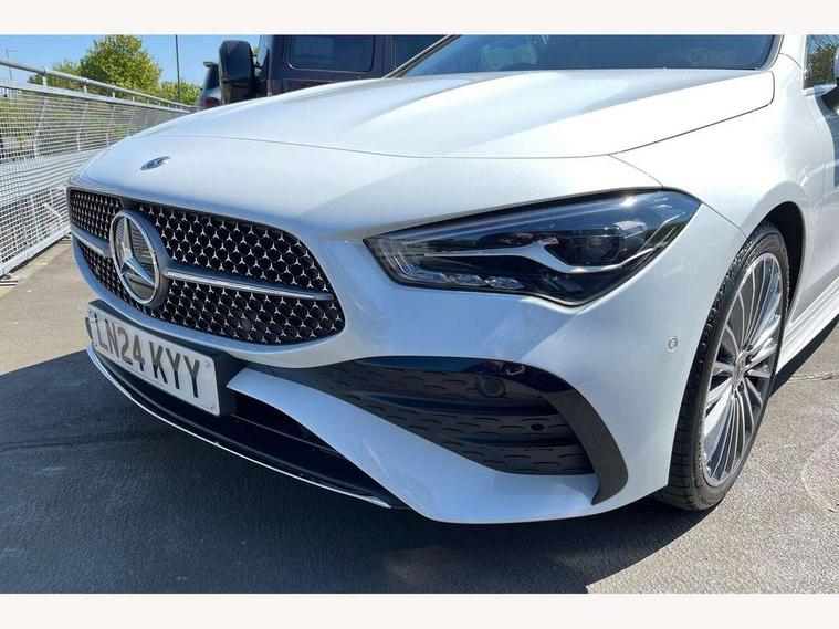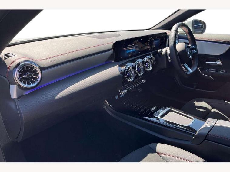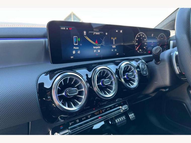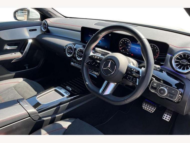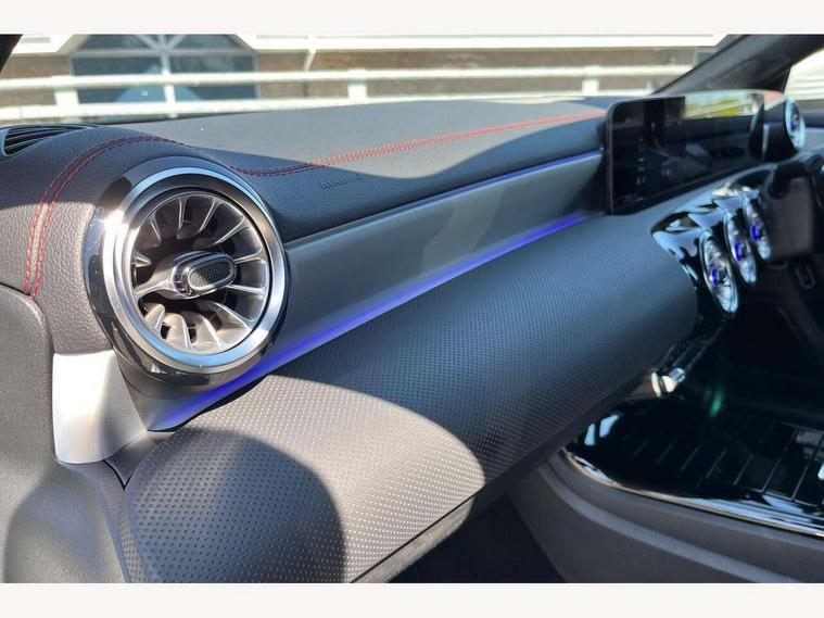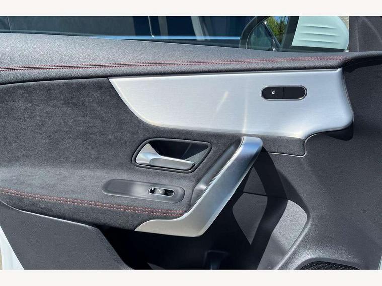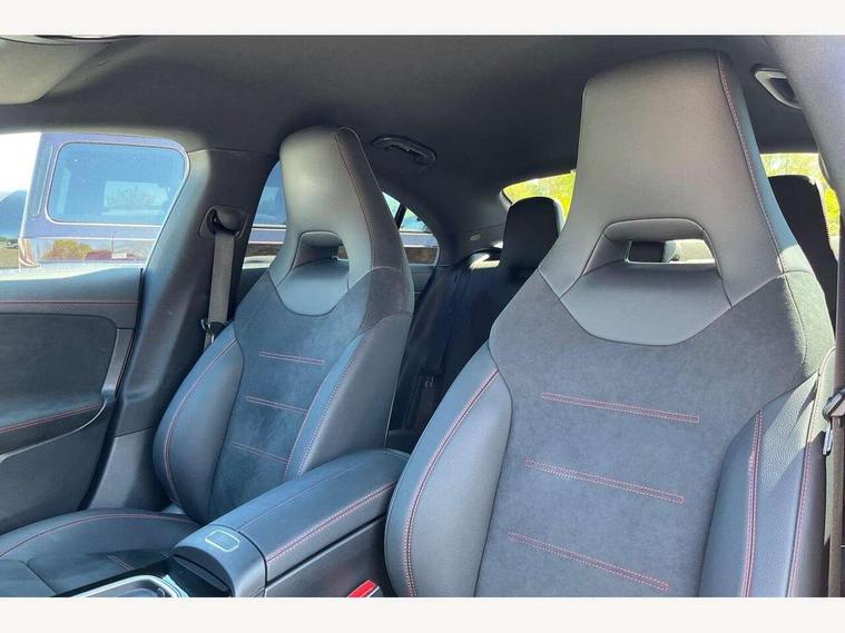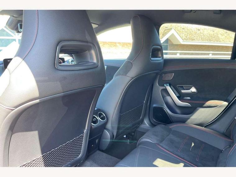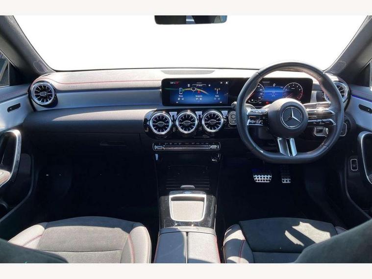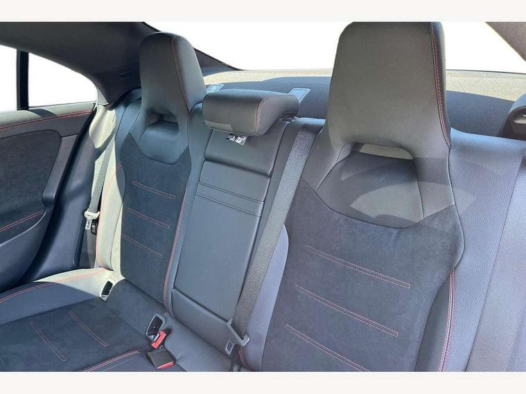 10.25 inch Instrument display with digital cockpit, 10.25 inch touchscreen central media display, Active lane keeping assist, Attention assist - Monitors steering behaviour and long journey fatigue, Blind spot assist, Bluetooth connection, Car wash mode, Cruise control with limiter, Direct steer system, DYNAMIC SELECT with a choice of driving modes (ECO, Comfort, Sport and Individual), ECO start/stop function, Fluid level warning indicator for fuel, oil, coolant and washer fluid, Hard-disk navigation, Hey Mercedes Voice activation, Lamp failure indicator, MBUX augmented reality for navigation, Mercedes me connect including emergency call system, accident recovery, breakdown and maintenance management, Mercedes me remote services, Outside temperature gauge, Owners manual in English, Pre-installation of private car share, Radio aerial integrated into front and rear windshields, Service indicator (ASSYST), Smartphone integration with Apple CarPlay and Android auto, Speed limit assist, Trip computer in multifunction display with current consumption indicator, Wireless charging in the front centre console, Comfort suspension with ride height lowering, Rear axle multi-link, DAB digital radio tuner, MBUX multimedia system, Mercedes Benz advanced sound system (225 W) with 10 speakers, 1 central speaker, speakers on doors, a tweeter on door, one sub woofer + boost amplifier, Pre installation for Mercedes Benz Link, Adaptive brake lights, AMG body styling with AMG front apron and rear apron and visible exhaust tailpipe in chrome trim elements, Body colour door handles, Chrome beltline strips, Electric windows, Electrically adjustable and heated door mirrors with integrated LED indicators, Exhaust system with 2 Visible tailpipe trim elements and rear apron with trim in chrome, Hand free access, Headlamp assist automatic headlamp activation, Heated glass rear windscreen + timer control, High level LED third brake light, Interior mirror with black reading lamps and frameless, LED high performance headlamps with integrated LED daytime running lights and adaptive highbeam assist, LED tail lamp, Privacy glass with dark tinting on rear side windows and rear window, Radiator grille with Mercedes-Benz pattern in chrome with central Mercedes star and single louvre with chrome inserts, Rain sensing windscreen wipers with two sensitivity settings, Rear boot, Rear fog lamp, Rear side wing doors, Variable front intermittent wipers, Window line trim strip in high gloss aluminium, 3 seat bench in 2nd row, 3 twin spoke flattened multifunction steering wheel in nappa leather - horizontal twin spoke in high gloss black, vertical twin spoke in silver chrome, 4 way lumbar support, 40:20:40 split folding rear seat backrests, Air condition air vents with surround in silver chrome, Air conditioning - Two zone thermotronic luxury automatic climate control with display, Artico man-made leather/Microcut microfibre upholstery, Automatic child seat recognition sensor, Black roof lining, Brushed stainless steel sports pedals with rubber studs, Floor mats with stitched AMG lettering, Fluorescent jacket, Front centre armrest with stowage, Galvanished gear shift paddles in silver chrome, Heated front seats, Illuminated front door sills with Mercedes Benz lettering and changeable cover, Interior lighting - 64 colour Ambient lighting, Luggage net on driver/front passenger seat backrest, Manually height and reach adjustable steering column, Rear armrest with two integral cup holders for drinks, Rear head restraints, Single front passenger seat, Sport seats with fixed head restraints, Stowage compartment in centre console with retractable cover, Sunvisors with illuminated vanity mirrors, Twin front cupholders, Two outer rear seat isofix and top tether child seat fixing points, Keyless go comfort pack - CLA, Light and sight pack - CLA, Mirror pack - CLA, Parking pack with reversing camera - CLA, Seat comfort pack - CLA, USB package plus - CLA, Active bonnet pedestrain safety measure which detects an impact and raises bonnet by 65mm, Active brake assist includes forward collision warning system with autonomous braking, Adaptive brake assist with hold function and hill start assist, Anti lock braking system (ABS) with brake assist, Black seat belts, Bonnet with power domes, Brake calipers with Mercedes-Benz lettering, Brake pad wear warning indicator, Childproof locks manually operated for rear doors and electrically operated for rear power windows, Crash responsive emergency lighting, Driver and front passenger head and sidebags, Driver and front passenger windowbags, Drivers knee airbag, Dual stage driver and front passenger airbags, Electric parking brake, Electronic stability programme with acceleration skid control, ESP curve dynamic assist, Exit warning, Front and rear seatbelt reminder, Front passenger seat occupancy sensor, Perforated front brake discs, Sports braking system, Three point rear seat belts, Tyre pressure monitoring system, Warning triangle and first aid kit, Alarm system with immobiliser and interior protection -Thatcham category 1, Guard 360 deg vehicle protection - tow away protection with visual, acoustic warning, interior monitoring, preinstallation for parking damage, Remote central locking and crash sensor with emergency opening function, Light aluminium with longitudinal grain interior trim, 19" AMG multi spoke light alloy wheels painted in titanium grey with high sheen finish, Summer tyres, Tirefit tyre sealant kit,