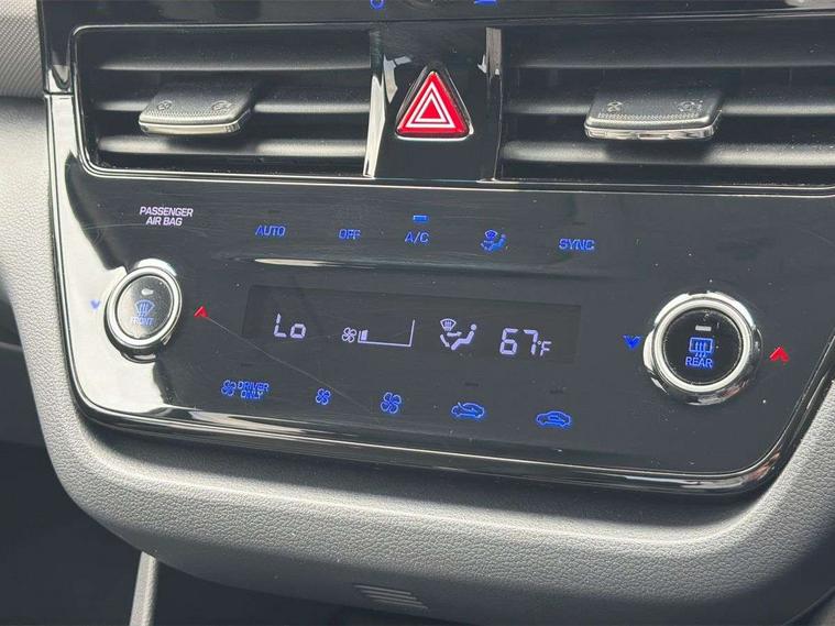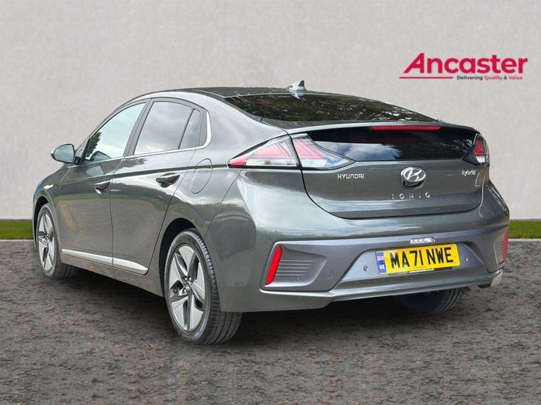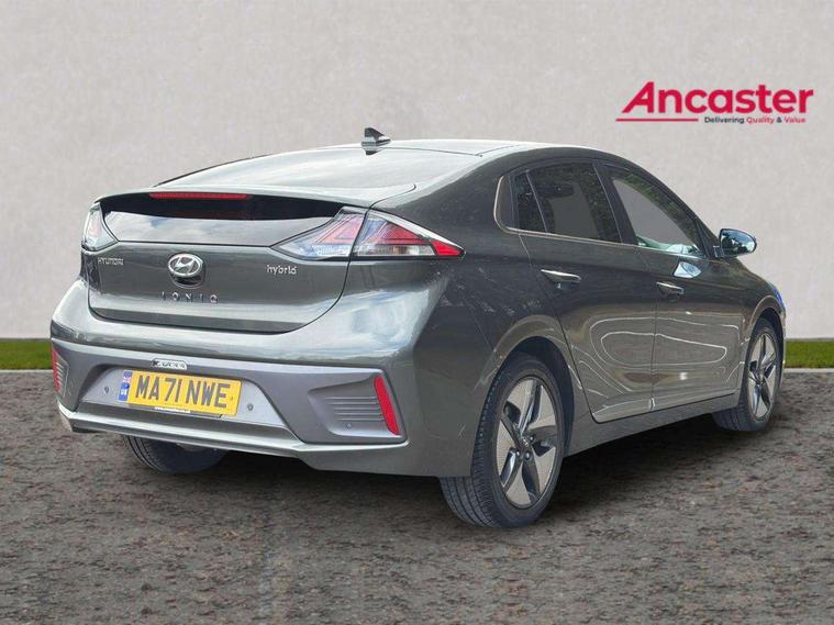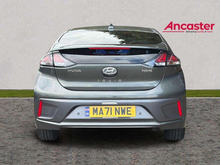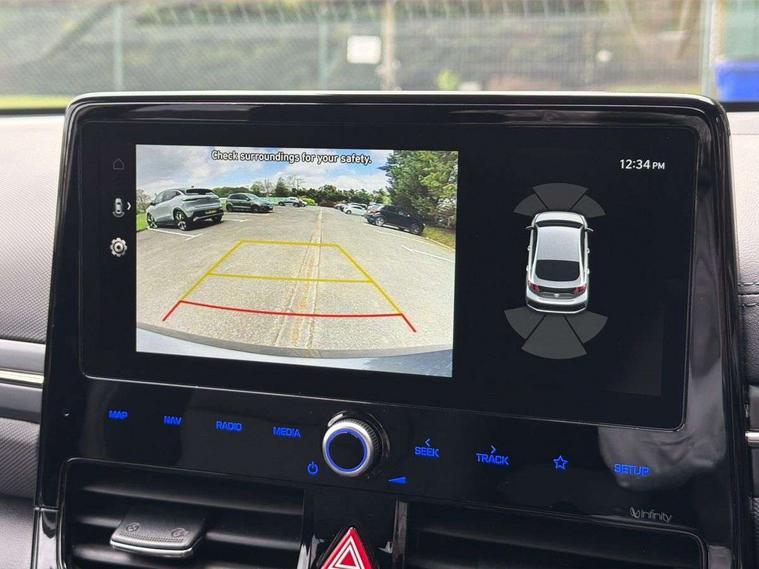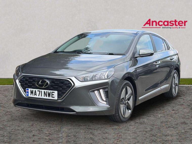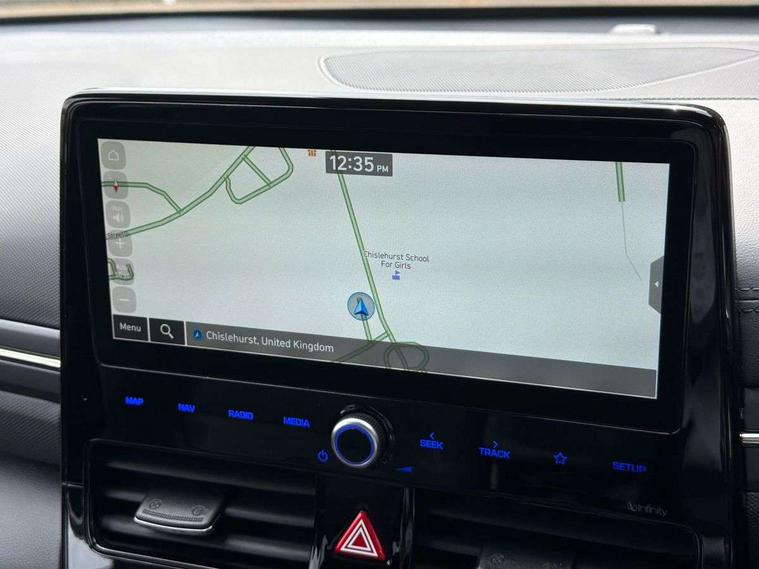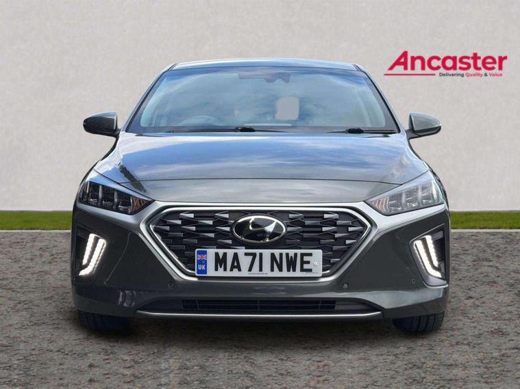 10.25" touchscreen satellite navigation includes traffic messaging channel, mapcare, live services and bluelink, Adaptive cruise control with Stop and Go, Apple car play/Android Auto, Blind spot detection system, Bluetooth system, Driver attention alert system, E-call, Eco driving assistant system (ECO DAS), Electric power steering with variable drive modes, Front and rear parking sensors, Gear lever drive mode selector, Lane departure warning system with lane keep assist - LKAS, Lane follow assist, Parking system with rear camera and guidance system, Rear cross traffic alert, Rear view monitor, Roadside assistance, Supervision cluster with 7" high resolution TFT LCD, Voice recognition, Windscreen washer fluid sensor and warning indicator, Wireless phone charging pad, DAB Digital radio, Infinity sound system includes 1 centre, 2 tweeters, 2 front, 2 rear and 1 ext amp, Radio data system, Steering wheel audio, phone and cruise controls, USB and aux connection in front, Active air flap radiator grille, Auto dimming rear view mirror, Automatic defog system for front windscreen, Automatic headlights with dusk sensor, Automatic windscreen wipers with rain sensor, Body colour bumpers, Body colour door handles with chrome inserts, Body colour door mirrors, Bodyside mouldings, Chrome door scuff with ioniq logo, Chrome finish window surround, Chrome radiator grille, Door mirror puddle lights, Electric adjustable door mirrors, Electric front windows - anti trap + one touch, Electric heated door mirrors, Heated rear windscreen, High beam assist, LED daytime running lights, LED Headlights, LED indicators in door mirrors, LED rear fog light, Positioning Lights - LED, Power folding door mirrors, Privacy glass, Rear electric windows, Rear LED lights, Rear roof spoiler with integrated LED brake light, Solar glass with windscreen shade band, Two tone rear bumper, 12V power outlets, 60/40 split folding rear seat, Centre console storage, Centre interior light, Chrome interior door handles, Driver's electric adjustable lumbar support, Driver's seat memory, Driver/passenger sunvisors with illuminated vanity mirrors, Dual zone climate control, Electric height adjustable driver seat, Front centre armrest with storage compartment, Front cupholder, Front head restraints with vertical and horizontal adjustment, Front seat and rear pockets, Heated front seats, Heated outer rear seats, Heated steering wheel, Illuminated luggage compartment, Interior mood lighting, Leather upholstery, Leather wrapped steering wheel, Luggage net, Manual height adjustable front passenger seat, Map and reading lights, Paddle shifter, Rear centre console with air vents, Sunglasses holder, USB - driver arm rest (charging only), Ventilated front seats, Vertical adjustment rear head restraints, 3x3 point rear seatbelts, Airbags - front, front side, curtain and drivers knee airbags, Anti-lock brake system (ABS), Autonomous emergency braking, Electric parking brake, Electronic stability control, Front passenger airbag deactivation switch, Hill start assist control (HAC), Regenerative braking system, Traction control, Tyre pressure monitoring system with individual tyre pressure display, Deadlocks, Immobiliser, Keyless smart entry with push button start, Remote central locking, Tyre repair kit,