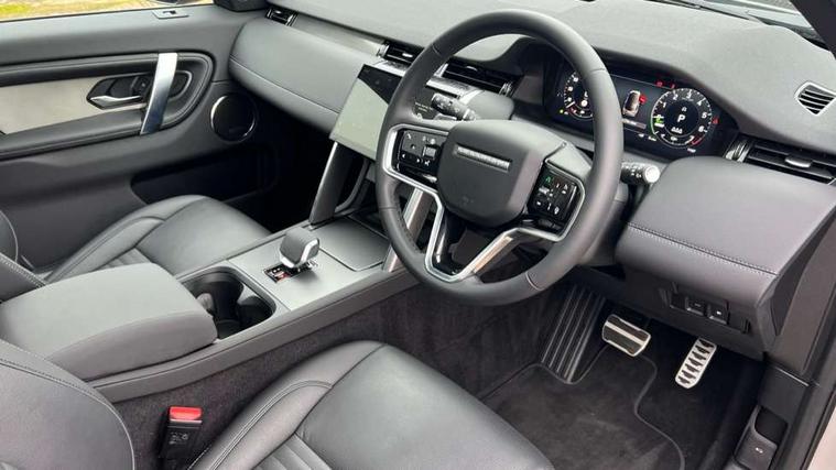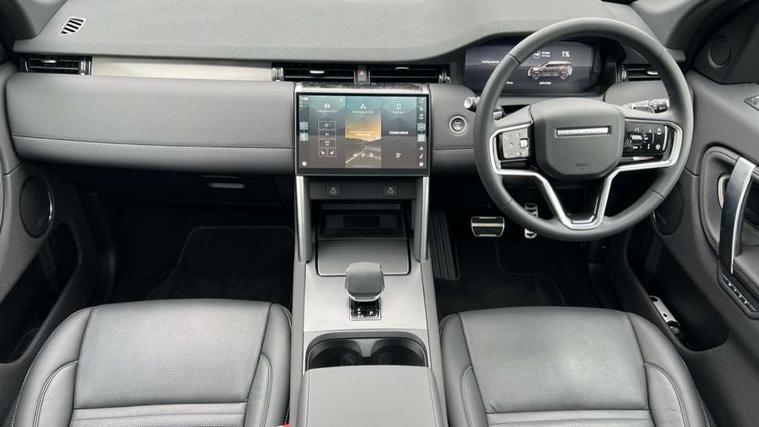 11.4" touch screen, Adaptive cruise control, Android Auto, Apple CarPlay, Driver condition monitor, eCall emergency call system, Front and rear parking aid, InControl remote premium, Interactive driver display, Lane keep assist, Locking fuel flap, PAS, Pivi Pro connected navigation system with upgraded Infotainment, Powered tailgate/boot lid, Push button start, Service interval indicator, Tailgate, Traffic sign recognition with adaptive speed limiter, Trip computer, Wireless device charging, 7 kW onboard charger, All terrain progress control, Coil suspension system, Dynamic stability control, Home charging cable, Public charging cable, Terrain Response 2, Bluetooth connectivity including audio streaming, Digital Audio Broadcast radio-DAB, Steering wheel mounted audio controls, 3rd brake light, Auto high beam assist, Automatic headlight levelling, Automatic headlights, Electric front/rear windows, Electric heated/power fold door mirrors with approach lights and auto dimming driver side, Front and rear recovery eyes, Heated rear window, Heated windscreen including heated washer jets, LED headlights with signature DRL, front and rear animated directional indicators, Metal tread plates with brand name script, P300e badge, Privacy glass, Rain sensing windscreen wipers, Rear fog lights, Rear side wing doors, Rear wing door, Rear wiper, 12 way driver and 10 way passenger electric front seats with driver memory, 2 way manual headrests + 4 way electric lumbar support, 12V power socket in row 2 and load space, 5 standard seating configuration, Bright metal pedals, Carpet mats, Centre console with armrest, Ebony morzine headlining, Footwell lights, Front 12V power socket, Front and rear grab handles, Front passenger isofix child seat attachment, Heated front seats, Loadspace cover, Loadspace light, Manually adjustable steering column, Overhead lighting console, Overhead stowage for sunglasses, Rear headrests, Row 1 USB x 3, Row 2 USB-C x 2 and row 3 USB-C x 1, Satin chrome gearshift paddles, Standard steering wheel, Sunvisors with illuminated vanity mirrors, Twin front cupholders with cover, Dynamic exterior styling pack - Discovery Sport, Online pack with data plan - Discovery, 3 point seatbelts on all seats, ABS, Brake hold function, Child locks on rear doors, Collision mitigation braking system, Cornering brake control (CBC), Driver/Front Passenger airbags, Drivers knee airbag, Electronic brake force distribution, Electronic parking brake, Emergency brake assist, ESP + traction control, Hill descent control, Hill launch assist, Pedestrian airbag system, Rear seat ISOFIX, Roll stability control, Side and curtain airbags for front and 2nd row seats, Trailer stability control, Tyre pressure monitoring system, Battery Back Up System (BBUS) with tilt sensor, Global lock and unlock switch on driver door, Intrusion sensor, Keyless entry, Locking wheel nuts, Centre stack rails in noble chrome,