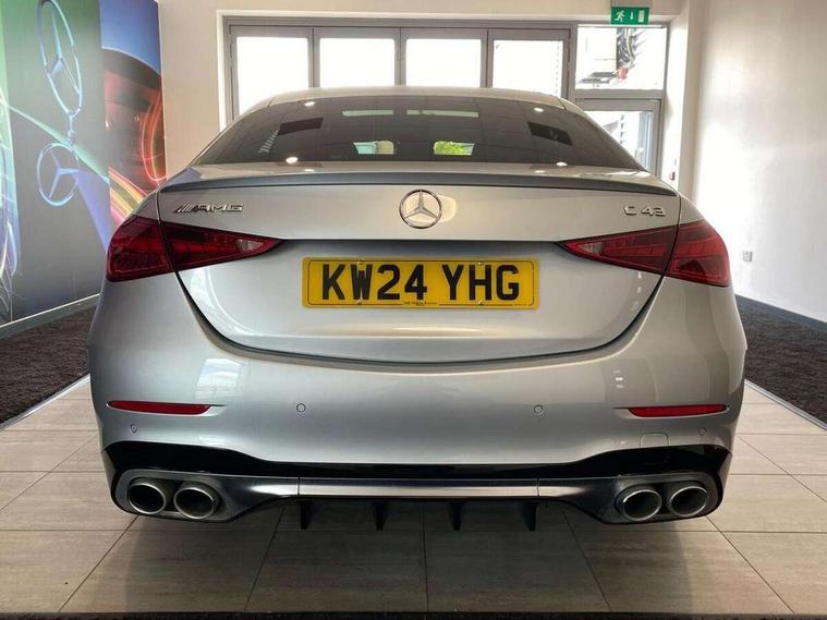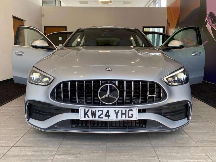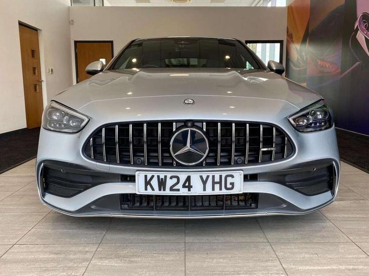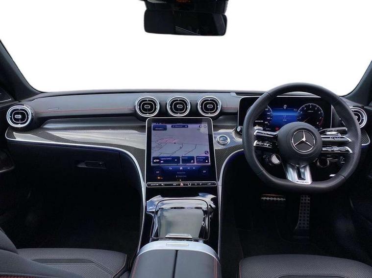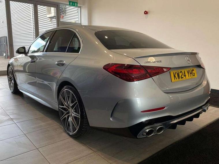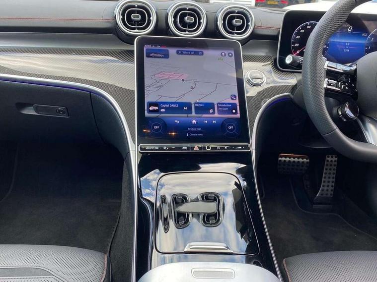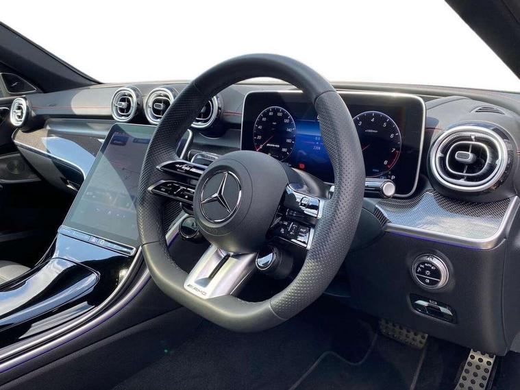 11.9" high resolution multimedia colour display, 12.3" digital instrument cluster display, Active lane keeping assist, AMG DYNAMIC SELECT with a choice of driving modes (Slippery, Comfort, Sport, Sport+, Individual), Attention assist, E-call, Extended MBUX functions, Finger print sensor, Fluorescent jacket for driver, Head up Display, MBUX augmented reality for navigation, MBUX navigation premium, MBUX voice control activated by keywords "Hey Mercedes", Mercedes connect me, Mercedes me remote services, Outside temperature gauge, Pre-installation for digital key transfer, Rear axle steering, Remote boot release, Service indicator (ASSYST), Smartphone integration, Sports direct steer speed sensitive steering, Status display for rear seat belts in instrument cluster, Traffic sign assist, Wireless charging system for mobile devices, 57 litre fuel tank, 9G TRONIC 9 speed automatic transmission, Agility control sports suspension with adaptive damping system, Petrol Particulate Filter, Residual engine heat utilisation, Sporty engine sound system, Burmester 3D surround sound system, DAB Digital radio, MBUX multimedia system, Adaptive brake lights, Adaptive high beam assist plus, AMG body styling front apron, rear apron and side skirts, AMG front bumper with sporty air intakes and chrome elements, AMG illuminated door sills with AMG lettering and with exchangeable cover, AMG lip spoiler, AMG rear bumper with high gloss chrome elements, AMG side skirts in vehicle colour, B-pillar trim in glossy black, Body coloured bumpers, Body coloured door mirrors, Chrome beltline trim, Daytime running lights, Digital light LED headlights with projection function, Electric panoramic sliding sunroof, Electric windows with one touch opening/closing and obstruction sensors, Electrically adjustable and heated door mirrors, Exhaust system with two round twin tailpipe trim elements in high gloss chrome, Green tinted glass, Heat insulating dark tinted glass, Illuminated front door sill panels, LED Indicators, LED tail lights, LED third brake light, Mercedes AMG exterior, Noise acoustic glass, Powerdomes on bonnet, Privacy glass, Radiator diamond grille with integrated Mercedes Benz star and louvre silver with chrome pins, Radio aerial integrated into rear window, Rain sensor with automatic windscreen wiper activation, Rear boot, Rear side wing doors, 3 seat bench in 2nd row, 3 spoke flattened bottom AMG multifunction steering wheel in black nappa leather with chrome inserts and perforated leather in grip area, 40:20:40 split folding rear bench seat, AMG Leather upholstery, AMG sports seats, AMG steering wheel buttons, Audio and onboard settings control on multifunction steering wheel, Auto Mercedes-Benz child seat recognition sensor, Black air vents with silver chrome elements, Black floor mats with AMG lettering, Black roof liner, Door trim elements high gloss black with silver chrome surroundings and switches, Double cupholder in centre console, Electrically height/reach adjustable steering column, Folding rear seat backrest, Front and rear head restraints, Front centre armrest with storage compartment, Gearshift paddles on steering wheel, Heated front seats, Illuminated glove compartment stowage, Interior lighting - 64 colour Ambient lighting, Mercedes AMG interior, Overhead control unit in high gloss black, Rear top tether child seat ISOFIX attachment, Single front passenger seat, Sports pedals with stainless steel surfaces and rubber studs, Sunvisors with illuminated vanity mirrors, Thermotronic automatic 4 zone climate control, Interior lighting package - C Class, Memory package - C Class, Mirror pack - C Class, Parking package with 360 degree camera - C Class, Seat comfort pack - C Class, Stowage space pack - C Class, USB package plus - C Class, 3 rear 3 point seatbelts, Active bonnet pedestrian safety measure which detects an impact and raises bonnet, Adaptive brake system with HOLD function and brake drying in the wet, Anodised silver colour brake calipers with Mercedes-Benz lettering + perforated front brake discs, Anti-lock braking system (ABS), Child proof door locks, Drivers knee airbag, Drivers pelvis airbag, Dual stage driver/passenger airbags, Electric parking brake, Electronic Stability Programme (ESP), Front centre airbag between driver and front passenger seats, Front side airbags, Larger brake discs on front axle, Rear seatbelt warning indicator, Sports braking system, Tyre pressure monitoring system, Warning triangle and first aid kit, Window airbags for driver, front passenger and rear passenger, Central locking with interior switch, automatic locking and crash sensor with emergency opening function, Chrome surround in electric key, Dashcam, Guard 360 degree vehicle protection, Keyless Go comfort access, URBAN GUARD vehicle protection (Thatcham Category 1) consisting of break-in, anti-theft alarm system (ATA), interior monitoring and tow-away protection, Artico man-made leather dashboard with contrast stitching, Centre console trim in high gloss black with carbon fiber trim, 20" AMG 5 twin spoke light alloy wheels in tantalite grey with high sheen finish, Noise reduced tyre with foam absorber, Summer tyres, TIREFIT with tyre inflation compressor,