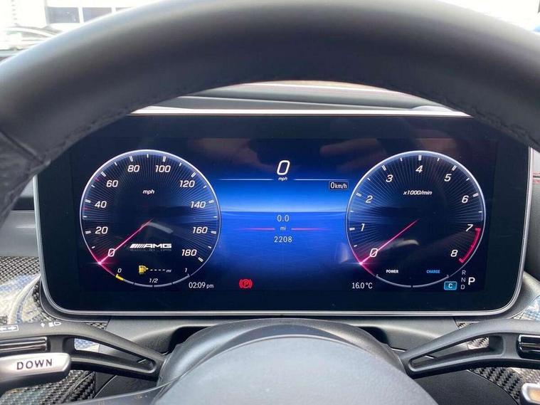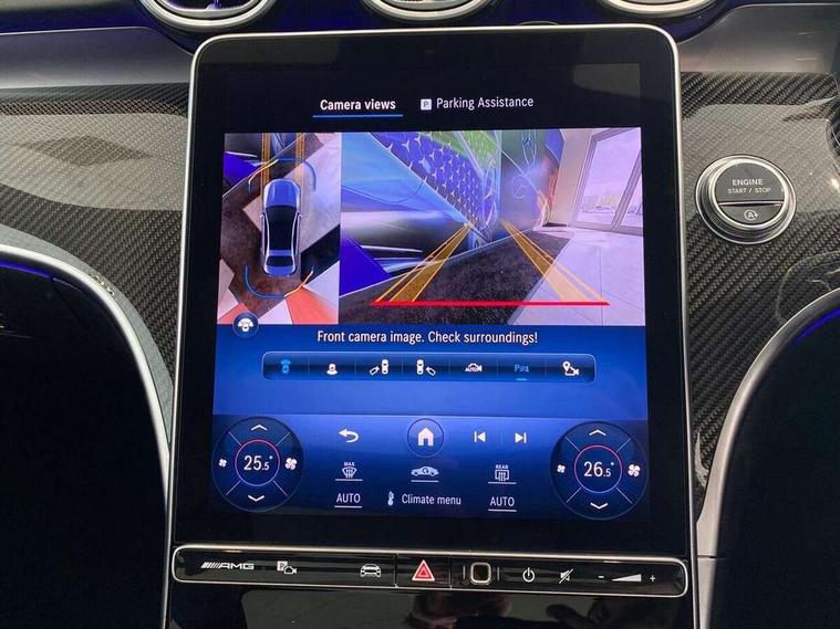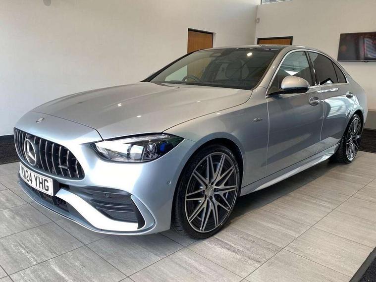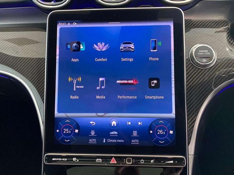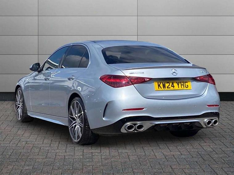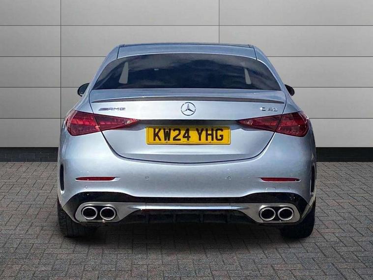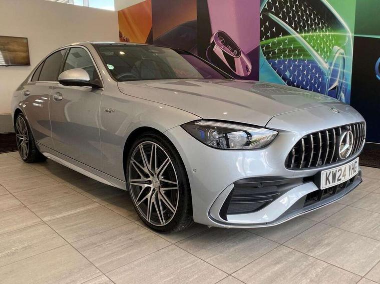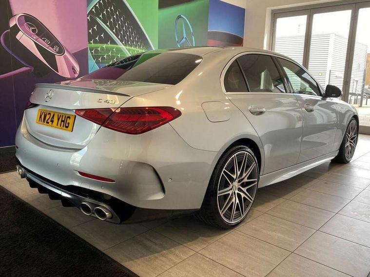 11.9" high resolution multimedia colour display, 12.3" digital instrument cluster display, Active lane keeping assist, AMG DYNAMIC SELECT with a choice of driving modes (Slippery, Comfort, Sport, Sport+, Individual), Attention assist, E-call, Extended MBUX functions, Finger print sensor, Fluorescent jacket for driver, Head up Display, MBUX augmented reality for navigation, MBUX navigation premium, MBUX voice control activated by keywords "Hey Mercedes", Mercedes connect me, Mercedes me remote services, Outside temperature gauge, Pre-installation for digital key transfer, Rear axle steering, Remote boot release, Service indicator (ASSYST), Smartphone integration, Sports direct steer speed sensitive steering, Status display for rear seat belts in instrument cluster, Traffic sign assist, Wireless charging system for mobile devices, 57 litre fuel tank, 9G TRONIC 9 speed automatic transmission, Agility control sports suspension with adaptive damping system, Petrol Particulate Filter, Residual engine heat utilisation, Sporty engine sound system, Burmester 3D surround sound system, DAB Digital radio, MBUX multimedia system, Adaptive brake lights, Adaptive high beam assist plus, AMG body styling front apron, rear apron and side skirts, AMG front bumper with sporty air intakes and chrome elements, AMG illuminated door sills with AMG lettering and with exchangeable cover, AMG lip spoiler, AMG rear bumper with high gloss chrome elements, AMG side skirts in vehicle colour, B-pillar trim in glossy black, Body coloured bumpers, Body coloured door mirrors, Chrome beltline trim, Daytime running lights, Digital light LED headlights with projection function, Electric panoramic sliding sunroof, Electric windows with one touch opening/closing and obstruction sensors, Electrically adjustable and heated door mirrors, Exhaust system with two round twin tailpipe trim elements in high gloss chrome, Green tinted glass, Heat insulating dark tinted glass, Illuminated front door sill panels, LED Indicators, LED tail lights, LED third brake light, Mercedes AMG exterior, Noise acoustic glass, Powerdomes on bonnet, Privacy glass, Radiator diamond grille with integrated Mercedes Benz star and louvre silver with chrome pins, Radio aerial integrated into rear window, Rain sensor with automatic windscreen wiper activation, Rear boot, Rear side wing doors, 3 seat bench in 2nd row, 3 spoke flattened bottom AMG multifunction steering wheel in black nappa leather with chrome inserts and perforated leather in grip area, 40:20:40 split folding rear bench seat, AMG Leather upholstery, AMG sports seats, AMG steering wheel buttons, Audio and onboard settings control on multifunction steering wheel, Auto Mercedes-Benz child seat recognition sensor, Black air vents with silver chrome elements, Black floor mats with AMG lettering, Black roof liner, Door trim elements high gloss black with silver chrome surroundings and switches, Double cupholder in centre console, Electrically height/reach adjustable steering column, Folding rear seat backrest, Front and rear head restraints, Front centre armrest with storage compartment, Gearshift paddles on steering wheel, Heated front seats, Illuminated glove compartment stowage, Interior lighting - 64 colour Ambient lighting, Mercedes AMG interior, Overhead control unit in high gloss black, Rear top tether child seat ISOFIX attachment, Single front passenger seat, Sports pedals with stainless steel surfaces and rubber studs, Sunvisors with illuminated vanity mirrors, Thermotronic automatic 4 zone climate control, Interior lighting package - C Class, Memory package - C Class, Mirror pack - C Class, Parking package with 360 degree camera - C Class, Seat comfort pack - C Class, Stowage space pack - C Class, USB package plus - C Class, 3 rear 3 point seatbelts, Active bonnet pedestrian safety measure which detects an impact and raises bonnet, Adaptive brake system with HOLD function and brake drying in the wet, Anodised silver colour brake calipers with Mercedes-Benz lettering + perforated front brake discs, Anti-lock braking system (ABS), Child proof door locks, Drivers knee airbag, Drivers pelvis airbag, Dual stage driver/passenger airbags, Electric parking brake, Electronic Stability Programme (ESP), Front centre airbag between driver and front passenger seats, Front side airbags, Larger brake discs on front axle, Rear seatbelt warning indicator, Sports braking system, Tyre pressure monitoring system, Warning triangle and first aid kit, Window airbags for driver, front passenger and rear passenger, Central locking with interior switch, automatic locking and crash sensor with emergency opening function, Chrome surround in electric key, Dashcam, Guard 360 degree vehicle protection, Keyless Go comfort access, URBAN GUARD vehicle protection (Thatcham Category 1) consisting of break-in, anti-theft alarm system (ATA), interior monitoring and tow-away protection, Artico man-made leather dashboard with contrast stitching, Centre console trim in high gloss black with carbon fiber trim, 20" AMG 5 twin spoke light alloy wheels in tantalite grey with high sheen finish, Noise reduced tyre with foam absorber, Summer tyres, TIREFIT with tyre inflation compressor,