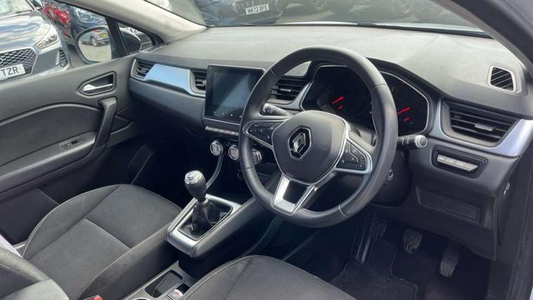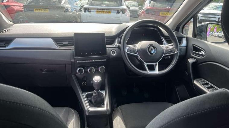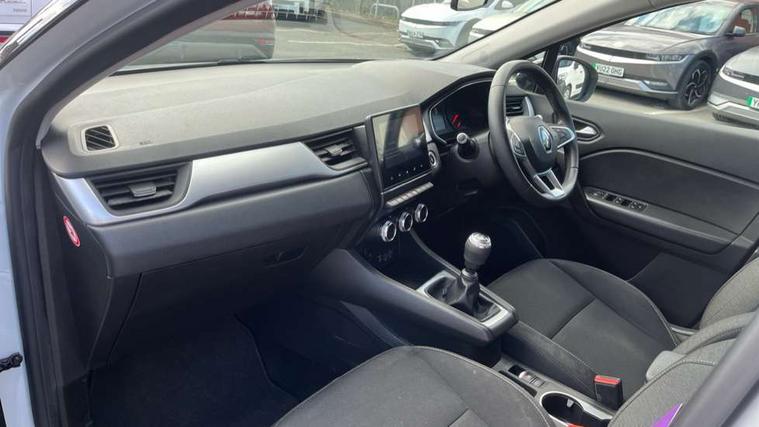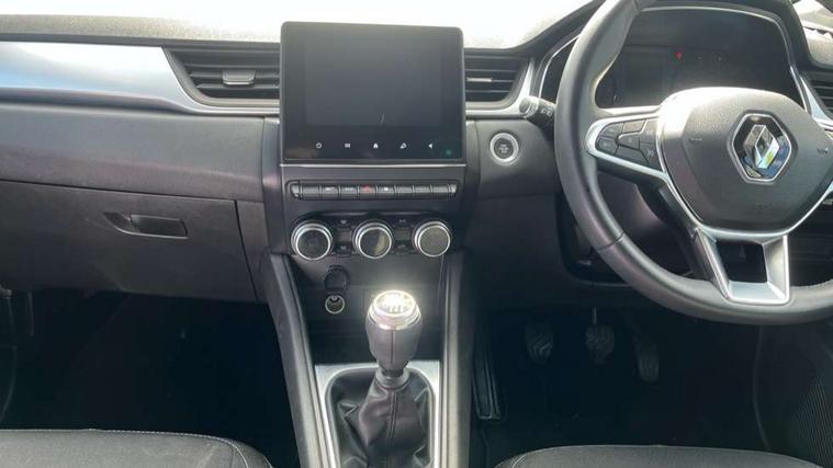 4.2" TFT Driver information display, Cruise control + speed limiter, eCall emergency call system, Eco mode, Gear change indicator, Lane departure warning system, Lane keep assist, Renault automatic emergency assist, Traffic sign recognition, Trip computer, Variable assistance power steering, EasyLink Nav 7" touchscreen, 4x20W amp, FM DAB, sound auditorium, 2xUSB, 1xJack, Bluetooth, smartphone integration plus, Apple carplay/Android auto, Automatic front wipers with rain sensors, Automatic headlights, Body colour door handles, Body coloured bumpers, Body coloured door mirrors, Electric adjustable/heated/folding door mirrors, Electric front windows + one touch + anti-pinch, Electric rear windows, Extra tinted glass in rear windows and tailgate, Full LED front and rear headlamps integrating daytime running lights at the front and rear, Gloss black side door protection with chrome effect, LED front fog lights, Rear fog lights, Rear wiper, Roof bars, Variable speed on front windscreen wipers, 12V Accessory socket, 3 rear headrests, 5.2L front glovebox, 60/40 split folding rear seat bench, Automatic climate control with one touch demist function, Centre console storage tray, Cloth upholstery, Front head restraints, Heating system with pollen filter, Height adjustable driver's seat, Height/reach adjust steering wheel, ISOFIX child seat fixing points on rear outermost seats, Middle console with armrest and storage, Rear air vents, Synthetic leather steering wheel, 3 rear seatbelts, ABS+EBA, AEBS, Distance warning alert, Driver and front passenger, side, head and curtain airbags, Driver height adjustable seat belt, Electric parking brake, Electronic stability control, Front and rear no seatbelt warning sound, Front dash warning indicator in case of heavy braking, Front driver and passenger side airbag deactivation, Hill start assist, Rear door and window child locking function for rear door, Tyre pressure warning light, Anti drill door locks and locking fuel cap, Deadlocking system, Hands free keycard with push button and start/stop function, RAID (Renault Anti-Intruder Device) automatic door locking, Remote central locking with thatcham approved immobiliser, Black soft touch dashboard with black gloss air vent surrounds,