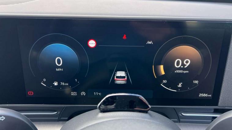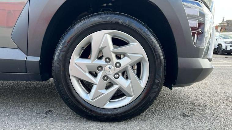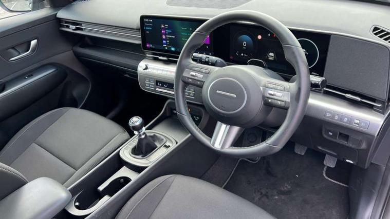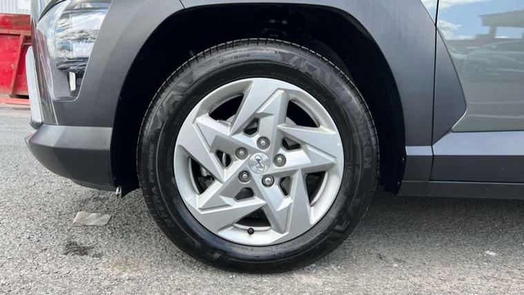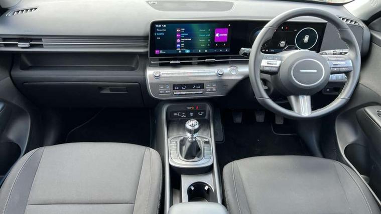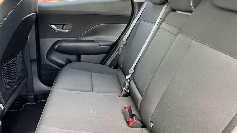 12.25" digital instrument cluster, 12.3" touchscreen centre console display satellite navigation with bluelink, live services and mapcare, Bluetooth connectivity with voice recognition, Cruise control, Driver status monitor (DSM), Driver supervision instrument cluster with 12.3" LCD display, eCall emergency call system, Feature on demand - Enabled, Forward collision avoidance assist (FCA 1.5) - Car, pededstrian, cycle and junction turning, Front parking sensor, Intelligent speed limit assist, Lane follow assist, Lane keep assist, Leading vehicle departure alert (LVDA), Parking system with rear camera and guidance system, PAS, Rear parking sensor, Rear view camera with dynamic guidelines, Roadside assistance, Wireless Smartphone Integration includes Apple CarPlay and Android auto, 2 front USB C and 2 rear USB C charging points, DAB Digital radio, Speakers - Front, rear and tweeters, Steering wheel audio, phone and cruise controls, Auto dimming rear view mirror, Automatic headlights with dusk sensor, Automatic windscreen wipers with rain sensor, Black painted wheel arch inserts, Body colour exterior door handles, Body coloured door mirrors, Door mirror LED indicator lights, Electric front windows with anti-trap mechanism and one touch control, Electric rear windows, Electrically adjustable and heated door mirrors, Full LED MFR headlights, LED daytime running lights, LED taillights, LED upper and lower rear lights, Power folding door mirrors, Rear roof spoiler with integrated LED brake light, Rear side wing doors, Rear skid plate - silver, Rear wiper, Roof rails, Tinted glass in front and rear doors, Windscreen auto defog function, 12V power outlet in front console, 2 zone climate control, 3 seat bench in 2nd row, Adjustable head restraints, Cloth upholstery, Driver and passenger front seat pockets, Driver's seat lumbar support, Driver/passenger manual seat height adjustment, Driver/passenger sunvisors and illuminated vanity mirrors, Floor mats, Height/reach adjustable steering column, Leather steering wheel, Leather wrapped steering wheel and gear knob, LED centre interior light, LED front interior light, Luggage compartment LED lighting, Luggage shelf, Metal paint effect interior door handles, Rear centre armrest with cupholders, Single front passenger seat, Vertical adjustment rear head restraints, Trailer wiring package - Kona, Airbag - front, front side, curtain and centre front airbag, Anti-lock brake system (ABS), Childproof rear door locks, Downhill brake control, Electric parking brake, Electronic stability control, Fixed 3 point for second row centre passenger seatbelt, Hill start assist control (HAC), Rear seat alert, Tyre pressure monitoring system, Alarm/immobiliser, Rear occupant alert, Remote central locking, Smart key with keyless entry and start/stop button, Five year annual vehicle health checks, 17" Alloy wheels, Temporary mobility kit (TMK),