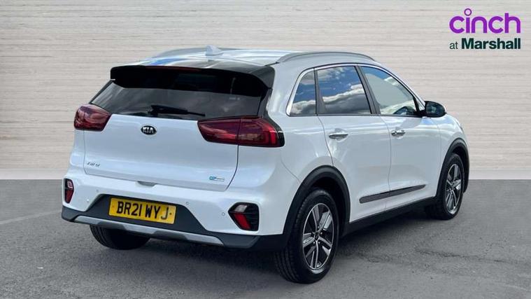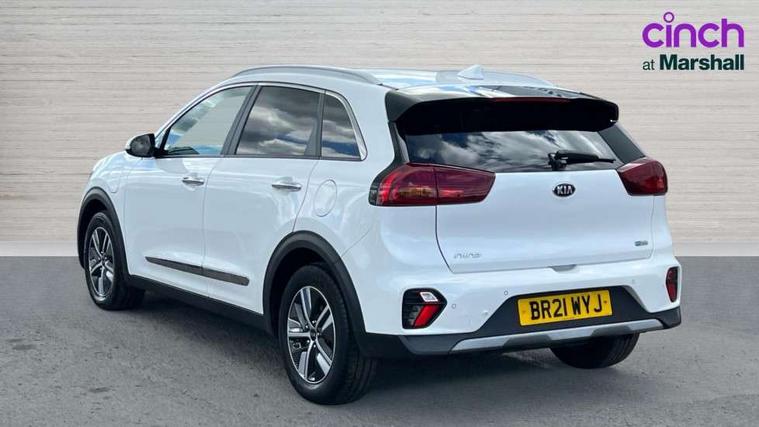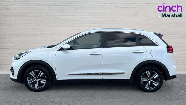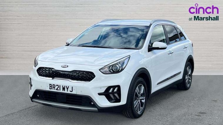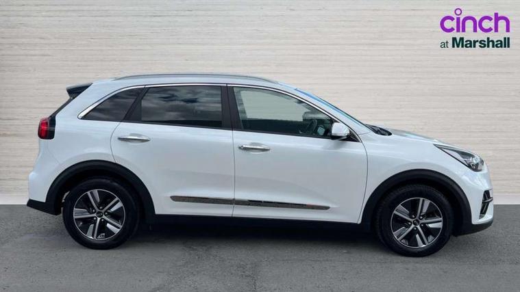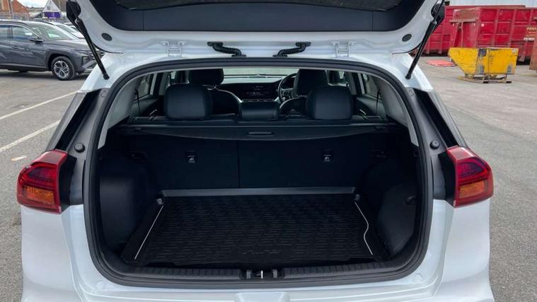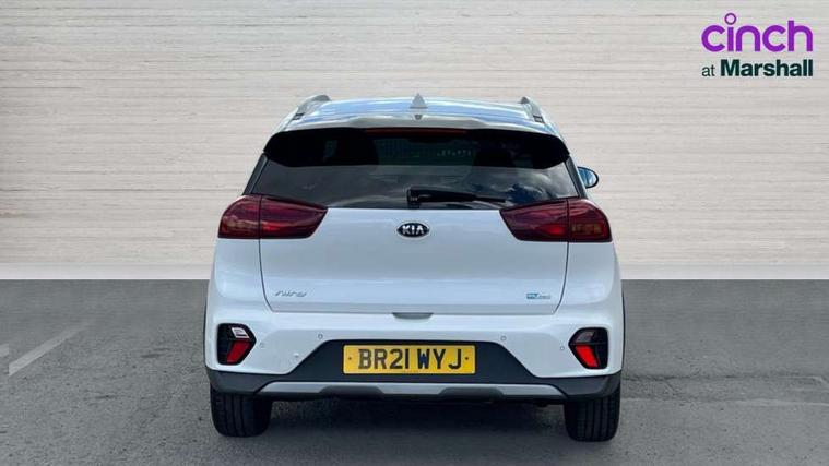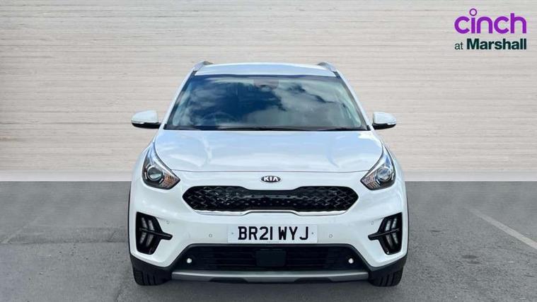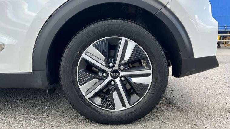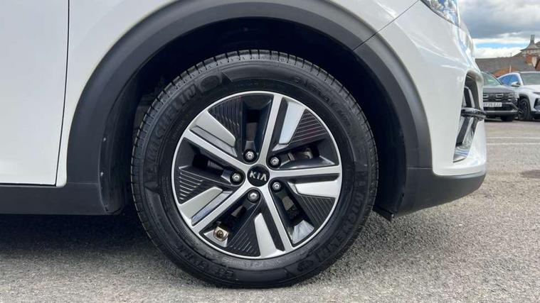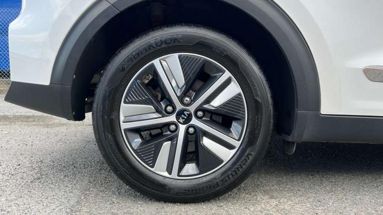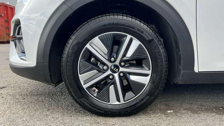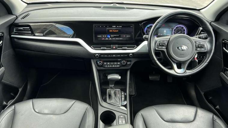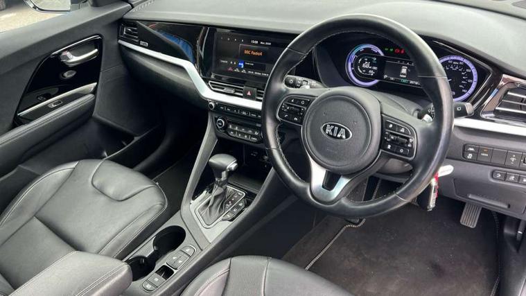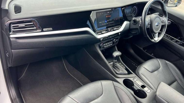 10.25" Touch screen satellite navigation with european mapping and traffic messaging channel, Adaptive smart cruise control function (SCC) with stop and go, Apple car play/Android Auto with voice control, Digital clock, Drive mode selector, Driver attention warning, Emergency stop signalling system, Forward collision avoidance assist, Front parking sensors, Kia connected services featuring TomTom live, Lane Following Assist (LFA), Lane keep assist, Motor driven power steering, Rear parking sensors, Reversing camera, Speed limiter, Telematics system with UVO connect services, Trip computer with distance/fuel consumption/average speed, Wireless Smartphone charger, 'Shark fin' mobile antenna, 4.2" supervision cluster with TFT colour display, 6 speakers, Bluetooth with music streaming, DAB Radio with MP3, Steering wheel mounted controls, USB connection located in centre console, USB port, All round electric windows with drivers and front passenger auto up/down function, Auto dimming rear view mirror, Automatic defog system, Automatic headlight control system, Black side sills, Body colour bumpers, Body coloured/high gloss door mirrors, Chrome beltline mouldings, Chrome door handles, Driver's side wide angle mirror, Electrically folding/adjustable/heated door mirrors with LED indicators, LED daytime running lights, LED fog lights, LED rear combination lights, Manual headlight levelling, Matt black radiator grille, Privacy glass - Rear windows and tailgate, Projector headlamps, Rain sensing front wipers, Rear spoiler, Rear wiper, Roof rails, Solar glass, Welcome and follow-me home light functionality, Wheel arch mouldings, 3 x passenger assist grips, 60/40 split/folding 2nd row of seats, 8 way electric adjustable drivers seat, All-round height adjustable headrests, Aluminium door scuff plates, Centre console storage box, Centre room lamp, Cupholders in rear armrest, Door armrest in leather, Driver/passenger sunvisors with illuminated vanity mirrors, Drivers seat power lumbar support, Dual zone automatic air conditioning, Front and rear door storage, Front/rear centre armrests, Headlining in Light grey, Heated front seats, Heated steering wheel, High gloss black lower console trim, High gloss black steering wheel trim, Illuminated ignition key hole, Interior door lock/unlock function, ISOFIX Child seat top tethers and anchor fixings, Leather trimmed gearshift, Leather trimmed steering wheel, Leather upholstery, Luggage area lamp, Luggage compartment cover, Luggage net with hooks, Overhead console lamp with sunglasses case, Passenger seat height adjuster, Satin finish inner door handles, Seatback pocket - driver, Seatback pocket - front passenger, Steering wheel mounted paddle shift, Tilt/telescopic adjustable steering wheel, Under floor storage box, Ventiliation ducts to rear compartment, Towing pack - Niro, 3 point seatbelts on all seats, ABS, Automatic unlocking of doors in case of impact, Drivers knee airbag, Electric parking brake with auto hold function, Electronic stability control, Front passenger airbag cut-off switch, Height adjustable front seatbelts, Hill start assist control (HAC), Traction control, Twin curtain airbags with roll over sensor, Twin front and side airbags, Tyre pressure monitoring system, Alarm system and engine immobiliser, Deadlocks, Locking wheel nuts, Remote central door locking with fold away key, Visible vehicle identification number, High gloss black centre fascia, High gloss black door inserts, 16" alloy wheels, Tyre mobility kit,