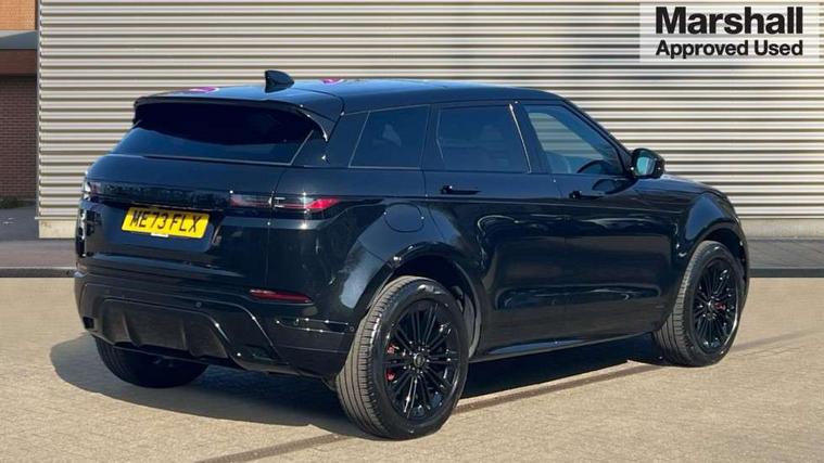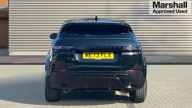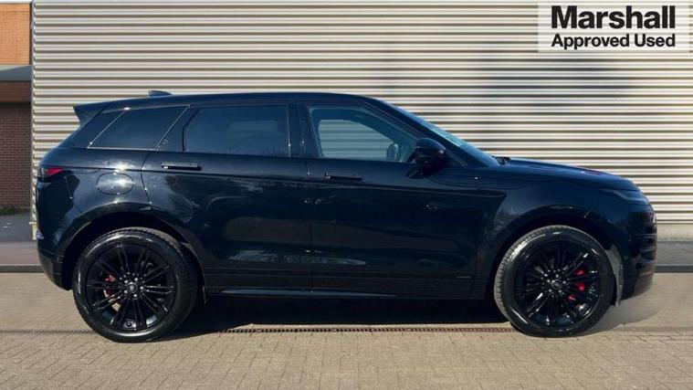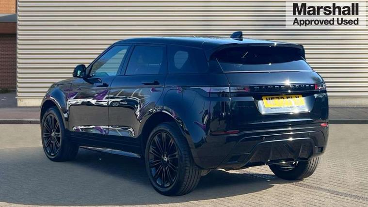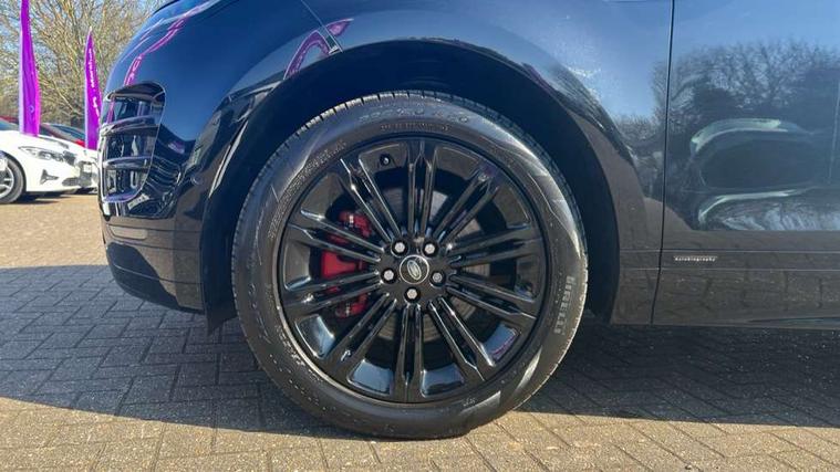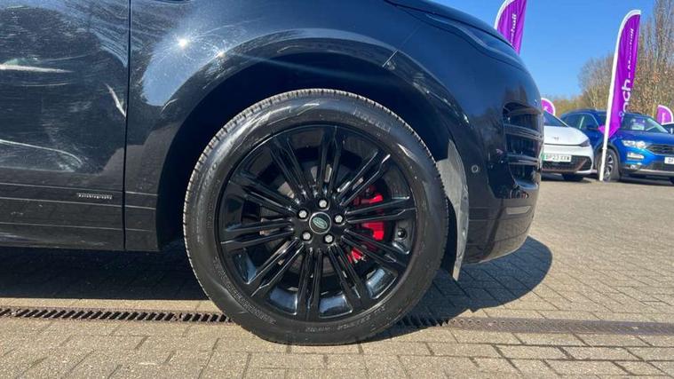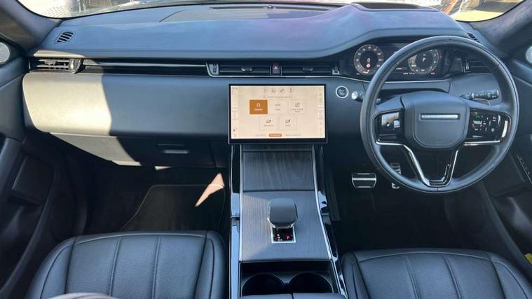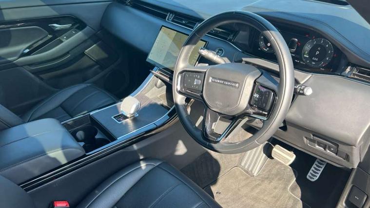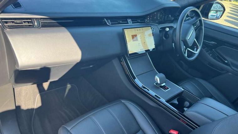 11.4" touch screen, 3D 360 degree surround camera with wade sensing, Adaptive cruise control, Android Auto, Apple car play, Blind spot assist, Bluetooth connectivity, Brake pad wear indicator warning light, Driver condition monitor, eCall emergency system, Eco mode, Electronic power assisted steering (EPAS), Front and rear parking aid, Head up Display, InControl remote, Interactive driver display, Land Rover InControl apps, Lane keep assist, Pivi pro connected includes diamond pivi variant, smart settings, connected navigation pro, nuance speech licence, Powered tailgate/boot lid, Rear collision monitor, Rear traffic monitor, Traffic sign recognition with adaptive speed limiter, Voice control system, Wireless device charging, All terrain progress control, Configurable dynamics, Electric rear axle drive, Home charging cable, Large fuel tank, Passive suspension, Public charging cable, Terrain Response 2, Digital Audio Broadcast radio-DAB, Steering wheel mounted controls, Acoustic laminated windscreen, Auto headlights, Automatic headlight levelling, ClearSight interior rear view mirror, Electric windows with one touch open/close and anti trap, Flush deployable exterior door handles, Front and rear recovery eyes, Front fog lights, Heated rear window with timer, Heated washer jets, Heated windscreen, Pixel LED headlights with signature DRL and LED tail Lights, Power fold, auto-dimming, heated door mirrors with approach lights and auto dimming driver side, Rain sensing windscreen wipers, Range rover branding illuminated metal tread plates in loadspace and row 1 with brand name script and metal in row 2, Rear animated directional indicators, Rear fog lights, Rear side wing doors, Rear wiper, Side repeater indicators in mirror, Sliding panoramic roof with powered sunblind, Tailgate spoiler, Third brake light, Winter wiper park position, 14 way driver memory electric front seats with 2 way manual headrests + 4 way lumbar support, bolsters, 40:20:40 split folding rear seats with centre headrest and armrest, Ambient interior lighting, Bright metal pedals, Cabin Air Purification plus, Configurable cabin lighting, Customer configurable single point entry, Electrically adjustable steering column with memory function and easy entry/exit, Front and rear cupholders, Heated and cooled front seats, Heated rear seats, Heated steering wheel, Isofix system on outer rear seats, Overhead lighting console, Overhead stowage for sunglasses, Passive front head restraints, Premium carpet mats, Rear air vents, Rear head restraints, Satin chrome gearshift paddles, Single passenger seat, Sunvisors with illuminated vanity mirrors, Twin sliding front centre armrest, Online pack with data plan - Evoque, Power socket pack 2 - Evoque, 3 rear 3 point seatbelts, Anti-lock braking system (ABS), Brake hold function, Customer configurable autolock, DSC - Dynamic Stability Control, Electronic brake force distribution, Electronic parking brake, Electronic traction control, Emergency braking, Front and rear seatbelt reminder, Hill descent control, Hill launch assist, Low traction launch, Occupant protection assist, Passenger seat occupant detector, Power operated child locks, Roll stability control, Six airbags - Driver and passenger airbags/driver knee airbag/front side airbag and curtain airbags, Torque vectoring brake, Tyre pressure monitoring system, Alarm, Immobiliser, Intrusion sensor, Keyless entry, Locking wheel nuts, All season tyres,