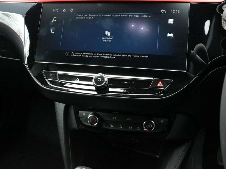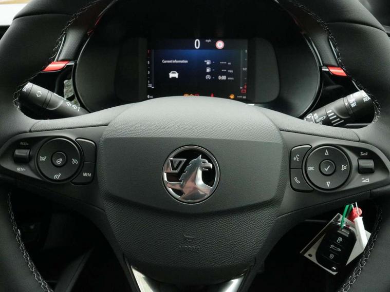 7 inch digital instrument cluster display, Breakdown call (b-call), Central facia display with digital clock, outside air temperature and audio information, Cruise control with intelligent speed limiter, Driver drowsiness alert system, E-call, Engine oil life indicator, Front camera system, Instrumentation - Speedometer, rev counter, low fuel gauge warning light + water temperature gauge warning light, Lane departure warning, Lane keep assist, Lights on audible warning, Multi function trip computer, Pre conditioning of vehicle temperature, RDS with traffic programme, Rear parking distance sensors, Remote check of battery level programming and charge management, Service indicator, Smartphone projection, Speed sensitive power steering, Speed sign recognition, Sport drive mode selector, Start/stop system, Tailgate, Vauxhall connect box, Vehicle status and information, Wireless Apple CarPlay/Android Auto, Electronic returnless fuel system, Petrol Particulate Filter, Under body shield for aero, AM/FM stereo radio, Bluetooth connectivity with A2DP audio streaming function (Advanced audio distribuition profile), DAB Digital radio, Multimedia with 10-inch touchscreen, Six speakers, Steering wheel audio, phone and cruise controls, USB type C port, Automatic headlight control system, Black door mirror housings, Black lower side window mouldings, Black rear griffin badge and model lettering, Body colour door handles, Body colour rear bumper, Bonnet/headlight/wiper structure, Corsa lettering in tailgate, Dark tinted rear side windows + tailgate window, Electrically adjustable and heated door mirrors, Electrically operated front and rear windows with safety auto reverse and one touch up/down facility, Electrochromic automatic anti-dazzle rear view mirror, Flexible roof mounted aerial, Glazed tailgate and heated rear window with wash/wipe facility, Halogen tail lamps, Hazard warning lights, Headlamps for left side traffic, High beam assist, High gloss black finish B pillar, Intelli-LED headlights, LED 3rd brake light, LED daytime running lights, Rain sensitive windscreen wipers, Rear fog lamp, Rear reversing lights, Rear side wing doors, Rear wiper, Solar heat absorbing windscreen and windows, Sports front and rear body styling for upper and lower bumper design, Two speed windscreen wipers with variable intermittent wipe, Windscreen and side window demist vents, 12V power sockets, 3 bench rear seats in 2nd row, 4 speed fan with illuminated controls, 6 way manual adjustable co-driver seat height up/down, reach fore/aft, backrest upright/recline, 6 way manual adjustable driver seat height up/down, reach fore/aft, backrest upright/recline, 60/40 split folding rear seat, Air conditioning with air recirculation facility, Banda cloth upholstery, Black headliner, Cabin particulate filter - removes dust, airborne particles and pollen, Comfort front seats, Driver/passenger sunvisors with vanity mirrors + covers, Four adjustable facia vents, Front cupholder, Front headrests, Height adjustable head restraints, Illuminated glovebox with lid, Interior courtesy light, Internal chrome door handles, LED boot light, Polyurethane gear knob/lever, Reach and rake adjustable steering column, Rear cupholder, Rear headrests, Right hand drive (RHD), Single dome lamp with dual front reading lamps, Single front passenger seat, Standard floor mats, Two litre open door pockets, Vegan leather steering wheel, YES interior badging, Winter pack - Corsa, 3 rear 3 point seatbelts, Anti-lock braking system (ABS), Automatic emergency braking with pedestrian detection, Cornering brake control, Deactivation switch for front passenger's airbag, Drag torque control, Driver and front passenger airbags, front seat side impact airbags, full size curtain airbags, EBD - Electronic brakeforce distribution, Electrical child lock system in rear door latch, Electronic Stability Programme (ESP), Emergency brake assist, Forward collision alert, Front seatbelt unfastened audible warning and warning light, Front ventilated disc brakes - 282mm, Hill hold and start system, ISOFIX child seat mountings incorporating top tether anchor points located on second row rear seats, Manual handbrake, Rear drum brakes - 203mm, Seatbelt pretensioners, Single tone horn, Straight line stability control, Traction control, Tyre deflation detection system, 2 keys one folding with integral remote, Electronically protected audio equipment, Engine deadlock and immobiliser, Freewheeling door locks, Locking wheel nuts, Remote control central locking, Remote locking fuel filler flap, Steering column lock, Visible vehicle identification number, 16" Diamond-cut hi-gloss black alloy wheels - Yes Petrol,