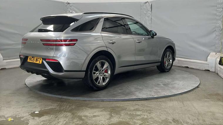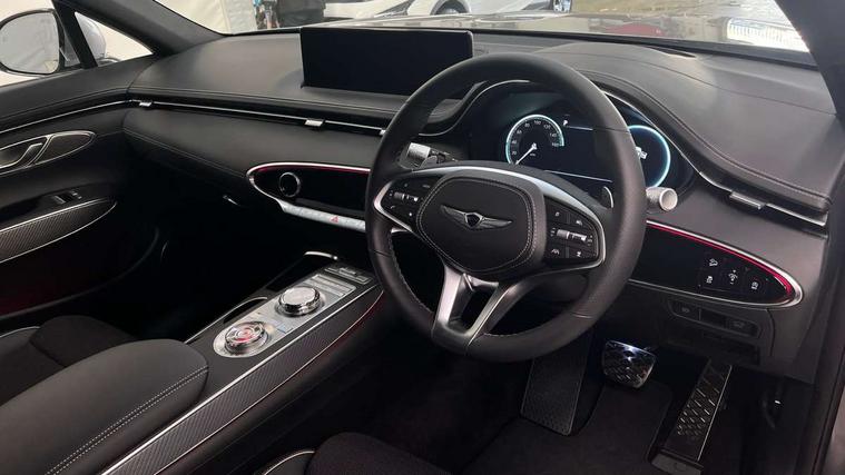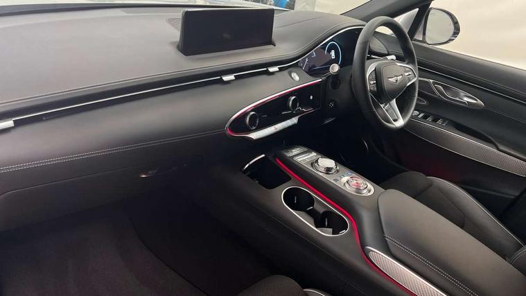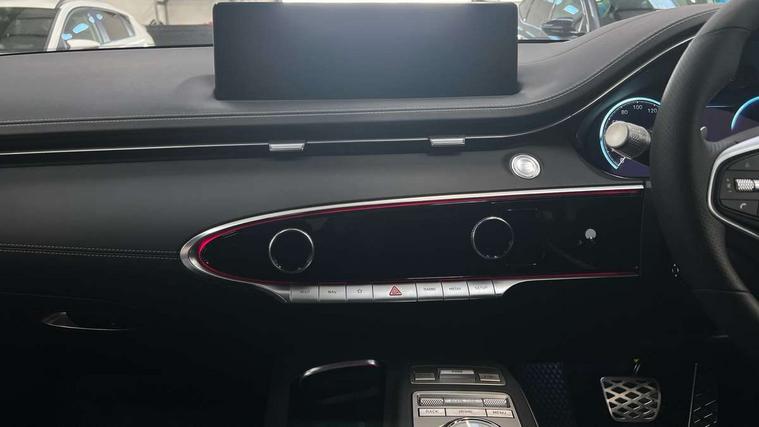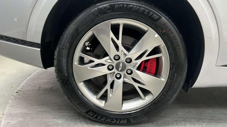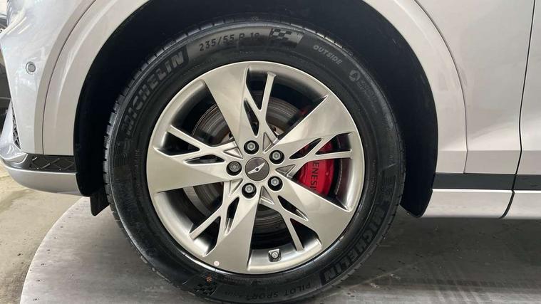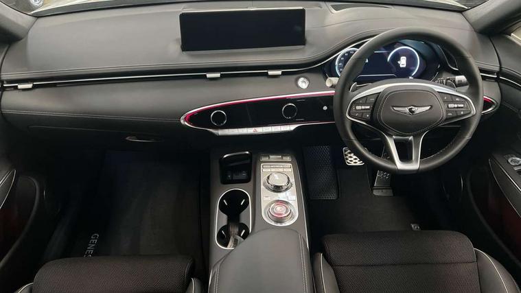 8" Dashboard cluster TFT display, Blind spot collision avoidance assist rear (BCA-R), Bluetooth connection with voice recognition, Drive mode select, E-call, Electric rear tailgate opening and height adjustable, Intelligent speed limit assist (ISLA), Lane Following Assist (LFA), Lane keeping assist (LKA), Lighting backup guidelines, Manual speed limit assist (MSLA), PAS, Rear parking sensors with button, Rear view camera with dynamic guidelines on screen, SCC smart cruise control with stop and start, Preview electronically controlled suspension, 14.5" Navi screen + DAB radio + Phone mirroring + Genesis connected, 2 port USB front charger console, 2 USB rear, Steering wheel audio remote control, Acoustic windshield film, Automatic headlights with dusk sensor, Automatic window defogger, Dual front LED low and high projection headlamps with high beam, Electrochromic inside rear view mirror, Electrochromic outside rear view mirrors, Laminated front side glass, LED daytime running lights, LED rear combination lamps, LED rear fog lamps, LED rear stop lamp, Outside door handles chrome coating, Outside electrical adjustment and heated rear mirror, Outside electrical folding rear mirror, Puddle lamps with logo, Rain sensor, Rear side and backlite privacy glass, Rear side wing doors, Rear wash/wipe, 2 way electric height adjust driver's seat, 2 way electric height adjust front passenger seat, 2nd row heating floor output, 3 seat bench in 2nd row, 3 zone auto air conditioning and temperature control in rear, 4 way electric driver lumbar support, 4 way electrically adjustable driver and passenger seat with walk-in device, 4 way manual headrest adjust for front seats, 60:40 split back folding rear seats, Aluminium interior garnish, Ambient lighting, Console storage box, Console ventilation duct, Cup holder at centre armrest, Finger print reader authentication, Front air condition with dual zone adjustment, Heated steering wheel, Leather steering wheel, Leatherette console box, Lever type paddle shifter, Memory function for driver seat, Power outlet for rear (lower centre console), Power outlet for trunk, Power tilt telescopic steering wheel with memory seat, Premium air filter, Rear headrests, Rear luggage cover, Single front passenger seat, Sport appearance pack - GV70, Trailer pack - GV70, 3x3 point rear seat belts, ABS + ESC + DBC + HAC + TSA (Trailer Stability Assist) + MCB (Multi Collision Brake), Driver and passenger airbag, Driver knee airbag, Electronic parking brake with auto hold, FCA - J Forward collision avoidance system with junction and crossing, Forward collision avoidance system (car/pedestrian/bicycle), Front brake ventilated disc 360mm, Front center side airbags, Front thorax and pelvis + curtain airbags, ISOFIX rear child anchor with upper and lower, Rear brake ventilated disc 345mm, Rear seat alert without sensors, Tyre pressure monitoring system, Central door lock driver's and passenger's control, Immobiliser, Manual child lock + Deadlock + Cat 1 alarm, Smart key/button start, Leatherette dashboard, Michelin tyres, Summer tyres pilot sport 4, Temporary mobility kit (TMK),