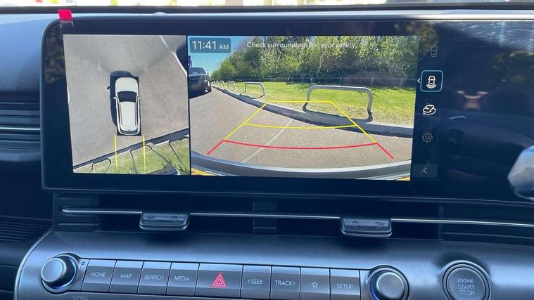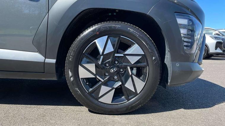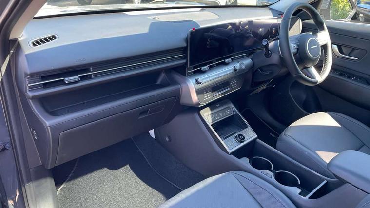 12.25" digital instrument cluster, 12.3" touchscreen centre console display satellite navigation with bluelink, live services and mapcare, Blind spot collision avoidance assist, Blind spot view monitor, Bluetooth connectivity with voice recognition, Driver status monitor (DSM), Driver supervision instrument cluster with 12.3" LCD display, eCall emergency call system, Feature on demand - Enabled, Forward collision avoidance assist (FCA 1.5) - Car, pededstrian, cycle and junction turning, Front parking sensor, HDA - Highway Drive Assist Level 1.5, Height adjustable power tailgate, Intelligent speed limit assist, Lane follow assist, Lane keep assist, Leading vehicle departure alert (LVDA), Parking Collision Avoidance Assist-Reverse (PCA-R), Parking distance warning - side, Parking system with rear camera and guidance system, PAS, Rear cross traffic collision avoidance (RCCA), Rear parking sensor, Rear view camera with dynamic guidelines, Roadside assistance, Safe exit warning (SEW), Smart cruise control with stop and go functionality, Surround view monitor, Wireless phone charging pad, Wireless Smartphone Integration includes Apple CarPlay and Android auto, 2 front USB C and 2 rear USB C charging points, Bose Premium Audio system with 7 premium speakers + subwoofer, DAB Digital radio, Steering wheel audio, phone and cruise controls, Auto dimming rear view mirror, Automatic headlights with dusk sensor, Automatic windscreen wipers with rain sensor, Black painted wheel arch inserts, Body colour exterior door handles, Body coloured door mirrors, Door mirror LED indicator lights, Electric front windows with anti-trap mechanism and one touch control, Electric rear windows, Electric sunroof, Electrically adjustable and heated door mirrors, Horizon centre LED DRL, LED projector headlights, LED taillights, LED upper and lower rear lights, Power folding door mirrors, Privacy glass - Rear windows and tailgate, Rain sensor, Rear roof spoiler with integrated LED brake light, Rear side wing doors, Rear skid plate - silver, Rear wiper, Roof rails, Solar glass with front door glass and windscreen, Tinted glass in front and rear doors, Windscreen auto defog function, 12V power outlet in front console, 2 zone climate control, 3 seat bench in 2nd row, 40/20/40 split folding rear seat, Adjustable head restraints, Ambient lighting, Driver and passenger front seat pockets, Driver's seat electric adjustments, Driver's seat lumbar support, Driver/passenger sunvisors and illuminated vanity mirrors, Floor mats, Front passenger's seat electric adjustments, Heated front seats, Heated rear seats, Heated steering wheel, Height/reach adjustable steering column, Leather steering wheel, Leather upholstery, LED centre interior light, LED front interior light, Luggage compartment LED lighting, Luggage net, Luggage shelf, Metal paint effect interior door handles, Rear centre armrest with cupholders, Shift by wire SBW, Single front passenger seat, Ventilated front seats, Vertical adjustment rear head restraints, Trailer wiring package - Kona, Airbag - front, front side, curtain and centre front airbag, Anti-lock brake system (ABS), Childproof rear door locks, Downhill brake control, Electric parking brake, Electronic stability control, Fixed 3 point for second row centre passenger seatbelt, Hill start assist control (HAC), Rear seat alert, Tyre pressure monitoring system, Alarm/immobiliser, Rear occupant alert, Remote central locking, Smart key with keyless entry and start/stop button, Five year annual vehicle health checks, 18" Alloy wheels, Temporary mobility kit (TMK),