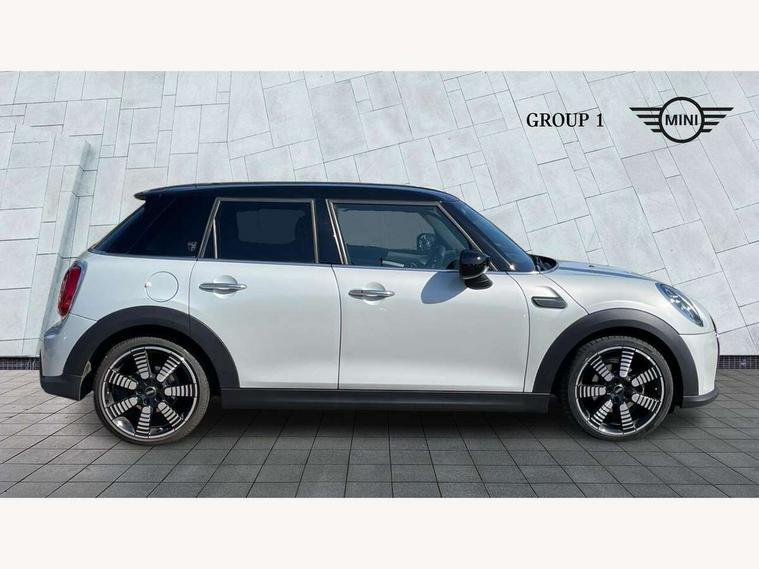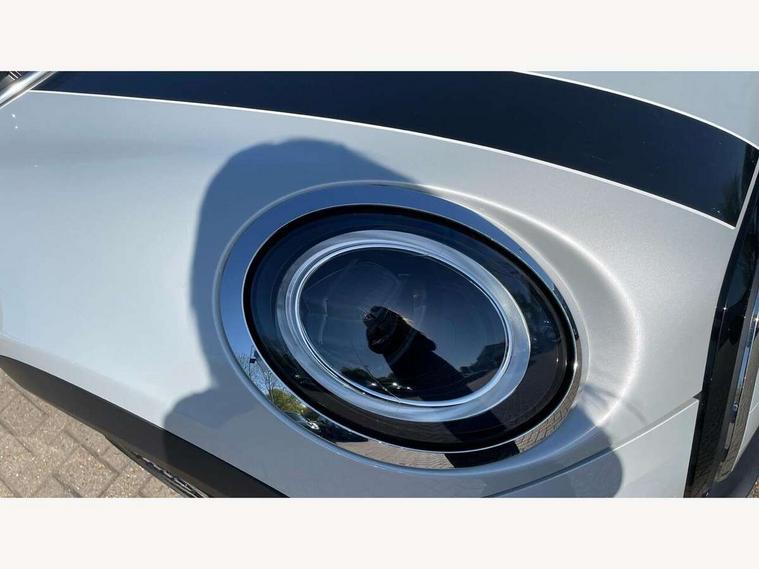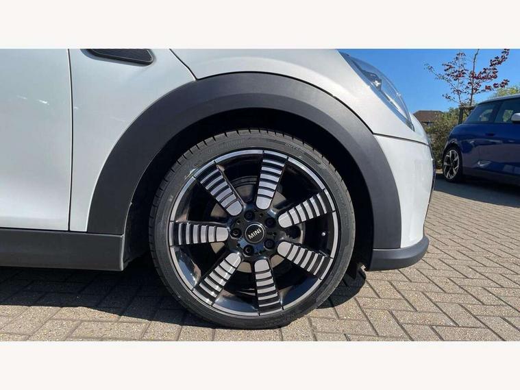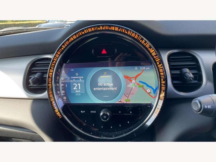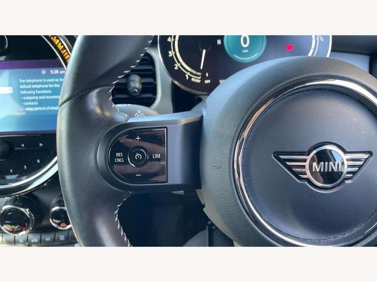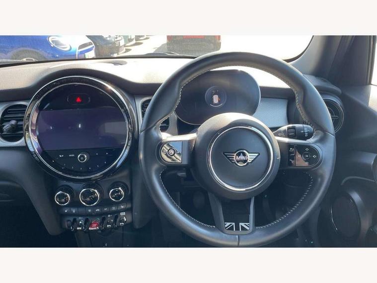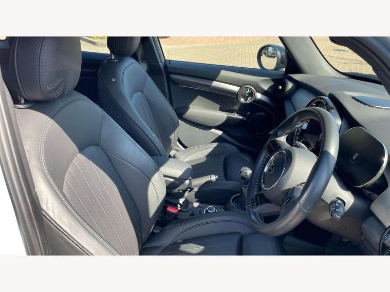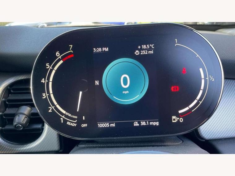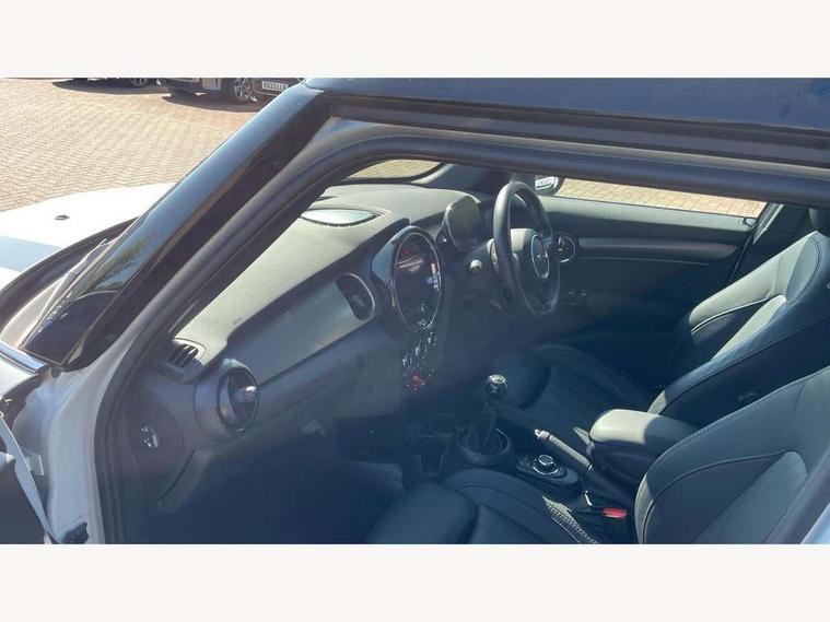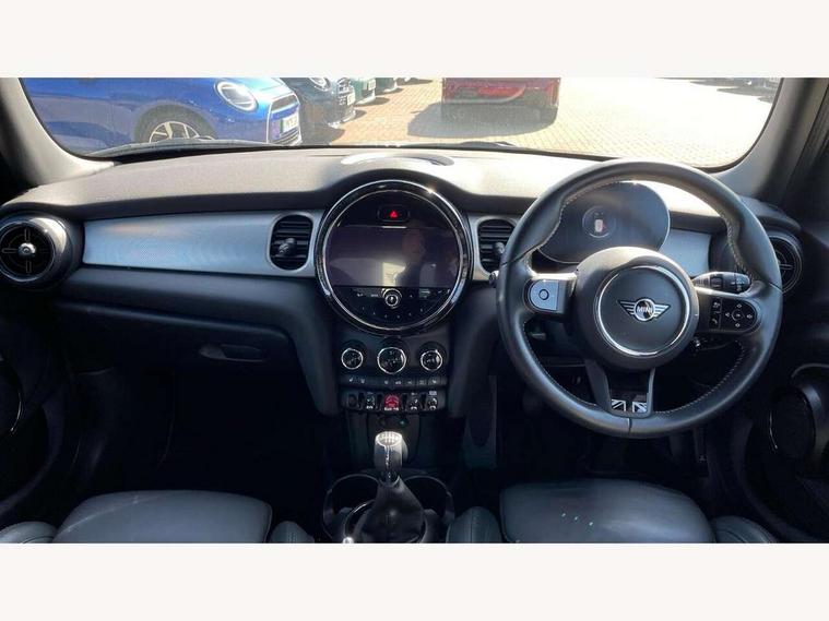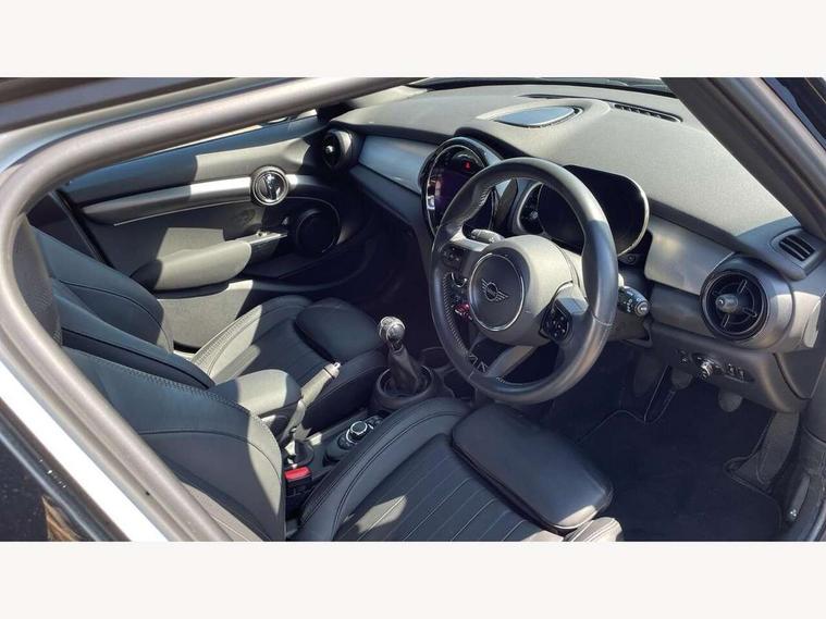 Automatic start/stop function with brake energy recuperation, Compatible mobile phone bluetooth with audio streaming, Cruise control with brake assist, Electro-mechanical speed dependant steering assistance, Flexible car sharing preparation, Instrument cluster, MINI Driving Modes - centre toggle switch to control driving setting (sport, mid and green), Mini E-call, MINI TeleServices, On board computer, Rear park distance control, Service interval indicator, 6 Speed manual transmission including gear change indicator display, Double Vanos system, Fully variable valve control, High precision injection, Performance Control, 6 speakers in front door trims and underneath front seats, 8.8" touchscreen with LED ring, FM tuner and DAB digital radio, Automatic headlight activation switch, Body colour fuel filler cap, Chrome line exterior - radiator grille bars, tailgate handle, lower front grille grating and rear central fog-light, Dynamic brake lights, Electric front+rear windows, Heated rear window, Heated windscreen washer jets, LED headlight with closed ring and daytime driving lights, Metal door sill strips with MINI imprint, Model logo Cooper on right of tailgate, Rain sensor window wipers, Rear fog lights, Rear LED lights with union jack design, Rear window wiper, Side scuttle panel with integrated indicator, Sun/heat protection glass, White indicator lenses, 12V Accessory socket in centre console, 4 lashing eyes in luggage compartment, 60/40 split folding rear seat, Anthracite headliner including grab handles and clothes hooks, Carbon black colour line - Knee roll and door armrest, Chrome interior highlights, Chrome line interior - air vents, gear lever base, door handles and speakers in doors, Cupholders, Front and rear head restraints, Front and rear isofix with front passenger airbag deactivation, Glove compartment, Height and length steering column adjustment, Interior lighting with 12 different colours across the dashboard, underneath door bezel with illuminated laser-engraved design on central display, Leatherette gearshift lever and handbrake gaiters, LED reading lights, vanity mirror lights, front foot well light and spotlight on front seats, Manual air conditioning, Mechanical seat adjustment - forward/back & backrest for front seats and driver seat height adjust, MINI yours badge on exterior pillar, Multifunction steering wheel, Storage compartments in doors, Sunvisors with vanity mirrors, Velour floor mats, Walknappa leather steering wheel with grey seam and MINI Yours badge on Piano Black lower steering wheel spoke, 3 point seatbelts on all five seats, 6 Airbags - front, side, head and seat belt tensioners, Anti-lock braking system (ABS), DSC - Dynamic Stability Control, Front and rear disc brakes, Hill start assist, Single tone fanfare horn, Tyre pressure monitoring system, Alarm system with tilt sensor, monitoring doors, bonnet interior and tailgate, Electronic vehicle immobiliser, Start/stop toggle with keyless go, Tool kit,