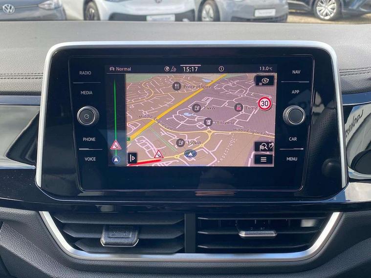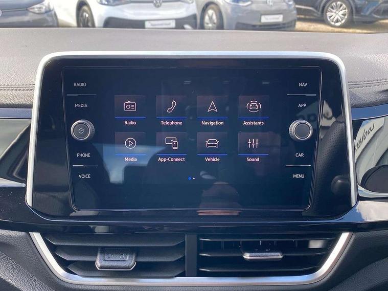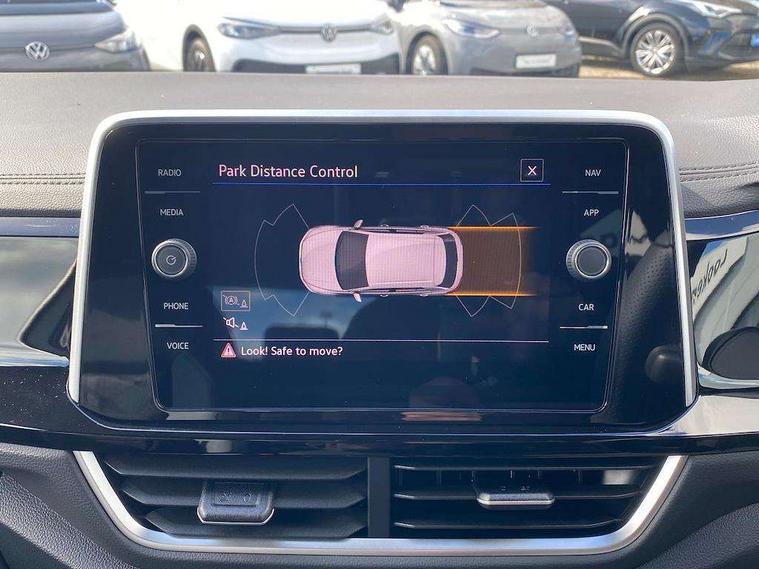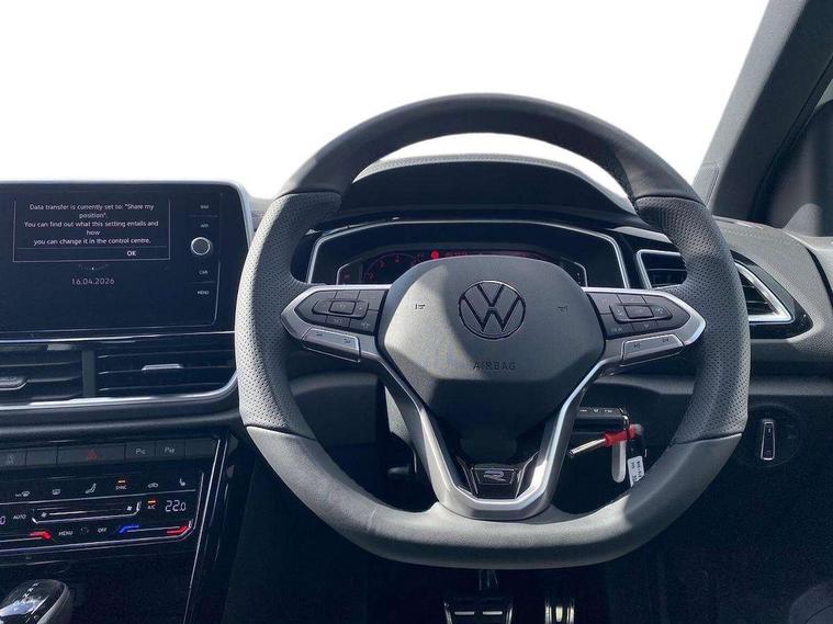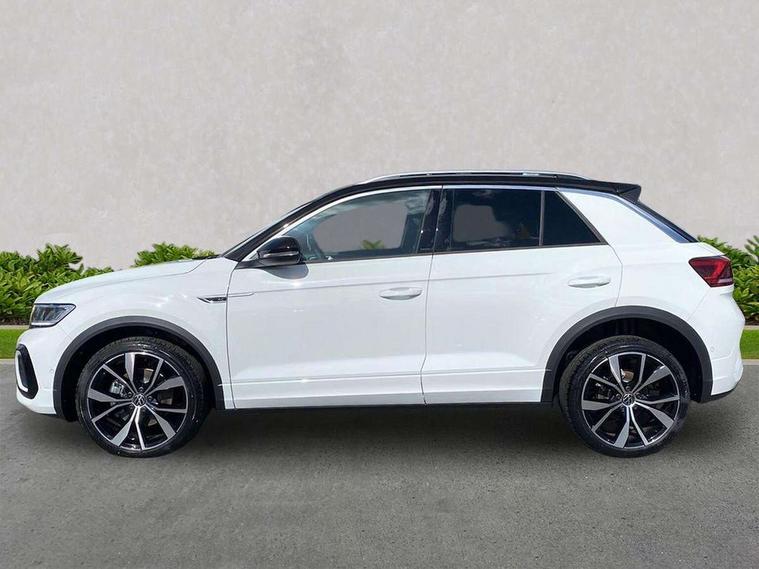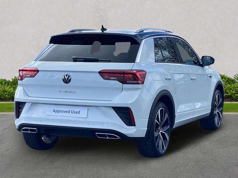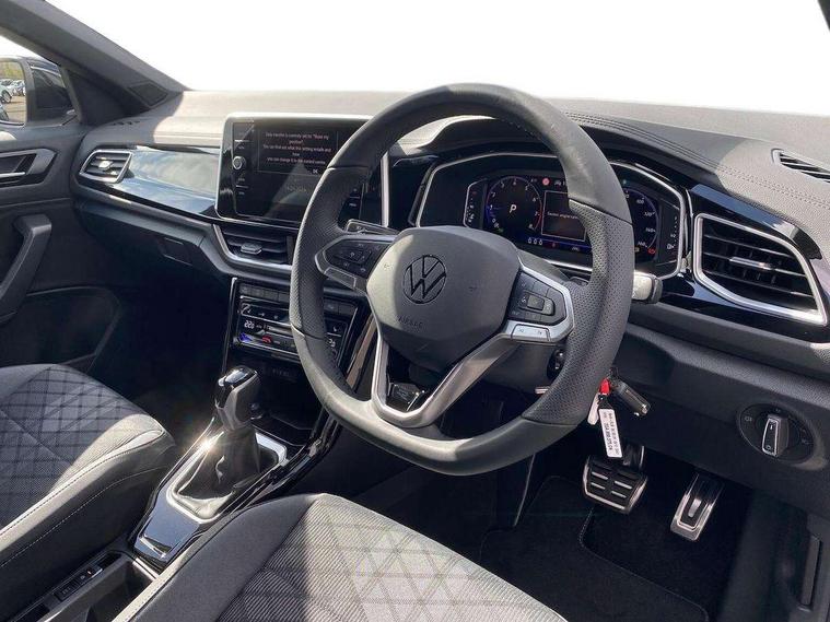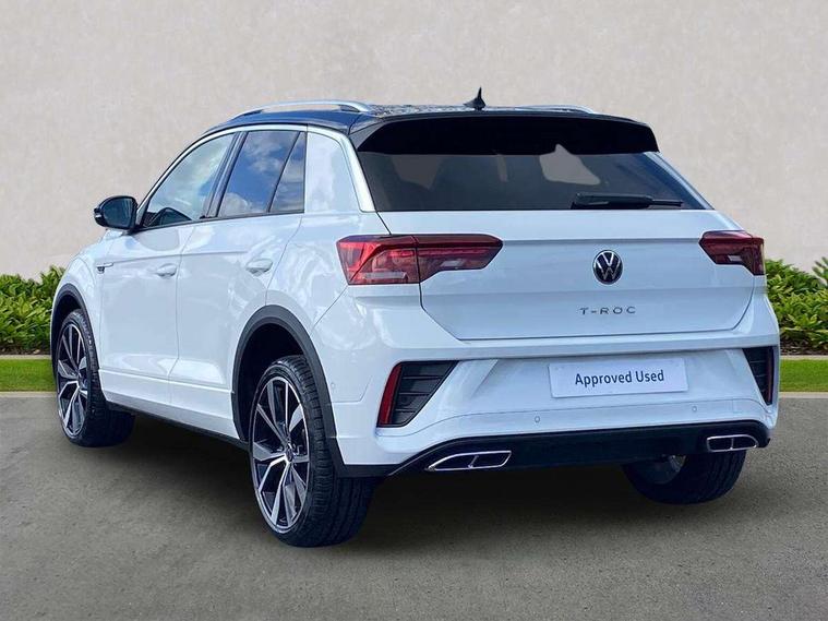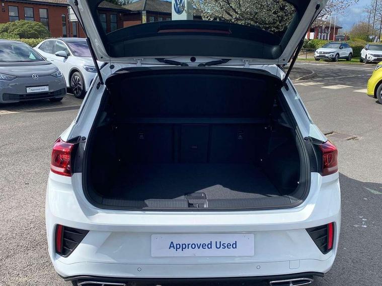 10.25" Digital cockpit pro, Advanced driver attention and drowsiness monitor, Emergency call service, Lane keeping system Lane Assist, Mobile phone interface, Modified key software - reduce switch off time for key status change to Long no motion, Online services, Park assist including front and rear parking sensors, Service interval indicator, Tailgate/trunk lid release from outside, Think blue trainer driver tips and journey analysis, Warning sound and light for front seatbelts unfastened, Wireless app connect, Battery regeneration during braking, Start/stop function with battery regeneration, DAB Digital radio, Diversity antenna for FM reception, Front and rear 6 speakers, Music playback - MP3, WMA and AAC files, Premium USB cable in choice of either Apple or Android smartphone compatibility, SD card slot, Simultaneous pairing of 2 compatible mobile devices, Title and cover art display, We Connect and We Connect Plus functionality, Auto dimming interior rear view mirror, Automatic hazard lights activation under emergency braking, Automatic headlight control with LED separate daytime running lights with coming/leaving home function, Body coloured exterior mirror housings and door handles, Electrically adjustable and heated door mirrors, Extended roof spoiler, Exterior mirrors aspherical on driver side, convex on front passenger side, External USB type C socket and charging sockets, Front windscreen wiper with intermittent wipe and 4 position delay, Heated rear window, LED 3rd brake light, LED rear combination lamps, LED rear number plate lights, Power windows with comfort operation and circuit breaker, Privacy glass for rear side windows and rear window, R-Line design body coloured bumpers, Rain sensor, Rear exhaust tailpipe, Rear fog light on one side and reversing lights on both sides, Rear side wing doors, Rear wash/wipe with intermittent wipe setting, Remote electrically foldable door mirrors, puddle lights and reverse activated passenger's door mirror, 12V power socket in centre console, 3 rear head restraints, 3 seat bench in 2nd row, 4 load lashing points in luggage compartment, Air care climatronic air conditoning system with active combination filter and 2-zone temperature control, Black roof lining, Chrome plated decorative trims, Chrome plated radiator grille inserts, air vent surrounds and light switch surrounds, Door and side trim panel with leatherette insert, Front + rear carpet mats, Front centre armrest, Front cupholders x 2, Front footwell illumination, Front reading light, Front scuff plates with R Line logo, Front seat back storage pockets, Glove compartment door with light, Instrument lighting, white adjustable panel illumination, Interior ambient lighting and surround lighting, Interior light delay, Isofix child seat preparation, Leather gearshift handle, Load-through provision with cup holder when folded down ('Unsplit rear seat bench, split folding backrest, with centre armrest), Luggage compartment lighting, Single front passenger seat, Stainless steel pedals, Storage compartment in left and right luggage area, Storage compartment in rear doors, Storage compartments in driver and front passenger doors, Sunvisors with illuminated vanity mirrors, Variable boot floor, height adjustable and removable, Driver assistance pack without proactive passenger protection - T-Roc, 3 point height adj front seatbelts + pretensioners, 3 point seatbelts in outer rear with ECE label, ABS, Child locks on rear doors, City emergency braking and pedestrian monitoring, Driver and front passenger airbag with front passenger airbag deactivation, Driver and front passenger safety-optimised head restraints, Drivers seatbelt reminder, Electronic parking brake, Electronic Stability Control (ESC) inc EDL (Electronic Differential Lock) and ASR (Traction Control), Front and rear passengers curtain airbag system including front side airbags, Hill start assist, Predictive pedestrian protection, Rear disc brakes, Two tone horn, Tyre pressure loss indicator, Volkswagen roadside assistance, Piano black decorative inserts in dashboard and front door trim panels, Trims for alloy wheels,