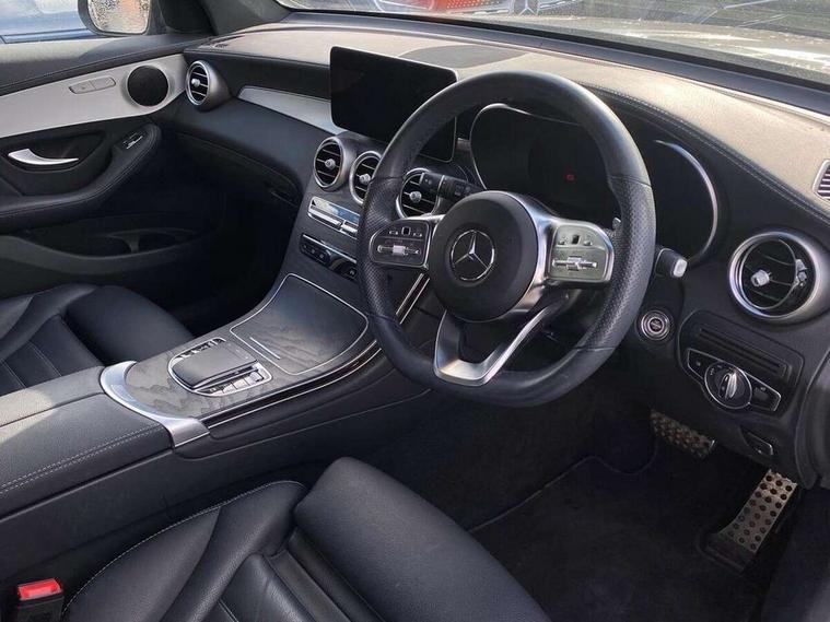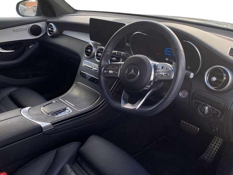 Active parking assist with parktronic system, Attention assist, Bluetooth interface for hands free telephone, Collision prevention assist plus, Cruise control with speedtronic variable speed limiter, Direct steer speed sensitive steering, DYNAMIC SELECT with a choice of driving modes (ECO, Comfort, Sport, Sport+ and Individual), Easy pack automatic powered tailgate, eCall emergency call system, ECO start/stop function, Hard disk navigation, Hey Mercedes Voice activation, Instrument cluster with12.3-inch digital instrument cluster display. High resolution instrument cluster screen with choice of three display styles, MBUX Interior assistant, Mercedes connect me with remote online services, Multi function trip computer, Outside temperature display, rear seatbelt status indicator, Remote and charging services plus, Remote boot release, Reversing camera, Service indicator (ASSYST), Smartphone integration with Apple CarPlay and Android auto, Traffic sign assist, 1 x 3 pin domestic 8m straight charging cable, 1 x type 2 and 3 phase 4m straight wallbox cable, 4MATIC permanent four wheel drive, 50 litre fuel tank, 9G TRONIC plus automatic transmission with steering column gear selector, DIRECT SELECT steering wheel gearshift paddles, Diesel particulate filter, Sports suspension tuned for improved handling and driving dynamics, 5 speakers, Frontbass loudspeakers, MBUX multimedia system with DAB digital radio and touchpad, Media display 10.25-inch touchscreen display, Pre installation for Mercedes Benz Link, USB ports x 2 in centre console, Adaptive brake lights, Aluminium roof rails, AMG bodystyling - AMG front apron with sporty air intakes and chrome trim element, AMG diffuser-look rear apron with insert in black, Body colour door mirrors, Body coloured bumpers, Electric windows one touch open/close, Electrically adjustable and heated door mirrors, Front, side and rear exterior chrome trim, Headlamp assist automatic headlamp activation, High level LED brake light, LED high performance headlamps with integrated LED daytime running lights, LED tail lamp, Motor way mode function and locator lighting, Privacy glass with dark glass from B pillar backwards, Radiator diamond grille, Rain sensor windscreen wipers, Range adjustable headlights, Rear side wing doors, Rear wiper, Roof spoiler, Running boards, Tinted glass all round with single layer safety glass, Tinted rear windows, Two chrome plated tailpipe trim elements, Variable front intermittent wipers, 2 way rear head restraints, 3-spoke multifunction sport AMG steering wheel in black nappa leather with flattened bottom section, chrome insert and perforated leather in grip area, 40:20:40 split folding rear seats, Ambient lighting, AMG floor mats with edging and embroidered AMG lettering, AMG sports seats, Artico man-made leather upper dashboard with contrast topstitching, Automatic child seat recognition sensor, Black roof lining, Dividing net - rear, Double cup holder in centre console, Easy-pack removable load compartment cover, Front armrest with storage box, Front door sills with Mercedes Benz lettering, Front head restraints, Front passenger seat, Front seats with electric adjust (backrest, height and seat cushion inclination) with 4 way electric lumbar support and manual cushion depth adjust, Heated front seats, Height/reach adjustable steering column, Illuminated and lockable glove compartment, Leather upholstery, Pre-entry climate control, Rear top tether child seat ISOFIX attachment, Sports pedals with stainless steel surfaces and rubber studs, Steering wheel with touch control buttons, THERMOTRONIC 3 zone automatic climate control, Interior lighting pack - GLC, Mirror pack - GLC, Storage pack - GLC, 3 rear 3 point seatbelts, Active bonnet, Adaptive brake system with HOLD function and brake drying in the wet, ASR, Black seat belts, Brake calipers with Mercedes-Benz lettering + perforated brake discs, Child proof door locks, Dual-stage airbags - driver and front passenger, driver knee bag and window bags for driver, front passenger and rear passengers, Electronic parking brake, Electronic stability programme (ESP) with curve dynamic assist and cross wind assist, Front and rear seatbelt reminder, Front passenger seat occupancy sensor, Hill hold function, Radar-based recuperation, Tyre pressure monitoring system, Warning triangle and first aid kit, Alarm system/interior protection/immobiliser, Automatic door locking, KEYLESS-GO starting function, Remote central locking, Open pore black ash wood trim, 20" AMG multi spoke design alloy wheels painted in titanium grey with high sheen finish, Run flat tyres, Summer tyres,