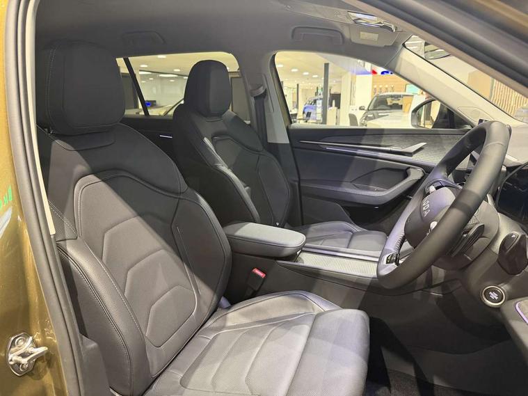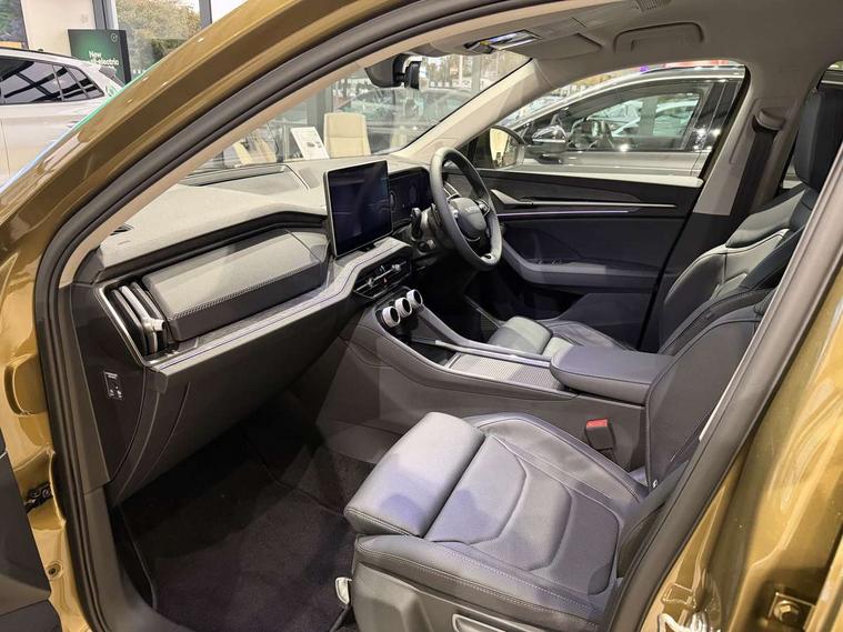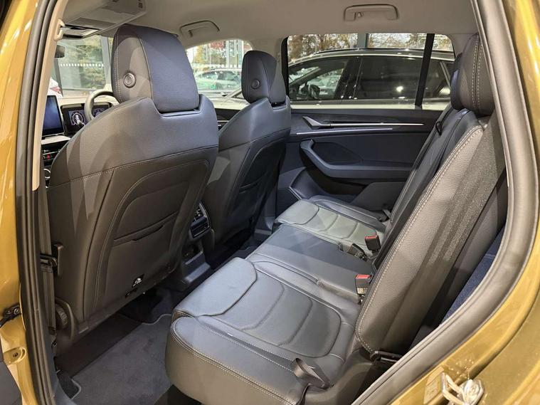 13" satellite navigation touchscreen display, Blind spot detection with door exit warning, Bluetooth system, ChatGPT functionality, Driver alert - Fatigue and drowsiness monitor, Dry display cleaner, Emergency call, Front and rear parking sensors, Front cross traffic assist, Lane assist, PAS, Rear traffic assist, Tailgate unlocking from outside, Traffic sign recognition, USB C Port x 2 in front centre console, Virtual Cockpit - 10.25" digital display, Voice control system, Wireless charging for two smartphones (15W) with cooling function, Wireless SmartLink for Apple CarPlay and Android Auto, Stop/start function, 2x USB-C in the rear, DAB Digital radio, Aero front windscreen wipers with intermittent function, Auto dimming rear view mirror, AWL (all weather lighting) and all weather light with cornering function, Black wheel arch surrounds, Body colour bumpers, Body colour door mirrors and handles, Cornering light and poor weather light, Electric folding /adjustable/separted heated/folding door mirrors, auto dimming with boarding sports and memory function, Electric front and rear windows, Exterior black decorative trims, Front grille with horizontal light strip, Heat insulating glass in windshield, Heated rear window, Ice scraper in fuel tank cap, Invisible tailpipe, LED daytime running lights, LED matrix headlights with AFS and LED fog lights, LED rear light with welcome effect and dynamic turn signals, LED third brake light in rear spoiler, Light assistant with automatic headlight control and coming home feature, Logo projection in door mirrors, Multiple matrix beam, Privacy glass, Rear roof spoiler, Rear side wing doors, Rear window wiper, Red decorative strip between rear LED lights, Safety reflectors on front and rear doors, Unique dark chrome design logo on alloy wheels, Window control switches with black trim, Windscreen wipers with rain sensor, Without engine designation, 1.5l bottle holder points in all door, 1x centre rear reading light, 2 seat bench in 3rd row, 2 spoke multi-function leather heated steering wheel with paddle shift, 3 configurable smart dials with 32mm coloured display, 3 seat bench in 2nd row, 4 foldable roof handles with rear coat hooks, Ambient interior lighting - Dashboard, front-door stowage compartments, front and rear door panels and footwell lighting, Automatic gear selector on steering column, Chrome interior door handles, Driver/front passenger reading lights, Fabric headlining, Fixed bench 40:60:40 split folding backrests, Front and rear floor mats, Front centre armrest with jumbo box storage compartment, cup holder and 12V socket, Height adjustable front headrests, Isofix child seat fittings in outer middle row rear seats and front passenger with top tether, Manually adjustable steering column, Pollen filter, Rear centre armrest with cupholders, Rear seat boot backrest release, Single front passenger seat, Skoda lettering on steering wheel, Storage pocket including mobile phone pockets on the backs of the front seats, Sunvisors with illuminated vanity mirrors, Three rear height adjustable headrests, Ticket holder on A Pillar, Tri zone climate control, Umbrella in door panel x1 made from sustainable materials, Upper and lower glovebox with card holder and coin compartment, USB C port by rear view mirror for charging only (15W), Auto door release and activation of warning lights in the event of an accident, Driver and front passenger airbag with knee airbag and front passenger airbag deactivation, Electric child locks, Electronic parking brake, ESC (incl. ABS+EMD+MSR+ASR+EDL+HBA+DSR+RBS+ESBS+MCB+TSA+XDS), Front assist with braking reaction to vehicles, pedestrians and cyclists, Front disc brakes, Fuel cut off safety device, Height adjustable front 3 point seatbelts + pretensioners, Hill hold assist, Junction assist with automatic emergency braking, Rear disc brakes, Safety vest holder in door, Seat belt reminder for all seats, Three point rear seat belts, Two tone horn, Tyre pressure monitor, Anti-theft wheel bolts, Immobiliser, Remote central locking with 2 keys,