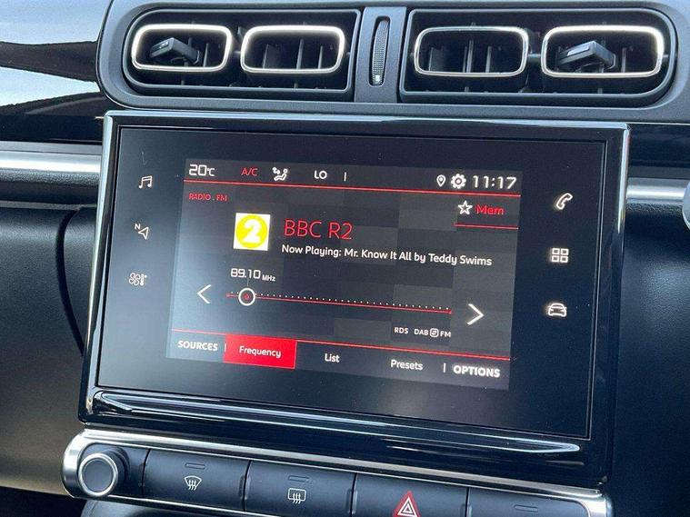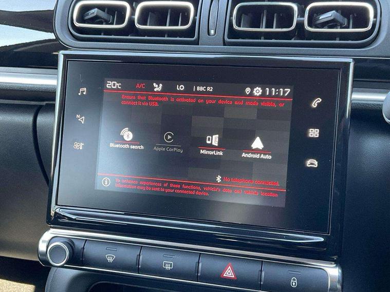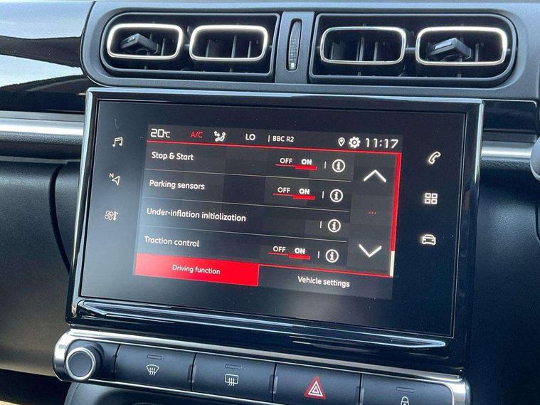 7" colour touch screen, Citroen connected CAM with automatic lights and wipers, electrochrome rear view mirror, Coffee Break Alert, Cruise control + speed limiter, Exterior temperature display, Gear efficiency indicator, Lane departure warning system, Mirror screen with mirror link, apple carplay and android auto, Multi function on board trip computer, Rear parking sensor, Rev counter, Reversing camera, Speed limit recognition and speed warning, Traffic sign recognition, Variable assistance power steering, Auxiliary input socket, Bluetooth hands free and media streaming, Citroen connected DAB radio with 6 speakers, Steering wheel mounted audio controls, Airbump coloured highlight, Body colour bumpers, Dark tinted rear windows, Electric adjustable/heated/folding door mirrors, Electric front windows + one touch + anti-pinch, Electric rear windows + anti-pinch, Front fog lights, Height adjustable halogen headlights, LED daytime running lights, Rear wiper, Roof colour fog light surround, Wheel arch extensions, 12 volt socket in cabin, 2 rear isofix mounting points (outside seats) with top tether, Automatic air conditioning, Boot light, Driver and passenger's sun visor with courtesy mirror, Front courtesy reading lights, Front cupholders x 2, Front seat and rear pockets, Height adjustable driver's seat, Height adjustable front headrests, Height/reach adjust steering wheel, Lashing eyelets in boot, Luggage style interior door handles, Rear cupholder, Soft-touch plastic gear knob, Split folding rear seats, Three height adjustable rear head restraints, ABS with Electronic brakeforce distribution and Emergency braking assistance, Airbags - Driver/front passenger, front lateral and curtain, Drivers/passengers and rear seats unfastened seat belt warning, Electric child locks, Electronic stability control, Five 3 point inertia reel seat belts, Front seatbelt pretensioner, Hill start assist function, Tyre pressure monitor, Alarm, Immobiliser, Locking wheel nuts, Remote central locking + deadlocks, Space saver spare wheel,