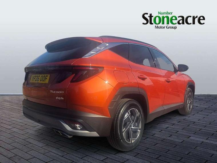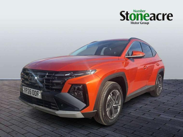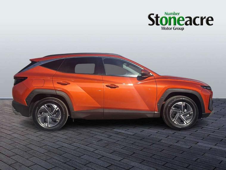 12.3" LCD display with driver's supervision instrument cluster, 12.3" widescreen navigation with bluelink and mapcare, Bluetooth system, Cruise control, Digital clock, Drive mode selector, Driver attention warning, E-call, Emergency stop signalling system, Forward Collision Avoidance Assist (FCA) - Car, Pedestrian and Cycle, Front and rear parking sensors, Hyundai road side assistance, Intelligent speed limit assist, Lane follow assist, Lane keep assist, Over the air updates(OTA), PAS, Rear camera and guidance parking system, Rev counter, Tailgate open warning light, Trip computer, Trip odometer, Voice recognition, Water temperature gauge, Windscreen washer fluid sensor and warning indicator, Wireless Apple CarPlay/Android Auto, Wireless phone charging pad, Charging cable - 7 pin type 2, Charging cable - Emergency 3 pin connector mode 2 (ICCB), 2 front and 2 rear speakers with 2 tweeters, 2 front and 2 rear USB-C ports, DAB Digital radio, Steering wheel mounted audio/phone controls, Adjustable intermittent front windscreen wipers with aero wiper blade, Auto dimming rear view mirror, Automatic defog system, Automatic headlights with dusk sensor, Automatic windscreen wipers with rain sensor, Black wheel arches, Body colour bumpers, Body colour door mirrors with integrated indicators, Body colour exterior door handles, Electrically adjustable, heated and power folding door mirrors, Follow me home headlights, Front and rear electric windows with anti-trap mechanism and one touch control, Front fog lights, LED 3rd brake light, LED daytime running lights, LED Headlights, LED rear lights, Positioning Lights - LED, Privacy glass - Rear windows and tailgate, Rear side wing doors, Rear wash/wipe with intermittent wipe setting, Roof rails, Soft touch rear door paneling, Tinted glass with windscreen shade band, Trailer stability assist, 12V power outlets in front console and luggage compartment, 3 seat bench in 2nd row, 40/20/40 split folding rear seat, 64 colours interior ambient lighting, Adjustable head restraints (Up and down), Cupholders in rear armrest, Door courtesy lights, Driver and passenger sunvisors with illuminated LED vanity mirrors, Driver's seat manual height adjust, Dual zone climate control, Front and rear door pockets, Front armrest with storage box, Front centre console and door bottle holders, Height/reach adjustable steering column, Illuminated/air conditioned glove compartment, ISOFIX child seat anchorage points attached on outer rear seats, Leather wrapped steering wheel and gear knob, LED interior lighting, Luggage compartment lighting, Luggage cover, Luggage hooks, Luggage net, Manual height adjustable front passenger seat, Map and reading lights, Premium cloth upholstery, Rear seat remote folding function, Reclining rear seats, Retractable load cover, Single front passenger seat, Sunglasses holder, Touch sensitive climate controls with temperature dials, Underfloor boot compartment, Trailer wiring package - Tucson, 3x3 point rear seatbelts, Active bonnet, Airbag - Front, front side, curtain and centre front airbags, Anti-lock brake system (ABS), Brake assist function, Childproof rear door locks, Curtain airbag roll over sensor, Downhill brake control, Electric parking brake, Electronic stability control, Front and rear seatbelt reminder, Front passenger airbag deactivation switch, Front seatbelt pretensioners, Hill start assist control (HAC), Multi-Collision braking, Outer rear seatbelt height adjustment, Seatbelt height adjustment for front seats, Traction control, Tyre pressure monitoring system with individual tyre pressure display - TPMS, Vehicle stability management, Deadlocks, Immobiliser, Locking wheel nuts, Remote control central locking, Smart key with keyless entry and engine start/stop button, Speed sensitive auto door locking, Thatcham category 1 alarm, 17" Alloy wheels, Tyre repair kit,
