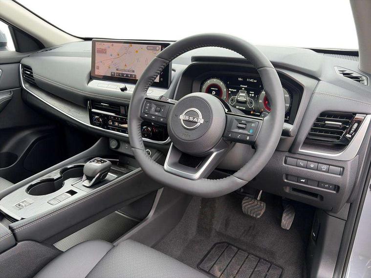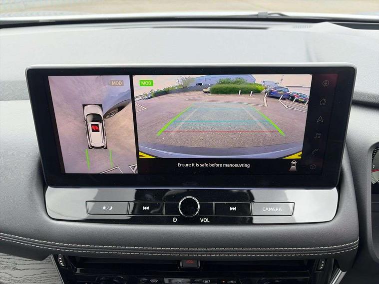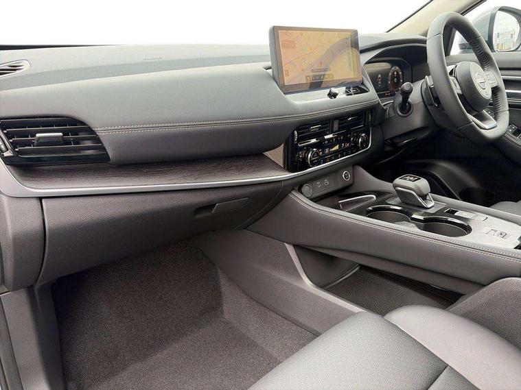 Advanced 10.8" head up display, Android auto wireless, Blind spot warning, Drive assist custom mode, Drive modes (sport, normal, eco), Driver drowsiness and attention warning, Electric speed sensitive power steering, Emergency and breakdown call, Event data recorder, Front and rear parking sensors, Full Digital 12.3" TFT Digital Combimeter, Google maps services - search, weather, 3D maps and Google street view, Hands free power tailgate, Idle stop/start system, Intelligent around view monitor, Intelligent Cruise control (ICC), Intelligent driver alert system, Intelligent forward collision warning, Intelligent lane departure warning, Intelligent lane intervention, Intelligent lane keep assist, Lane departure prevention, Maximum speed limiter, Moving object detection, Nissan connect 12.3 inch touchscreen infotainment system, Nissan connect nav with TomTom traffic, Propilot assist with Navi-Link, Push button starter, Rear cross traffic alert, Rear view camera, Remote control services - door locks, lights, horn and car locator, Reversing detection, Telematics - notifications and connectivity services, Traffic jam pilot, Traffic sign recognition with legal speed adjustment, Trip computer, Virtual personal assistant and firmware over the air capability, Wireless apple carplay, Wireless charging pad, 6 speakers, AM/FM audio system with DAB, Bluetooth audio streaming, Front USB connections (Type-A and Type-C), Rear USB charging only ports 2 Type-C, Auto rear wiper when reversing, Body colour mirror caps, Body coloured door handles, Bodyside mouldings, Chrome side window finisher, Electric auto folding door mirrors, Electric sunroof/sunshade, Electrically adjustable and heated door mirrors, Follow me home headlights, High beam assist, Intelligent auto headlights, LED 3rd brake light, LED daytime running lights, LED front fog lights, LED headlights with adaptive driving beam, LED rear lights, One touch front and rear electric windows with remote opening and closing, Partially body coloured bumpers, Rain sensing wipers, Rear privacy glass, Rear reversing light (bulb lighting), Rear roof spoiler, Rear side wing doors, Rear styling plate, Roof rails, Shark fin antenna, Smart rear view mirror with auto dimming, Splash free wipers, Super UV and infrared cut glass, Thermaclear heated windscreen, Three blink turn signal, 12v power socket in dashboard and luggage, 3 bench rear seats in 2nd row, 3 rear headrests, 40/20/40 folding rear seats with recline, Butteryfly console, Chrome interior door handles, Driver and front passenger sunvisors with illuminated vanity mirrors, Driver seat back pocket, Electric adjustable 2 way lumbar support for driver, Electric adjustable 2 way lumbar support for passenger seat, Electric adjustable driver and passenger seat with memory function, Fore/Aft adjustable rear seats, Front and rear heated seats, Front centre console and armrest, Front cupholders, Front door with bottle holders, Heated steering wheel, Height adjustable driver's seat, Height adjustable front headrests, Height adjustable passenger seat, Leather shift knob, Leather steering wheel, Luggage board system, Luggage space lighting, Multifunction steering wheel, Passenger seat back pocket, Rear armrest with 2 cupholders, Rear door bottle holders, Single front passenger seat, Sliding second row seats, Steering column mounted gear shift paddles, Synthetic leather monoform upholstery, Tilt/telescopic adjustable steering wheel, Tri zone automatic climate control with pollen filter, Two rear isofix child seat anchorage points with top tether, 3x3 point rear seatbelt pretensioners + load limiters, ABS with EBD and brake assist, Active brake limited slip, Auto hold function, Child locks on rear doors, Curtain and front side, far side airbags, Driver and passenger airbags, Driver, passenger and 2nd row rear seat belt reminder, Electronic parking brake, Front seatbelt pretensioners + load limiters, Height adjustable front seatbelts, Hill start assist, Intelligent blind spot intervention, Intelligent front emergency braking with pedestrian, cyclist recognition and junction assist, Intelligent rear automatic braking, Tyre pressure monitoring system, Vehicle dynamic control, Approach unlock and walk away lock, Engine immobiliser, Intelligent Key, Remote central door locking with deadlocking, Thatcham Cat.1 alarm, 19" Diamond cut alloy wheels, Tyre puncture repair kit,