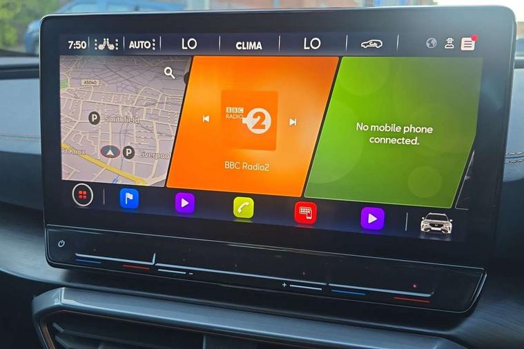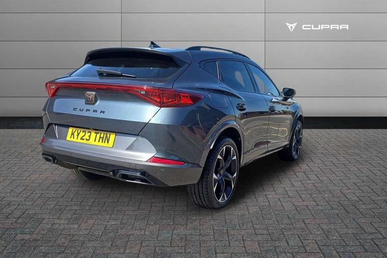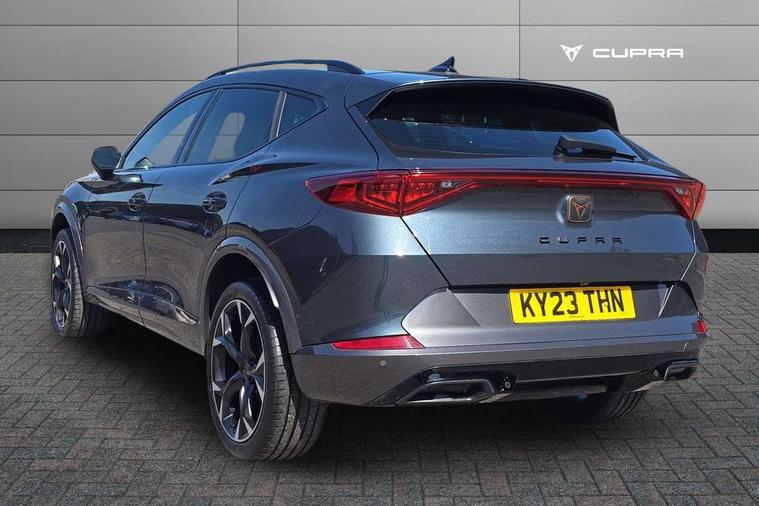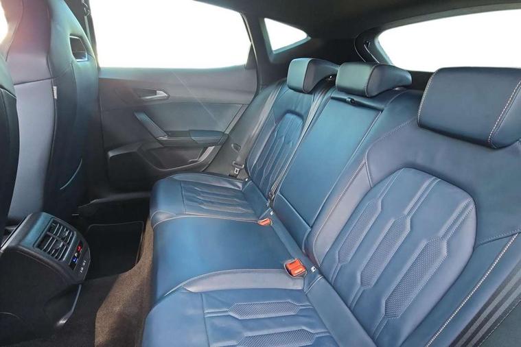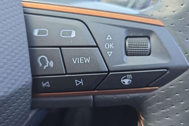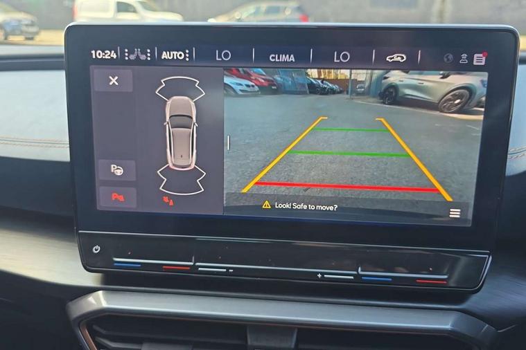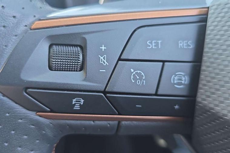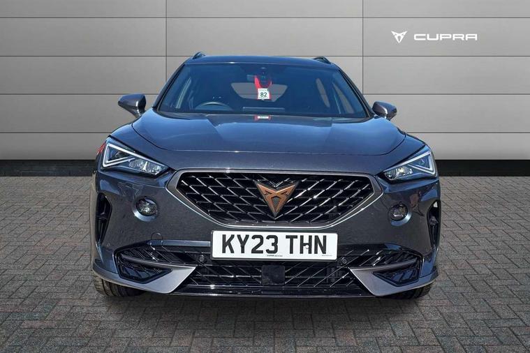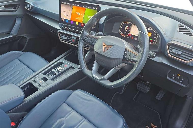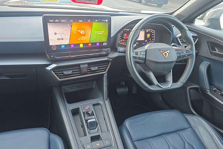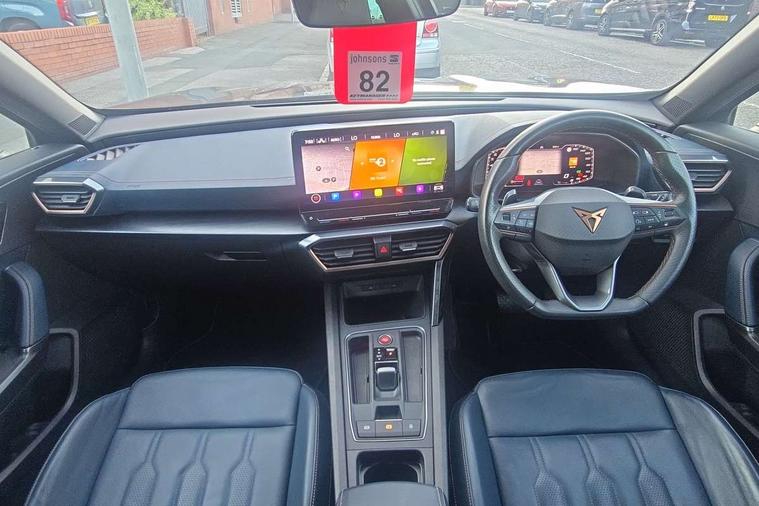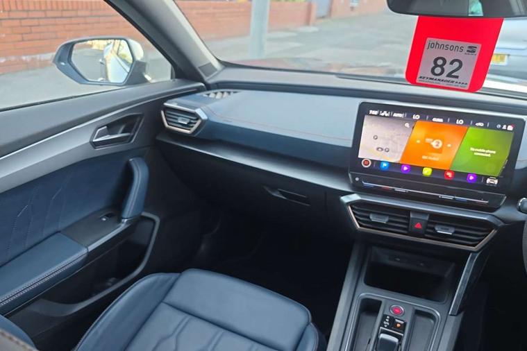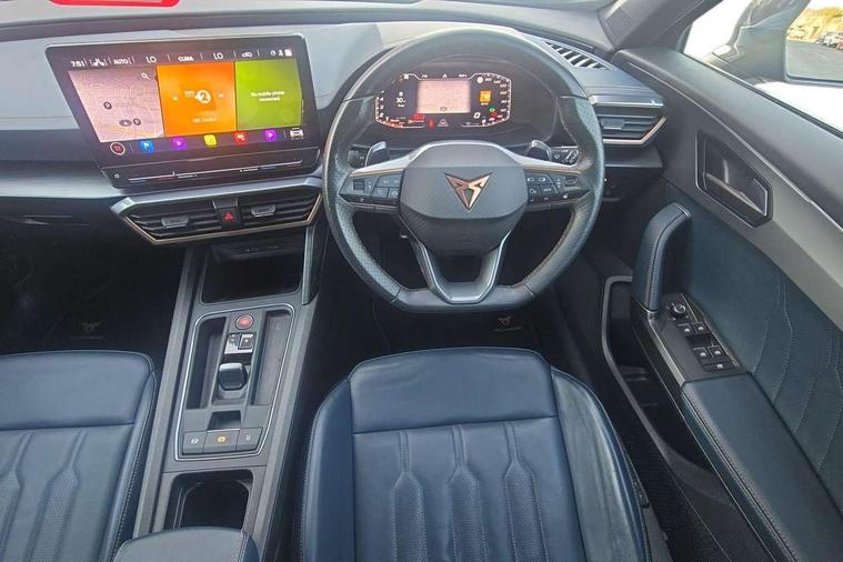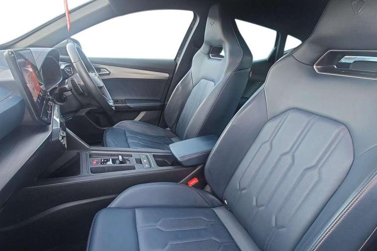 Digital cockpit and configurable dashboard, Driver alert system, Driving profile selection, Forward collision warning with automatic braking, Lane assist, Navigation system with 12'' Touchscreen Display, Park assist (inc front/rear parking sensors), PAS, Predictive adaptive cruise control with speed limiter, Rear view camera, RPM, trip computer, outside temp gauge, instrument light brightness, low fuel warning light, lights on reminder, gearshift indicator, Service interval indicator, Start/stop system with regenerative braking, Voice control system, Wireless apple carplay, Wireless phone charger, Electronic locking differential and dynamic traction support, Standard suspension, 2 front and 2 rear USB type C sockets, Auxiliary input socket, DAB radio, Auto dimming rear view mirror, Body colour door handles, Body coloured bumpers, Dark grey wing mirror, Daytime running light with automatic headlight control and coming home feature, Dynamic headlight range control, Electric front/rear windows, Electrically adjustable heated and folding door mirrors with memory function, Front fog lamps with cornering function, Gloss black roof rails and window surrounds, LED Headlights, LED Taillights with dynamic indicator, Rain sensing wipers, Rear diffuser with black simulated exhaust pipes, Rear side wing doors, Rear wash/wipe, Third brake light, Tinted rear windows, Welcome lights, 12v power supply in centre console, 12V socket, 12v socket in loadspace, 2 front and 2 rear reading lights, 230V socket, 3 seat bench in 2nd row, 60/40 split rear bench seat with armrest and mechanical seat release, Black headlining, Dust/pollen filter, Front and rear head restraints, Front centre armrest, Height/reach adjust steering wheel, Illuminated interior front door sills, Illuminated sunvisor with mirror, Isofix, Leather multi function heated steering wheel with gear shift paddles, Luggage tie-down hooks, Single front passenger seat, Three zone climate control with control panel in rear, Variable luggage/load compartment floor, Wraparound lighting, Genuine Nappa leather Pack - Cupra, 3 point seatbelts on all rear seats, ABS, Brake control system - ESC and brake booster, Child proof door locks, Driver and front passenger airbags with front passenger airbag de-activation, Electronic parking brake, Front and rear disc brakes, Front side curtain airbags, Hill hold control, Public e-call, Seat belt reminder for front and rear seats, Tyre pressure monitoring system, Anti theft alarm system, Keyless entry and start system (KESSY), Locking wheel bolts, Copper and aluminium interior detailing, 19" 'Exclusive' machined sport matte black and silver alloy wheels,
