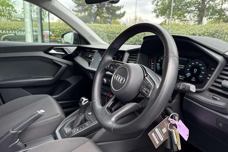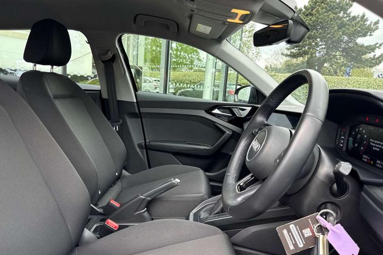 10.25" Digital instrument cluster display classis style instrument dials + speed, odometer, time, outside temperature, telephone menu + fuel level warning, Audi connect safety emergency and service including E-call, Audi smartphone interface with connect compatible smartphone via USB directly MMI display + Nav, music, third party apps controlled via MMI controller, Automatic start/stop system, Bluetooth interface, Driver's information system, Electromechanical power steering, Emergency services call system, Lane departure warning system, Service interval indicator, Speed limiter, Voice control system, Washer fluid level indicator, Dynamic suspension, 1 x SDXC card reader, 2 x USB type C connection points, 6 passive loudspeakers, DAB Digital radio, MMI radio plus with 8.8" colour MMI display screen and MMI touch, 3rd brake light, Auto dimming rear view mirror, Body coloured bumpers, Body coloured door mirrors, Electric front and rear windows, Electrically adjustable, heated, folding door mirrors with integrated LED side indicator, Front side air inlets with front spoiler lip and rear diffuser in matt black grained, Heat insulating glass windscreen and side windows, Heated rear windscreen, LED headlights with LED rear lights + dynamic rear indicators + headlight adjustment and high beam, turning light + LED daytime running lights, Radiator grille in matt black, Rain and light sensors, Rear fog lights, Rear side wing doors, Rear wing door, Rear wiper, 12V socket in centre console with two cup holders, 3 rear seats with headrests, 3 seat bench in 2nd row, 3 spoke leather multifunction plus steering wheel, 40:60 Split folding rear seat or folded fully, Air vents, door handle recesses and centre console in black, Delta cloth upholstery, Driver and passenger seat with manual height adjust with forward and backwards adjustment, Front head restraints, Front passenger seat, Front/rear floor mats, Height and reach adjustable steering wheel, ISOFIX child seat mounting for front passenger and outer rear seats including top tether attachment point of outer rear seats, Leather gear knob with aluminium trim, Leatherette handbrake grip, Luggage compartment light with front and rear reading lights, Manual air conditioning, Titanium grey cloth headlining, Luggage compartment pack - A1, 3x3 point rear seatbelts, Audi pre-sense front with pedestrain and cyclist recognition, Brake assist function, Driver and front passenger airbag with front side and head airbags, Electronic Stability Control including ABS, EBD, ASR and EDL, Front passenger airbag deactivation switch, Hill hold assist, Manual rear child locks, Seatbelt height adjustment for front seats, Seatbelt monitoring, Tyre pressure warning light, Warning triangle and first aid kit, Anti theft alarm, Anti theft wheel bolts and loose wheel warning, Immobiliser, Remote central locking with 2 foldaway keys, Black inlays polygon structure, 15" 5 arm design alloy wheels,