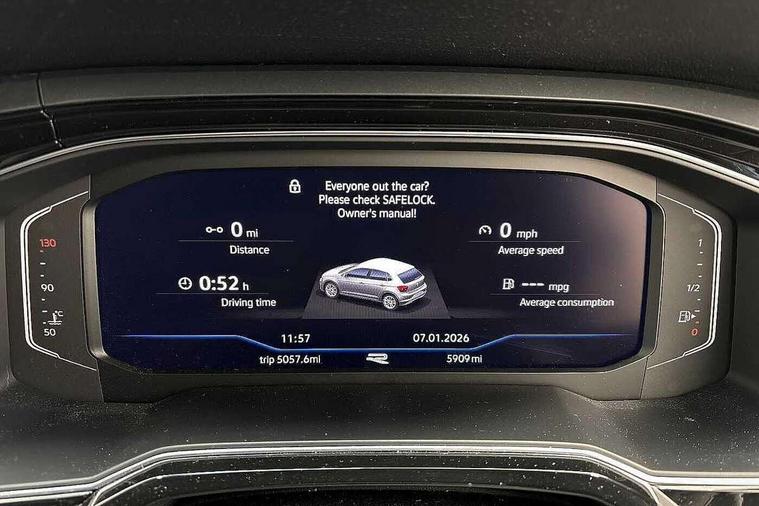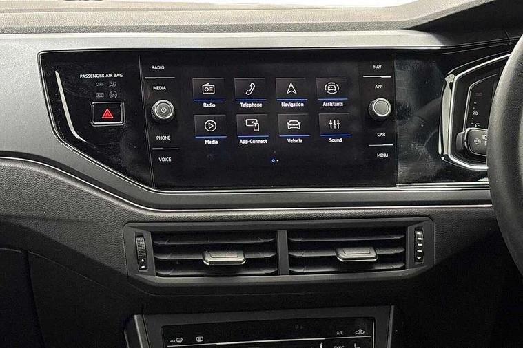 Adaptive cruise control with follow-to-stop and speed limiter, Advanced driver attention and drowsiness monitor, Bluetooth mobile phone interface, Digital Cockpit Pro with 10.25" Display, Dynamic road sign display, Emergency call service, Multifunction camera, Power assisted speed sensitive steering, Preparation for We connect and We connect plus, Speedo and rev counter, electronic odometer, trip, service interval display and fuel gauge, Standard rear axle, Travel Assist - Lane keeping system and traffic jam assist, Travel assist including emergency assist, Trip computer, Warning signal and warning light for front and rear seatbelts not fastened, Washer fluid level indicator, Wireless app connect, Front wheel drive, Rear shock absorpion, Start-stop system with battery regeneration (recuperation - energy recovery during braking), DAB Digital radio, Diversity antenna for FM reception, Front and rear 6 speakers, Body colour bumpers, Body colour door handles, Electric front windows, Front scuff plates with R-Line logo, Heat insulating glass windscreen, Power folding adjustable/heated exterior mirrors and front passenger exterior mirror lowering function, Rear electric windows, Rear fog light, Rear side wing doors, Rear windscreen washer and wiper with interval delay, Third brake light, 12V power socket in centre console, 2 USB-C ports in the front, 2 USB-C charging sockets on the center console in the rear, 3 rear head restraints, 60/40 split folding rear seat and rear seat bench not split, Air care climatronic air conditoning system with active combination filter and 2-zone temperature control, Black roof lining, Carpet mats, front and rear, Chrome plated radiator grille inserts, air vent surrounds and light switch surrounds, Door and side trim panel, Driver and front passenger seat height adjustment, Driver/passenger sunvisors with illuminated vanity mirrors, Front centre armrest, Front footwell illumination, Front seat backrest storage pockets, Front sports comfort seats, Handbrake lever handle in leather, Headliner in recycled material, Isofix child seat preparation easy-fit (for two outer rear seats, and front passenger seat) compatible with I-size, Karoso artvelours cloth upholstery, Leather trimmed gear knob, LED interior light with switch off delay and dimmer, 2 reading lights front and rear, Luggage compartment cover, Luggage compartment floor, Luggage compartment lighting, Lumbar adjustment for front seats, Single front passenger seat, Stainless steel pedals, Standard pedal cluster, Three spoke leather wrapped multifunction steering wheel with shifting paddles, Light and sight pack - Polo R-Line/Black Edition, 3 point height adj front seatbelts + pretensioners, 3x3 point rear seatbelts, ABS, Driver and front passenger airbag with front passenger airbag deactivation, Drivers and front passengers safety optimised head restraints, ESC (Electronic stability control) + EDL (Electronic Differntial lock) and ASR (Traction control), Extended and predictive pedestrian/ cyclist protection, Front curtain and side airbags with center airbag, Front/rear disc brakes, Hill hold control, Manual child lock in rear doors, Single tone horn, Tyre pressure loss indicator, Alarm with interior protection, Anti-theft alarm system with interior monitoring, backup horn, and towing protection, Anti-theft wheel bolts, Electronic engine immobiliser, Chrome applications on rotary light, mirror adjustment, window regulator switches, outlet with frame in black, Dark grey anodised matt decorative inserts in dash and front door panels, 16" Coventry alloy wheels, Low rolling resistance tyres,