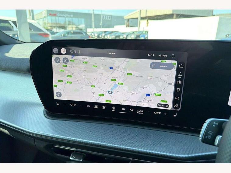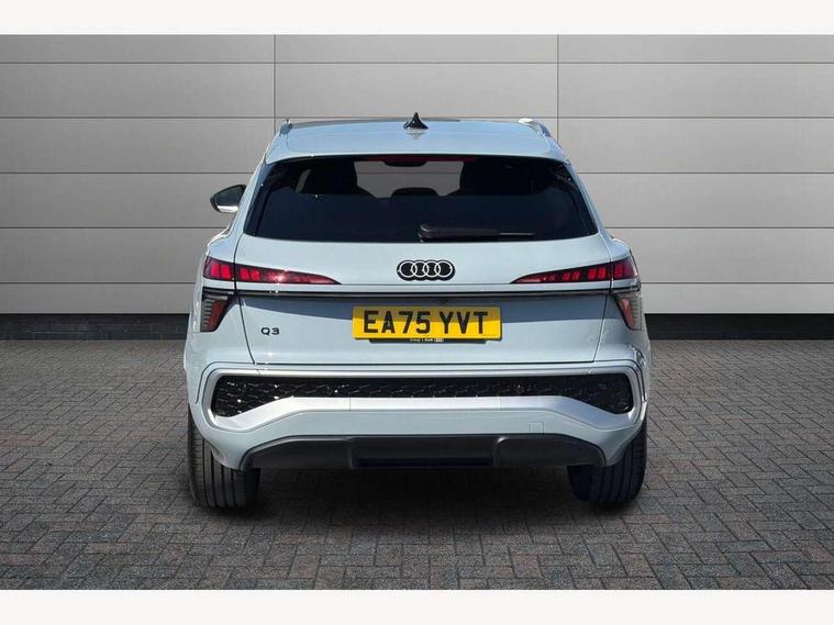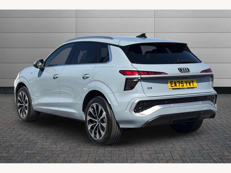 Adaptive cruise control, Audi connect emergency call and service, Audi connect remote and controls, Audi drive select (Balanced/Individual, effeciency, comfort and dynamic), Audi virtual cockpit plus - 11.9" display, Bluetooth interface, Camera based traffic sign recognition, Driver attention and fatigue monitor with driver monitoring, Front cross traffic assist, Lane departure warning with emergency assist, Panoramic curved display with 12.8" MMI navigation plus and MMI touch, Park assist plus with parking system and 360 display, Phonebox light with wireless charging, Reversing camera, Smartphone interface includes wireless Apple carplay/Android Auto, Start/stop system, Swerve assist and turn assist, Traffic sign based speed limiter, Voice control system with natural language interaction, Comfort suspension, Petrol Particulate Filter, 2 USB-C ports with charge and data functions, Audi sound system with 10 loudspeakers, subwoofer, 8 channel amplifier with 260 watts, DAB digital radio module, Acoustic glass for front door windows, Acoustic windscreen, Aluminium roof rails, Aluminium window trim, Audi Q3 lettering on the B-pillars, Auto dimming door mirrors, Auto dimming rear view mirror, Body colour door mirrors, Contrasting finish in volcano grey, Electrically folding, adjustable and heated door mirrors with integrated LED side indicators and kerb view function for passenger side, Full paint finish, Illuminated door sills with aluminium inserts at the front with S logo, LED daytime running lights, LED headlights plus with LED rear lights pro with continous light strip, illuminated Audi rings, rear, LED third brake light, Loading sill protector in stainless steel, Main beam assist, Privacy glass - dark tinted rear window, rear door and side windows, Projection light in the exterior mirrors - Projects a graphic element onto the ground, Q3 badging on the rear, Rain and light sensors, Rear side wing doors, Rear window, rear door windows and rear side windows in clear glass, Rear wiper, Sports bumpers, 3 seat bench in 2nd row, 3 spoke flat top and bottomed leather multi function sport steering wheel with gear shift paddles and "S" badging, 3-zone deluxe automatic air conditioning, 4 way lumbar support for the front seats - electric with horizontal and vertical adjustment in four directions, Black cloth headlining, Front and rear floor mats, Front and rear headrests, Front centre armrest, Heated front seats, Height and reach adjustable steering wheel, Interior storage compartment, Leather/artificial leather upholstery combination with S emblem + front sports seats, Luggage compartment lid, electrically opening and closing, Manual front seats with height adjustment, Rear seat bench plus with split folded 40:20:40, Single front passenger seat, Stainless steel pedals, Steering wheel operating unit, gloss black, Storage compartment in front centre console, Ambient lighting package pro - Q3, S line exterior styling pack - Q3, 3x3 point rear seatbelts, Convenience key with safelock, Driver and front passenger airbag with passenger airbag deactivation, Electromechanical parking brake, Electronic stabilisation control including ABS, ASR and EDL, First aid kit with warning triangle and high visibility vests, Front emergency brake assist, Hill hold assist, i - Size child seat mounting on the front passenger side and i - Size and top tether on the outer rear seats, Power operated child locks, Seatbelt monitoring, Three point automatic belts with belt tensioner and height adjustment, Tyre pressure loss indicator, Anti theft wheel bolts, Remote central locking, Thatcham approved category 1 anti theft alarm, Dark aluminium divergence inlay, Interior elements in dinamica microfibre, Interior trims in aluminium look, Tool kit and Jack,