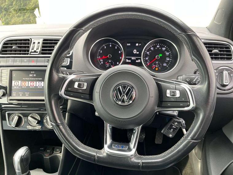Bluetooth Telephone preparation, Driver alert system, Fatigue detection system, Multi function display, Multifunction computer, PAS - speed related, Service interval indicator, Warning buzzer and light for front seatbelts unfastened, Lowered sports suspension, XDS electronic differential lock, 6 speakers, Composition media system with radio, glovebox mounted CD, colour touch screen, SD card, aux-in, USB, multimedia interface, DAB Digital radio, Body colour bumpers, Body coloured side sills, Chrome trimmed front air intake surrounds, Dark tinted rear lights, Electric front windows, Electric operated/heated door mirrors, Front wash/wipe with interval delay, Gloss black door mirrors with integrated indicators, Gloss black grille with chrome surround, Heated rear window with auto timer, Rear electric windows, Rear windscreen washer and wiper with interval delay, Twin exhaust tailpipe, 12V power socket in centre console, 2 bag hooks in luggage compartment, 2 cupholders, 3 rear head restraints, 3 spoke steering wheel, 4 grab handles, 60/40 split folding rear seat, Black roof lining, Centre console storage, Chrome interior door handles, Driver and passenger sunvisors, Driver/front passenger seat height adjustment + underseat drawers, Dust/pollen filter, Front door pockets, Front passenger seat height adjust, Gearshift paddles, Glovebox, Height/reach adjustable steering column, Illuminated vanity mirror, Interior light with delay, Isofix Preparation 2 Rear child seats, Luggage compartment cover, removable, Luggage compartment lighting, Matt chrome gear lever gaiter surround, Multifunction leather steering wheel with leather gear knob/handbrake grip, Storage compartment in front doors, Storage compartment in rear doors, Sunglasses holder, Variable boot floor, BlueGT Styling Pack - Polo, 3 point height adj front seatbelts + pretensioners, 3x3 point rear seatbelts, ABS, Automatic post collision braking, Driver/front passenger airbag, Driver/Passenger whiplash optimised head restraints, ESC - Electronic Stability Control + traction control, ESP with EDL + ASR, Hill hold control, Hydraulic Brake Assist (HBA), Tyre pressure monitoring system, Alarm with remote central locking and interior protection, Electronic engine immobiliser, Air vents in Matt chrome, Black high gloss trim, Full size spare wheel,