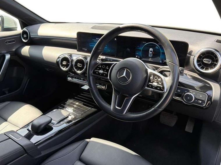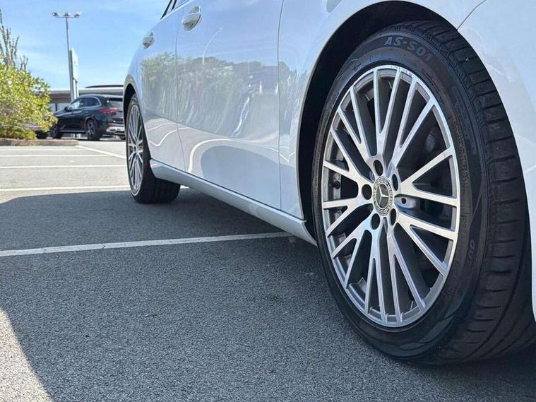 10.25" media display, 180 degree rear view camera with parking guidelines, 7" colour screen in instrument panel, Active parking assist with visual and audible warning of detected obstacles, Attention assist, Brake pad wear indicator warning light, Car wash mode, Cruise control + speed limiter, Direct steering, Dual bluetooth interfaces, DYNAMIC SELECT with a choice of driving modes (ECO, Comfort, Sport and Individual), ECO start/stop function, Fluid level warning indicator for fuel, oil, coolant and washer fluid, Hard-disk navigation, Hey Mercedes Voice activation, Lamp failure indicator, Lane keeping system, Mercedes me connect including emergency call system, accident recovery, breakdown and maintenance management, Mercedes me remote services, Outside temperature gauge, Owners manual in English, Pre-installation for private car sharing, Preinstallation for Mercedes Benz link, Service indicator (ASSYST), Smartphone integration with Apple CarPlay and Android auto, Speed limit assist, Speed sensitive power steering, Trip computer, Ultrasonic sensors positioned in the front and rear bumpers, Lowered comfort suspension, Rear axle torsion beam, 2 USB ports (type C) in rear stowage compartment and one in front of center console, 6 speakers, DAB Digital radio, MBUX multimedia system with DAB digital radio and touchpad including satellite navigation, Mercedes-Benz sound system - 100W, 4 Electric Front and Rear windows, Adaptive brake lights, Automatic headlights, Black weather strip, Body colour bumpers, Body colour door handles with chrome inserts, Body colour side skirt, Body coloured door mirrors, Chrome beltline trim, Diamond radiator grille with black pins with one louvre in silver + chrome insert, Electric adjustable and heated door mirrors with integrated LED side indicators, Exhaust system - Twin visible tailpipes in polished stainless steel, Headlamp assist automatic headlamp activation, Heated glass rear windscreen + timer control, LED High level third brake light, LED high performance headlamps with integrated LED daytime running lights, LED tail lamp, Privacy glass, Radio aerial, Rain sensing windscreen wipers with two sensitivity settings, Rear fog lights, Rear side wing doors, Rear wiper, Window line trim strip in chrome, 3 seat bench in 2nd row, 3 Spoke leather multi function steering wheel, 40:20:40 split folding rear seats, Artico man-made leather upholstery, Auto Mercedes-Benz child seat recognition sensor, Black air vents with surround in silver chrome, Black roof lining, Controller on centre console with chrome surround, Front centre armrest with storage compartment, Front comfort seats with adjustable head restraints, Front door sills with Mercedes Benz lettering, Front seat backs luggage nets, Gearshift paddles on steering wheel, Heated front seats, Height/reach adjustable steering column, Interior mirror with reading lamps in black and frameless, Manual height adjustable front seats, Rear head restraints, Seat occupancy sensor for front passenger seat, Single front passenger seat, Stowage compartment in centre console with retractable cover, Sunvisors with illuminated vanity mirrors, Touchpad on center console, Twin front cupholders, Two zone thermotronic luxury automatic climate control, Velour floor mats, Light and sight pack - A Class, Mirror package - A Class, Seat comfort pack - A Class, 3 rear 3 point seatbelts, ABS with Brake Assist, Active bonnet, Active brake assist includes forward collision warning system with autonomous braking, Adaptive brake assist with hold function and hill start assist, Childproof locks manually operated for rear doors and electrically operated for rear power windows, Crash responsive emergency lighting, Driver and passenger head and side airbags, Drivers knee airbag, Dual stage driver/passenger airbags, Electronic parking brake, ESP curve dynamic assist, ESP with ASR, Front and rear seatbelt reminder, ISOFIX and top tether child seat fixing points in two outer rear seats, Tyre pressure monitoring system, Warning triangle and first aid kit, Window airbags, Alarm system/interior protection/immobiliser, Keyless Go, Remote central locking and crash sensor with emergency opening function, Urban guard vehicle protection system with immobiliser and interior protection, Black seatbelts, Dark carbon fibre interior trim, 18" Multi spoke light alloy wheels painted in himalayas grey with high sheen finish, Summer tyres, Tirefit sealant kit,
