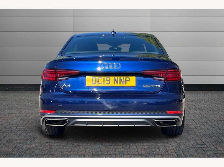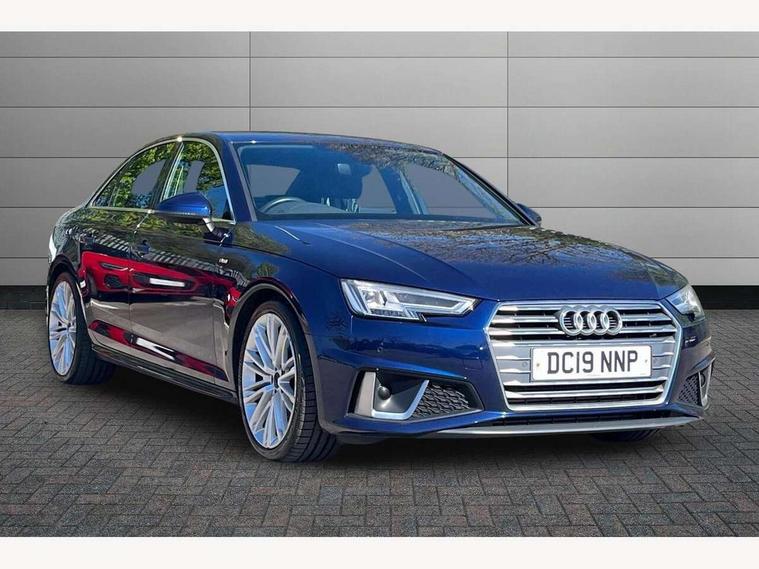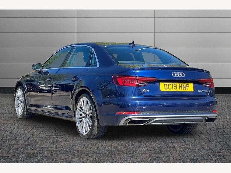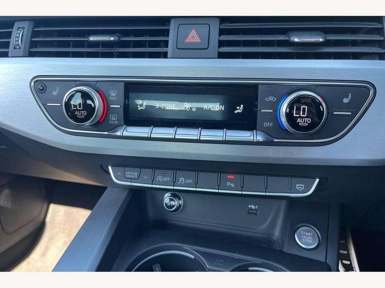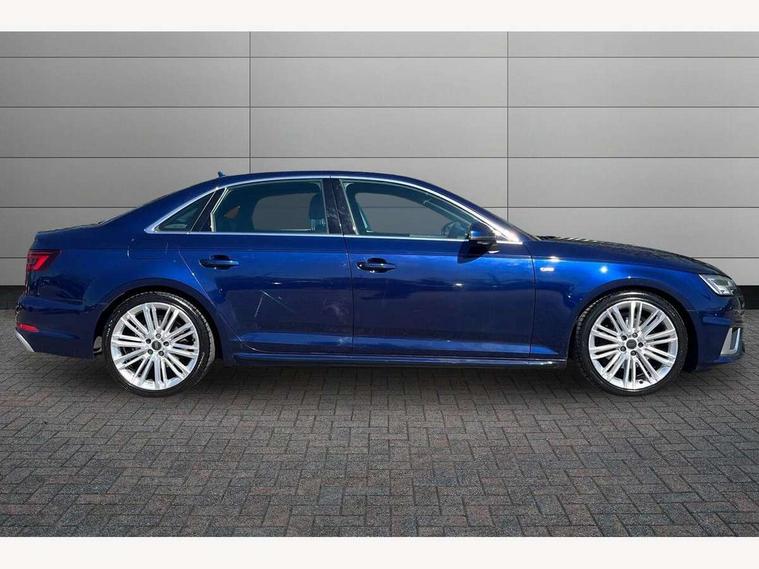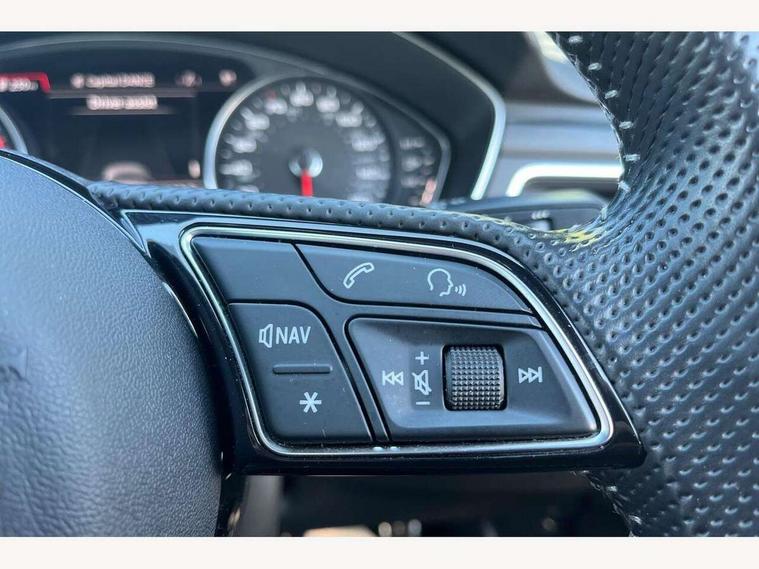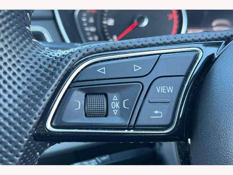 7" Colour driver information system, Audi connect safety and service (e-call), Audi drive select, Audi parking system plus with front and rear sensors, Audi Pre sense collision avoidance, Bluetooth interface, Electric boot release, Electromechanical power steering, MMI SD card Navigation, Service interval indicator, Stop/start button, Voice control system, 54 litre fuel tank, 2 USB interfaces and Aux-In jack, DAB digital radio module, Acoustic windscreen, Air inlets in titan black with two horizontal inlays in chrome, Aluminium window trim, Auto dimming rear view mirror, Automatic headlights + automatic windscreen wipers, Black grained rear grille, Blue tinted glass, Body colour bumpers, Body colour door handles, Body colour door mirrors, Chrome rolled exhaust, Chrome tailpipe finisher, Electric front windows, Electric rear windows, Headlight range control, High beam assistant, High gloss black triangular aperture at rear door, LED daytime running lights, LED indicators in door mirrors, Rain and light sensors, Rear diffuser in Twilight grey matt, S Line badges on the front wings, S line front and rear bumpers with side skirts, Twilight grey matt radiator grille with chrome inlay, 3 zone climate control, 4 way electric lumbar support for driver and front passenger, 40/20/40 split folding rear seats with rear centre armrest, Black cloth headlining, Contrast stitching on seats, steering wheel and gear lever gaiter, Front centre armrest, Front headrests, Front/rear floor mats, Height and reach adjustable steering wheel with full size airbag, Illuminated door sill finishers, Isofix child seat preparation for front passenger/outer rear seats inc passenger airbag deactivation, Jack and tool kit, Luggage compartment carpet, Perforated leather gearknob, Rear headrests, Stainless steel foot rest, Stainless steel pedals, Sunvisors with vanity mirrors, Top tether anchor plate for isofix child seat, Non Smokers pack, S line exterior styling pack - A4 Saloon, 3 point seatbelts on all rear seats, Adaptive driver and front passenger airbags, Electromechanical parking brake, Electronic stabilisation control including ABS, ASR and EDL, Front head airbags, Front seatbelt pretensioners + load limiters, Front side airbags, Multi-Collision braking, Pop-up bonnet for pedestrian protection, Seatbelt warning, Traction control, Tyre pressure warning, Variable restraint system, Warning triangle and first aid kit, Anti theft alarm, Keyless Start, Locking wheel bolts, Remote central locking, Thatcham category 1 alarm + immobiliser, MMI radio plus with smartphone interface, Tyre repair kit,