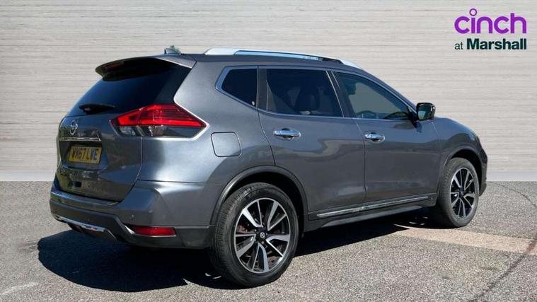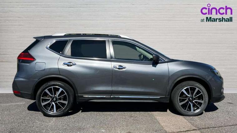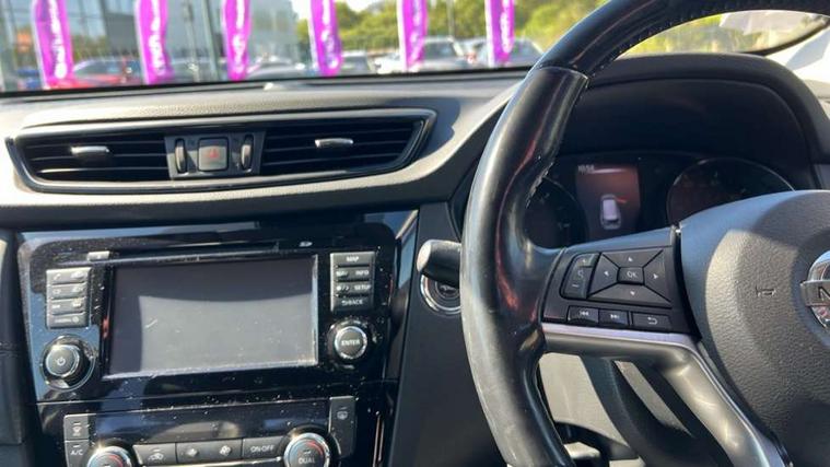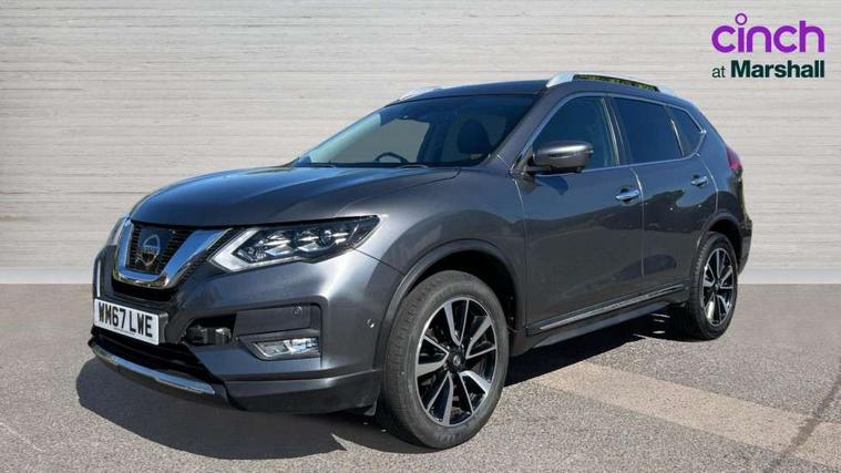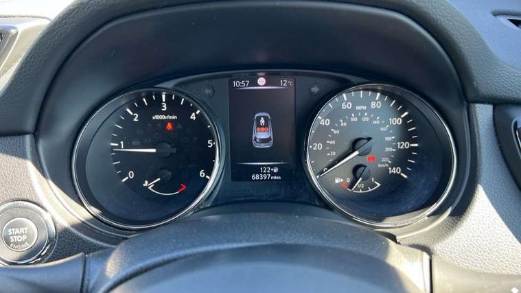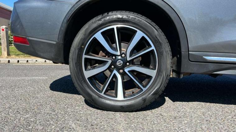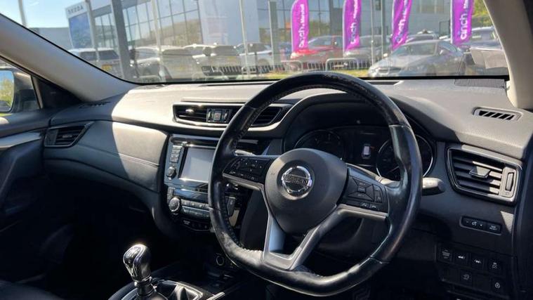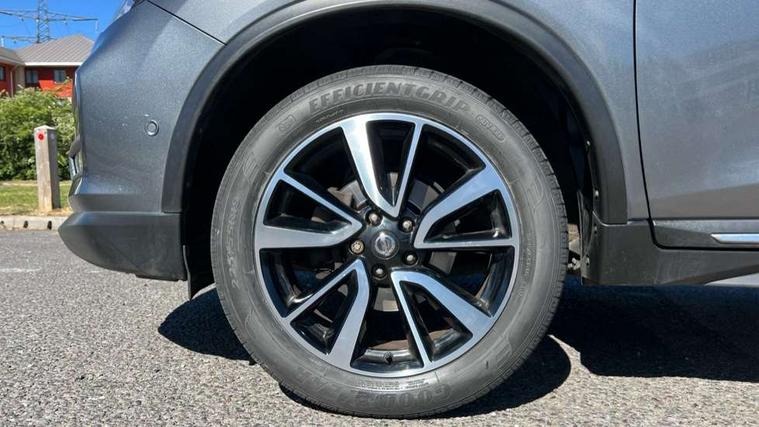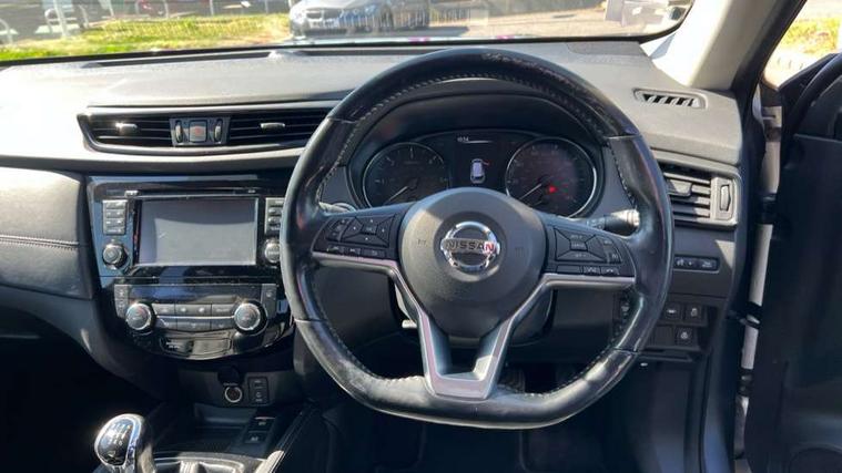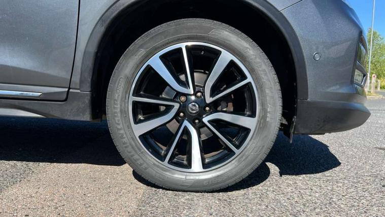 5" TFT driver information centre, Around View Monitor, Attention assist, Automatic tailgate opening, Blind spot monitoring, Bluetooth phone integration system, Cruise control + speed limiter, Engine start button, Front and rear parking sensors, Intelligent parking assist, Lane departure warning system, Moving object detection, Nissan connect sat nav system, PAS, Rear cross traffic alert, Traffic sign recognition, Trip computer, Audio remote control in steering wheel, Bose premium 8 speaker system, DAB Digital radio, Radio/CD, Smartphone apps, USB/aux input socket, Adaptive front lighting system, Auto dimming rear view mirror, Automatic headlights, Automatic rain sensing wipers, Black honeycomb front grille, Body colour door mirrors, Chrome door handles, Chrome side mouldings, Chrome window surround, Electric folding door mirrors, Electric heated door mirrors, Front and rear power windows, Front fog lights, High beam assist, LED daytime running lights, LED Headlights, Panoramic sunroof, Rear privacy glass, Satin silver roof rails, Shark fin roof aerial, 3 rear headrests, 60/40 split rear bench seat, Centre console storage box/armrest, Configurable luggage board system, Dual zone climate control, Electric adjustable front seats including height adjust, Front and rear door pockets with bottle holders, Front cupholders, Heated front seats, Heated rear seats, Heated steering wheel, Height adjustable front headrests, Individual rear reading lights, Isofix child seat attachment, Leather steering wheel and gear knob, Lumbar support, Pollen filter, Rake/reach adjustable steering wheel, Rear armrest, Synthetic leather instrumental panel inserts, Synthetic leather knee pad, 3 point seatbelts on all seats, ABS, Child locks on rear doors, Driver and passenger airbags, EBD + Brake Assist, Electronic parking brake, ESP + traction control, First aid kit, Front and rear curtain airbags, Hill hold assist, Intelligent emergency braking with pedestrian recognition, Seatbelt warning, Tyre pressure monitoring system, Warning triangle, Alarm, Immobiliser, Intelligent Key, Remote central locking, Full size spare wheel,