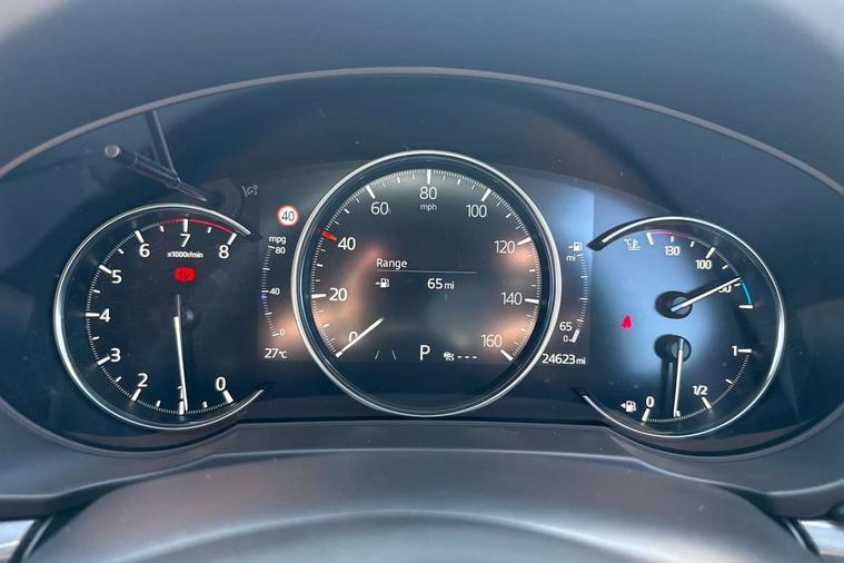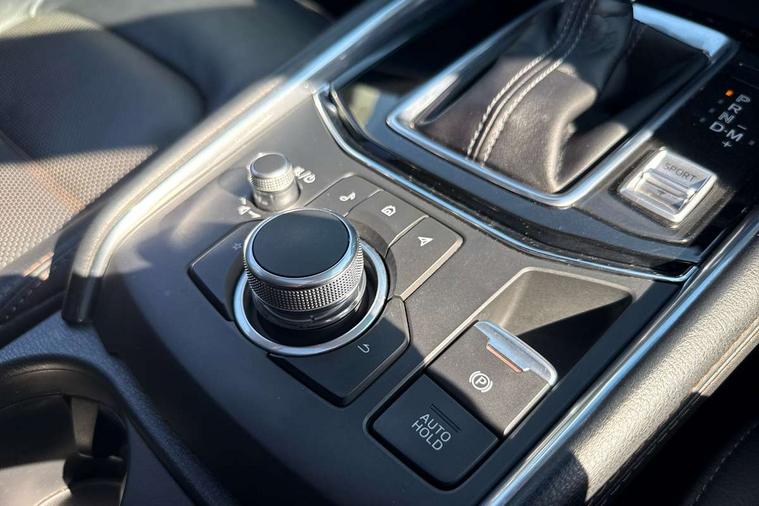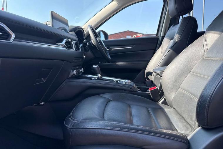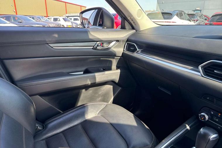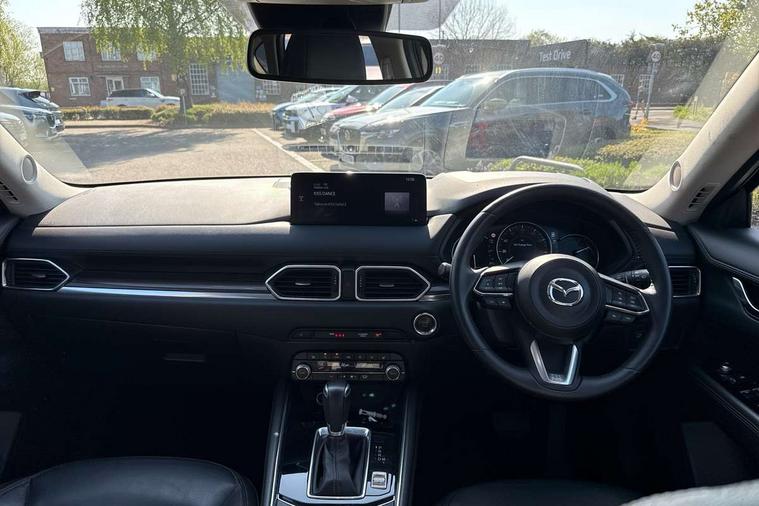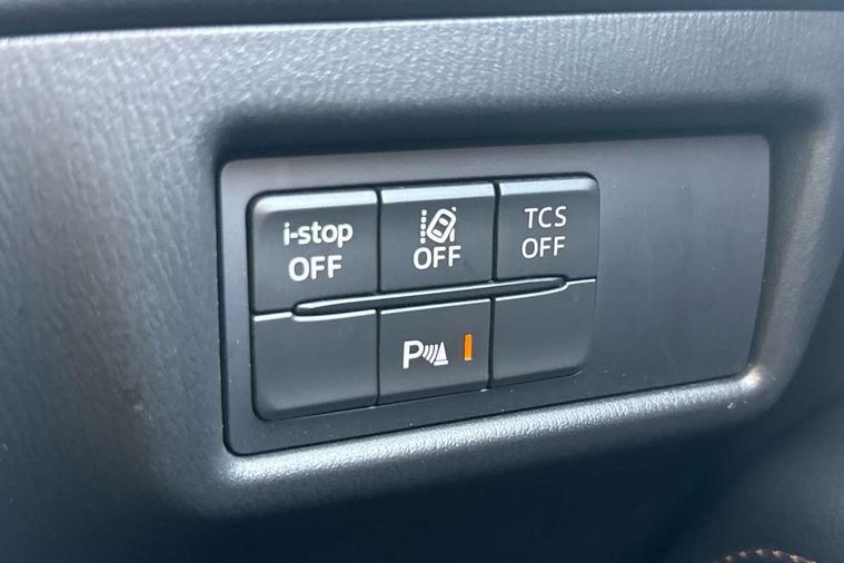 10.25" display with Mazda Connect infotainment, 7" colour TFT display, Advanced blind spot monitoring, Apple car play/Android Auto, Bluetooth connectivity with voice control, Collision prevention assist, Connected services, Cruising Traffic Support, Drive mode selector, Electric power steering, Emergency stop signalling system, Engine start/stop button, Forward collision warning, Front and rear parking sensors, Integrated navigation system, Intelligent speed assist, Lane departure warning system, Lane keep assist, Radar cruise control with Stop and Go, Reversing camera, Service indicator, Traffic sign recognition (TSR), Trip computer, Windscreen projected colour active driving display (HUD) with memory, i-stop, 2 USB sockets in rear, 2x USB sockets in front, 6 speakers, AM/FM radio, Bluetooth audio streaming, DAB Digital radio, Multimedia Commander including separate volume dial, Steering wheel mounted audio controls, Adaptive front lighting system, Auto dimming rear view mirror, Automatic headlights, Black inlay dashboard panel, Body colour door mirrors, Body colour roof spoiler, Body coloured front and rear black lower bumper mouldings, Bright finish signature wing, Coming/leaving home lighting function, Door mirror integrated indicators, Dual chrome tailpipes, Dusk sensitive headlamps, Electric front/rear windows with one touch auto up/down, Front grille in gloss black finish, Gloss black B and C pillars garnish, High beam assist, Intermittent rear wash/wipe, LED auto levelling, LED daytime running lights, LED front fog lights, LED Headlights, LED third brake light, Power folding and heated door mirrors, Power tilt/slide sunroof, Privacy glass (rear side windows only), Rain sensing front wipers, Rear side wing doors, Satin black side mouldings, Scuff plates, Shark fin antenna, Signature LED rear combination lights, Vinyl with wood grain metal inlay door trim panel, Windscreen wiper de-icer, 12v electrical power outlet, 3 seat bench in 2nd row, 3 stage heated front seats, 40:20:40 Karakuri fold-flat seat system, 6 way electric adjustable passenger seat, 8 way electric driver seat with lumbar support + memory, Cargo room flat floor board with waterproof undertray, Driver seat power slide, recline and height adjustment, Driver, Front passenger and two rear grab handles with coat hooks, Driver/passenger front seatback pockets, Driver/passenger sunvisors + illuminated vanity mirrors (drivers with ticket holder), Dual zone climate control, Folding centre armrest with 2 cup holders, Front and rear door pockets, Front centre storage with two cupholders, Front passenger seat power slide, recline and height adjustment, Heated steering wheel, Humidity sensor, Illuminated glovebox, Interior dome light with integral spotlight, ISOFIX child seat anchorage points attached on outer rear seats, Karakuri tonneau cover, Leather upholstery, Leather wrapped steering wheel and gear knob, Light roof lining, Luggage compartment LED lighting, Luggage compartment power outlet, Paddle shifts, Rear air vents, Rear headrests, Rear seat recline, Roof mounted sunglasses holder, Single front passenger seat, Three height adjustable head restraints, Tilt/height adjustable steering wheel, White interior LED illumination lighting, 3 point front seatbelts with pre-tensioners, 3 rear 3 point seatbelts, ABS, Advanced Smart City Brake Support - SCBS, Child locks on rear doors, Driver and front passenger side airbags, DSTC-Dynamic Stability and Traction Control, Dual front airbags, Electronic brake force distribution, Electronic parking brake with auto hold, ESP, Front and rear curtain airbags, Front passenger airbag deactivation, G-Vectoring control, Hill hold assist, Seatbelt reminder front and rear, Single stage passenger airbags, Smart brake support with forward obstruction warning, Tyre pressure monitoring system, Automatic door locking when moving off, Deadlock, Immobiliser, Power door locks, Remote central locking, Smart keyless entry, Thatcham Cat.1 alarm, 19" diamond cut black alloy wheels, Tyre repair kit,