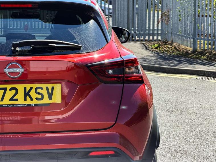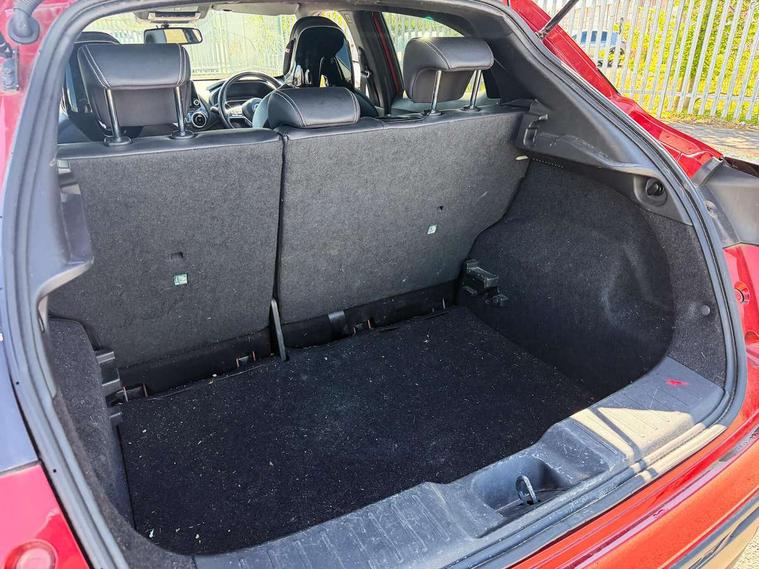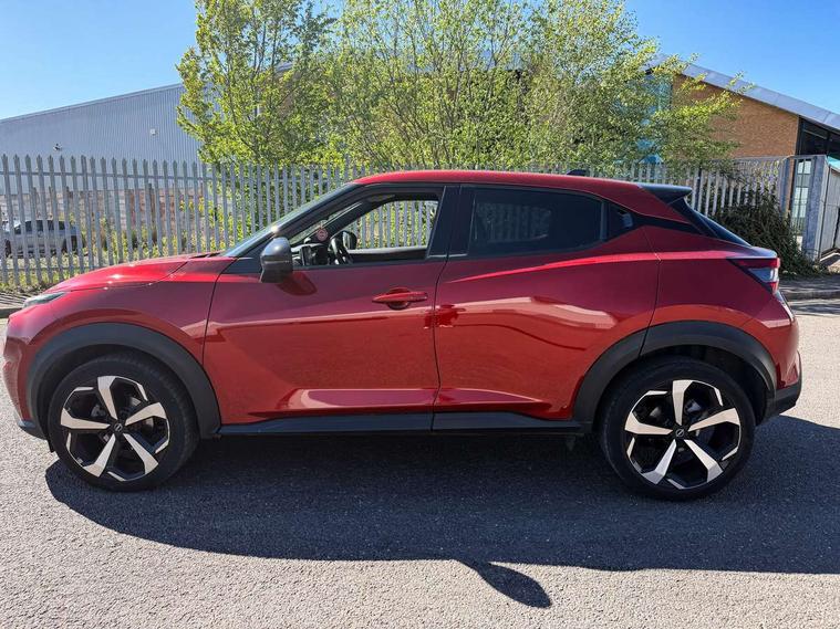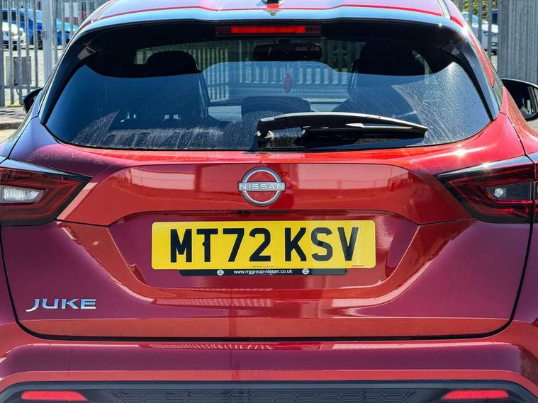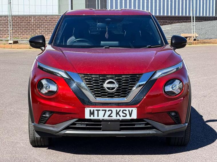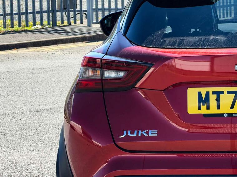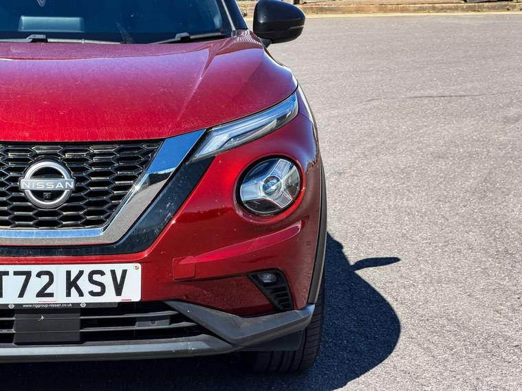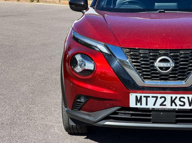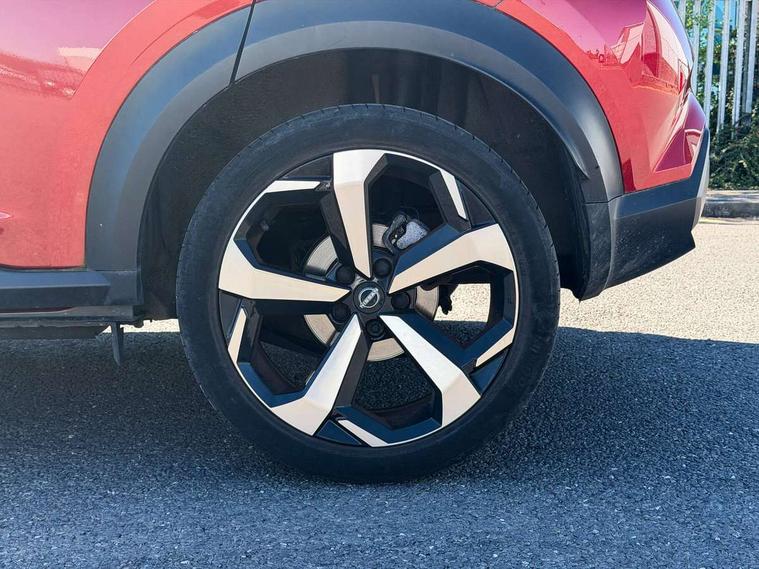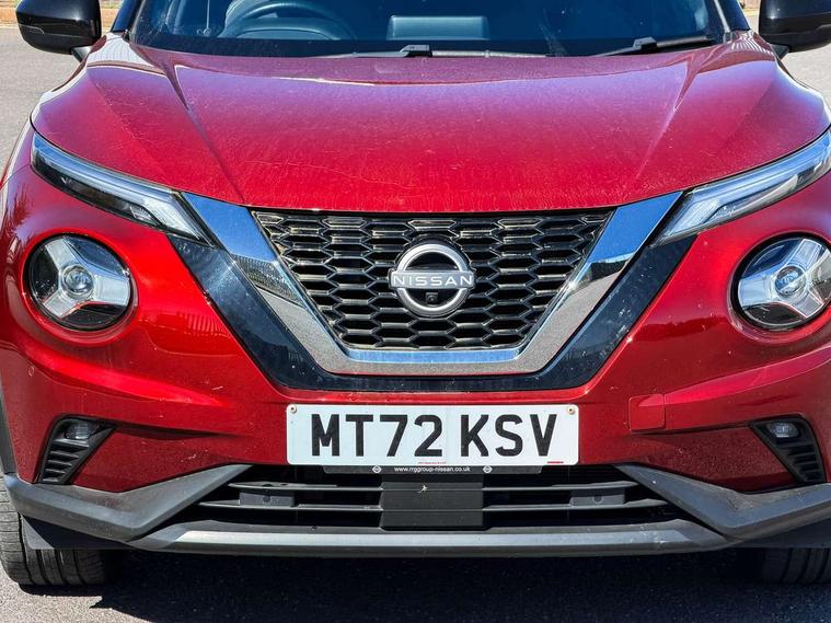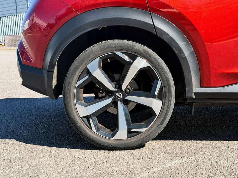 7" full colour TFT screen combimeter, Apple CarPlay and Google Android auto, Drive modes select (Eco, normal and sport), Emergency and breakdown call, Front parking sensor, Idle start/stop system, Intelligent lane intervention, Lane departure warning system, Nissan connect 8" touch screen entertainment system, Nissan connect nav with TomTom traffic, Nissan connect services and Wifi connection, Outside temperature sensor, Power Steering, Rear parking sensor, Traffic sign recognition, Trip computer, Voice recognition, Gasoline particulate filter, 10 Bose speakers 6 speakers and 2 headrest speakers for driver/passenger seats, Bluetooth system, USB, Aux-in and 12V socket, Bose personal sound stage control, DAB Digital radio, Rear console USB port, Auto dimming interior rear view mirror, Auto headlights, Automatic hazard signal with emergency stop signal, Body colour bumpers, Body colour door handles, Electrically adjustable door mirrors with integrated indicators, Follow me home headlights, Front and rear electric window with one touch driver window, Heated and auto folding door mirrors, High beam assist, LED daytime running lights, LED front fog lights, LED headlamps, LED rear fog lamp, LED rear lamps, Rain sensor windscreen wipers, Rear privacy glass, Rear side wing doors, Rear wiper, Thermaclear heated windscreen, Three blink turn signal, 3 height adjustable rear headrests, 3 seat bench in 2nd row, 60/40 split folding rear seat, Automatic climate control, Card holder on driver sunvisor, Door ambient lighting, Driver and passenger sliding and reclining seats, Driver seat back pocket, Driver side rear coat hanger, Driver/passenger sunvisors and vanity mirrors, Front and rear cabin lights, Front armrest, Front door pockets with bottle holders, Front head restraints, Front passenger isofix child seat anchorage point, Front/rear passenger grab handles, Gear console ambient circle lighting, Grey synthetic leather kneepad, Heated front seats, Height adjustable driver's seat, Height adjustable passenger seat, Internal chrome door handles, Leather gearshift knob, Leather steering wheel, Luggage board, Luggage space lighting, Monoform sporty seats, Multifunction steering wheel, Passenger seat back pocket, Rear door bottle holders, Single front passenger seat, Synthetic leather upholstery, Telescopic steering wheel adjustment, Two cupholders in front centre console, Two rear isofix child seat anchorage points with top tether, Welcome light and console tray ambient lighting, Advanced safety shield pack - Juke, ABS with EBD and brake assist, Active ride control, Active Trace Control, Driver and passenger airbags, Driver and passenger side airbags, Electric handbrake with auto hold function, Electronic Stability Programme (ESP), Front and rear curtain airbags, Height adjustable seatbelts, Hill start assist, Intelligent emergency braking with pedestrian and cyclist recognition, Rear door child safety locks, Seatbelt reminder for driver/front passenger and rear seats, Single tone horn, Three 3 point rear seatbelts, Traction control, Tyre pressure monitoring system, VDC Dynamic Vehicle Control, Ventilated rear brake discs, Alarm, Immobiliser, Intelligent key and start push button with walk away lock and approach unlock functions, Remote central locking,