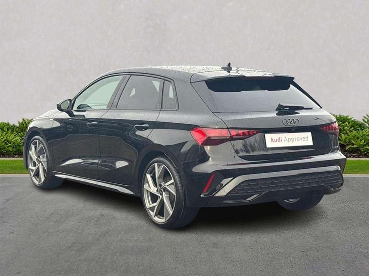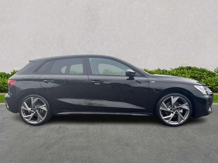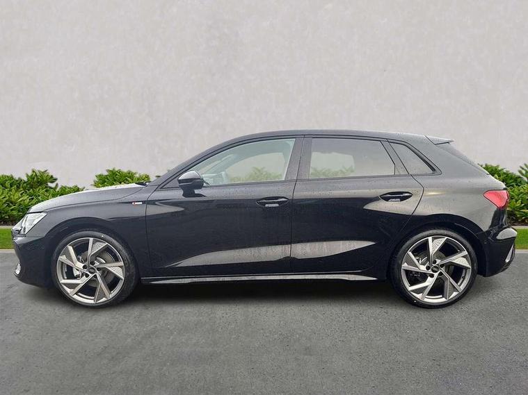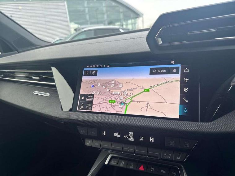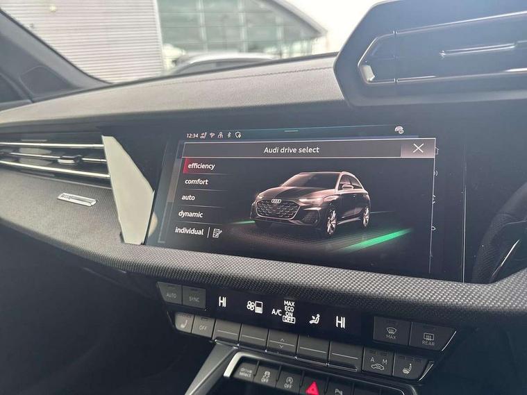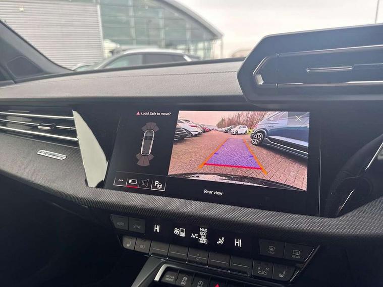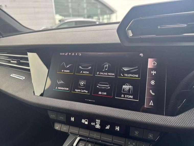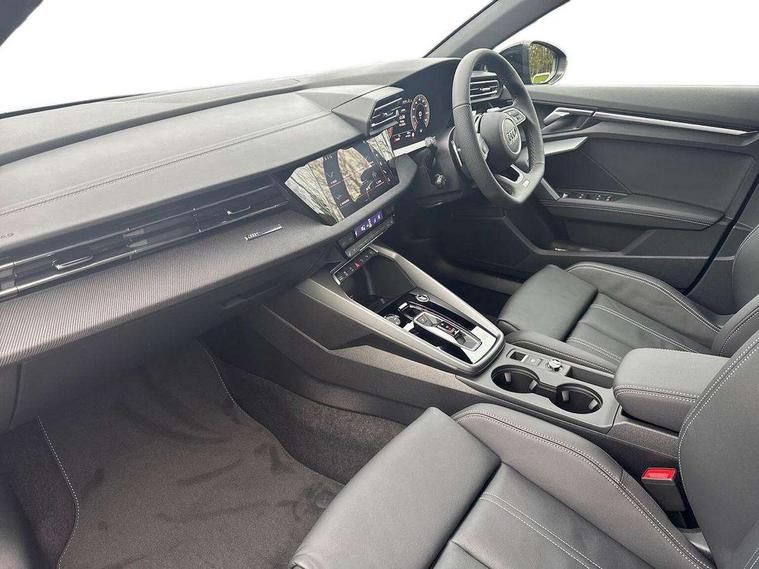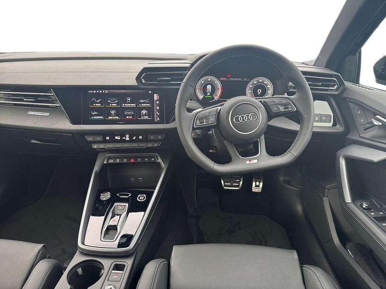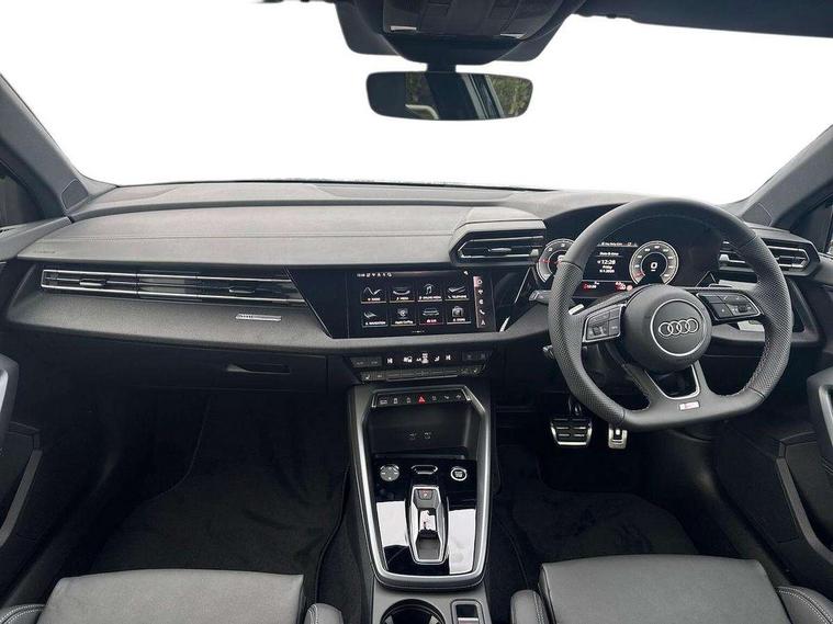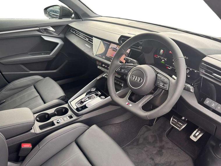 Adaptive cruise control (ACC), Adjustable speed limiter, Audi drive select (Auto, Comfort, Dynamic, Efficiency and Individual), Audi virtual cockpit plus - 12.3" full HD resolution dynamic digital instrument cluster, Automatic start/stop system with recuperation, Bluetooth interface, Camera based traffic sign recognition, Collision avoidance assistant, Driver attention and fatigue detection, e-Call (emergency call), Electromechanical power speed sensitive steering, Emergency assist, Intersection assist, Lane departure warning system, MMI Navigation Plus with high resolution 10.1" colour touch screen display, Park Assist with parking system Plus, Reversing camera, Service indicator, Smartphone interface with app store includes wireless Apple carplay, Android auto and Amazon alexa integration, Trip computer, Voice control system with natural language interaction, Diesel particulate filter, Sports suspension, Audi Phonebox light with wireless charging, Audi sound system - 10 loudspeakers including centre loudspeaker and subwoofer, DAB Digital radio, USB ports with charging function in the rear, Acoustic glass windscreen, All weather light, Anthracite grey Audi rings (front and rear), Audi beam uses LEDs to project the Audi logo onto the ground as you exit your A3, Auto dimming frameless rear view mirror, Automatic dynamic range control, Black accents front and rear bumpers, Black accents in the area of the Audi single frame grille, Black accents window trims strips, Dipped beam, main beam, position light and turning light, Electrically adjustable/heated/folding/auto dimming door mirrors with integrated LED indications + kerb view function for passenger side, Exterior model badging, Front and rear side air inlets in grained matt black with dark liquid chrome frame, Front electric windows, Front radiator grill in high gloss dark chrome, Heat insulating glass windscreen, Illuminated door sills with aluminium inserts at the front with S logo, Intersection light, Invisible tailpipe, LED 3rd brake light, LED brake lights, LED daytime running x3, LED headlights with LED rear lights and dynamic rear indicators, LED rear number plate lights, LED reverse light, LED tail lights, Light and rain sensors, Manoeuvring light, Motorway light, Privacy glass - dark tinted rear window, rear door and side windows, Rear diffuser and grill in grained matt black with inlay in dark liquid chrome, Rear electric windows, Rear side wing doors, Rear wiper, S roof spoiler, Side sill trim in dark liquid chrome, Static cornering light, 12V socket and storage compartment in front centre console, 3 seat bench in 2nd row, 3 spoke flat bottomed leather multifunction sport steering wheel with gear shift paddles, 3-zone deluxe automatic air conditioning, 4 way electrically adjustable lumbar support for driver and front passenger, 40/20/40 split folding rear seat bench, Black cloth headlining, Black front and rear floor mats, Front and rear centre armrest in artificial leather with contrasting stitching on armrests and instrument panel, Front and rear headrests, Heated front seats, Height and reach adjustable steering wheel, i-Size child seat mounting on the front passenger side and outer rear seats, i-Size and top tether on the outer rear seats, Manual boot compartment lid, Manually adjustable front seats, Rear centre armrest with cupholder, S badging on the steering wheel, Seat side bolsters, Single front passenger seat, Stainless steel pedals and front footrest in black, Twin leather upholstery with front sports seats S embossed logo, Aluminium interior elements pack - A3, 3x3 point rear seat belts, Driver and front passenger airbag with passenger airbag deactivation, Electronic Stabilisation Control (ESC) including ABS, ASR and EDL, First aid kit with warning triangle and 2 safety vests, Front side airbags with head airbags and interaction airbag, Hill hold assist, Pre-sense front with pedestrian and cyclist detection, Seatbelt monitoring, Tyre pressure loss indicator, Anti theft alarm, Anti-theft wheel bolts, Electronically operated child locks, Immobiliser, Black dashboard,