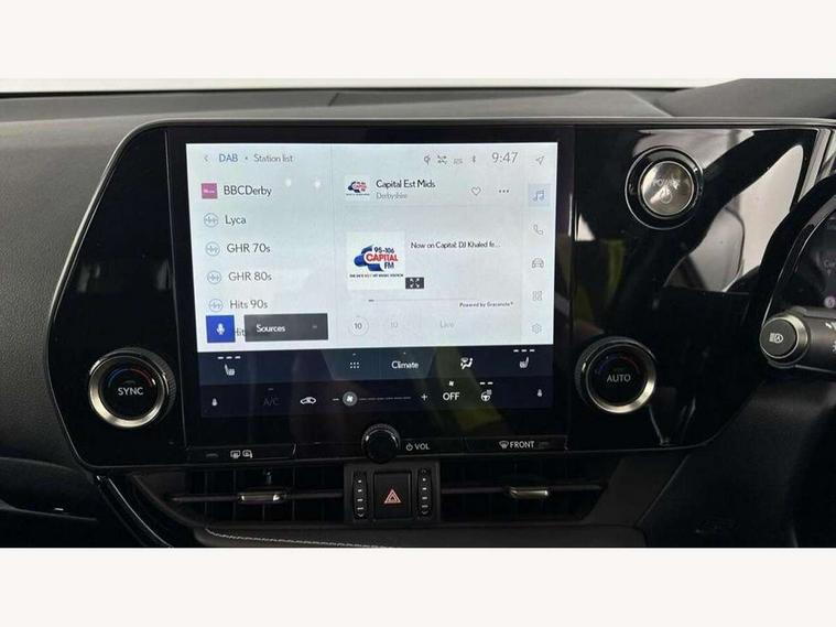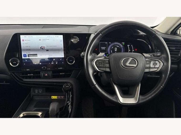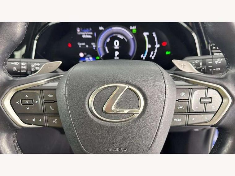 4 driving modes EV/Eco/Normal/Sport, 7" display in instrument binnacle, Blind spot monitoring with rear cross traffic alert, Bluetooth telephone connectivity, eCall emergency system, Electric speed sensitive power steering, Intelligent parking sensors - 4 front and 4 rear, Lane change flasher function, Lexus link connect - Cloud based navigation, cloud based voice assistant, always online and 9.8" VGA touchscreen, Push button starter, Reversing camera with back guidelines, Service interval indicator, Wireless Apple CarPlay and wired Android Auto, Wireless Smartphone charger, 6.6 kW onboard charger, All Wheel Drive (AWD), Hybrid automatic transmission, Vehicle Dynamics Integrated Management (VDIM), Vehicle Stability Control (VSC), 10 speakers, 4 USB ports - 2 front, one USB C, 2 rear USB C, DAB Digital radio, Auto dimming interior rear view mirror, Automatic headlights, Bi LED headlights, Double hidden exhaust pipes, Front and rear one touch power windows, with anti-jam protection, Heated, auto-folding, auto-dimming outside mirrors with reverse tilt function and turn indicators, Illuminated door handles with puddle light, LED brake lights and rear lights with emergency brake signal, LED daytime running lights, LED front fog lights, LED Indicators, Power back door with kick sensor, Privacy glass, rear doors and tailgate, Rain sensor windscreen wipers, Rear side wing doors, Rear wiper, Roof rails, 12V accessory port centre console and luggage compartment, 2 cupholders in front centre console, 2 way electrical lumbar adjustment for driver, 2 x fixed shopping bag hooks in boot, 2 x sun visors with vanity mirror and lamp, 3 seat bench in 2nd row, 4 x tie down hooks in the boot, 6 way manually adjustable front seats, 60/40 split folding rear seat, Adjustable rear seat backrest, Card holder installed in driver and passengers sun visors, Centre armrest with storage box, Dual climate control air conditioning system, Front and rear head restraints, Front and rear textile carpet mats, Front passenger seat, Heated front seats, Heated steering wheel, Leather gear lever, LED interior illumination, Power adjustable leather steering wheel with paddle shifts, Rear centre armrest with 2 cupholders, Tahara leather upholstery, Whiplash Injury Lessening (WIL) feature (active headrest) for seats, 2 x Isofix child rear seat restraints, 3 point ELR front seatbelts with pretensioners, 3x3 point rear seat belts, ABS, Adjustable seat belt anchor points, Driver and front passenger 2 stage airbag, Driver/front passenger side airbags, Drivers knee airbag, E-Latch with safe exit assist, EBD + Brake Assist, ECB (Electronically Controlled Brake System), Electronic parking brake, Front and rear curtain shield airbags, Front center airbag, Front passenger seat cushion airbag, Hill assist control, Lexus safety system - dynamic radar cruise control, pre collision system day and night, lane tracing assist, road sign, automatic high beam, OTA, Manual rear child locks, Passenger airbag cut-off device, Traction control, Tyre pressure warning, 2 x remote key fobs, Anti-theft system with alarm, intrusion sensor, glass breakage sensor, tilt sensor and engine immobiliser, Locking wheel nuts, Smart keyless entry, Speed sensitive auto door locking, Two motion door lock with double lock, VIN Window etching, 3D prism black Inlay, Tyre repair kit,