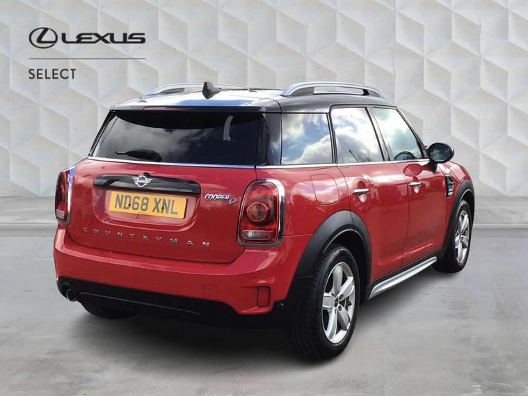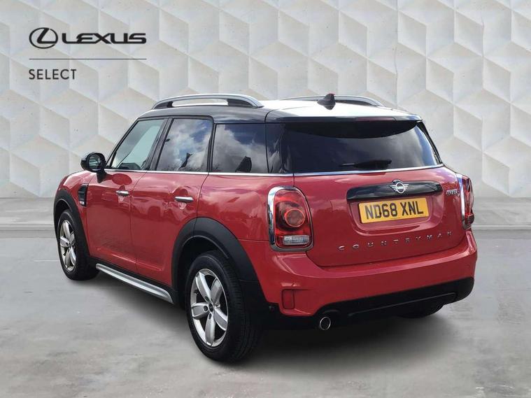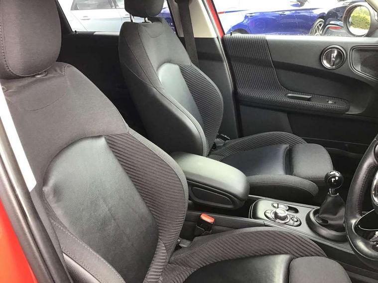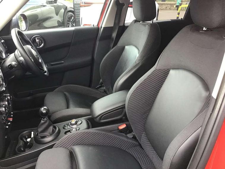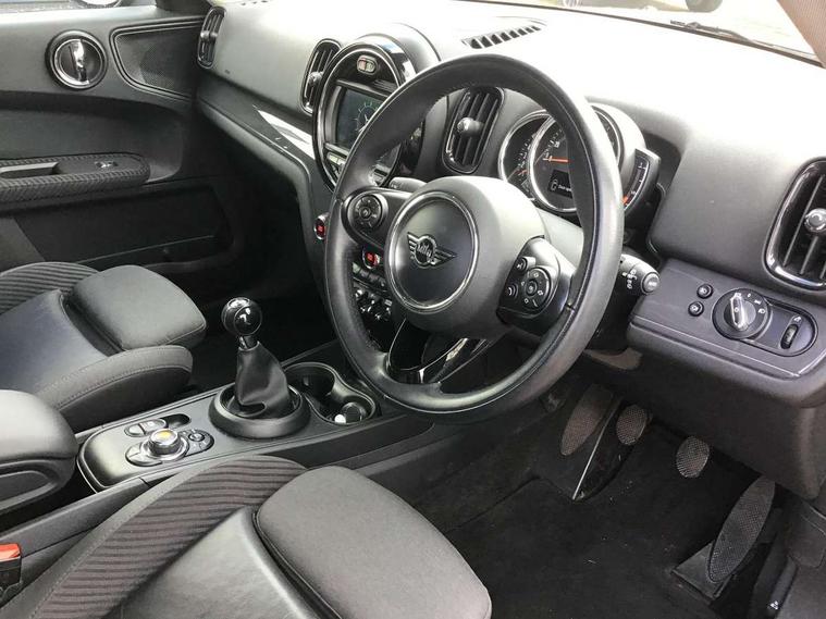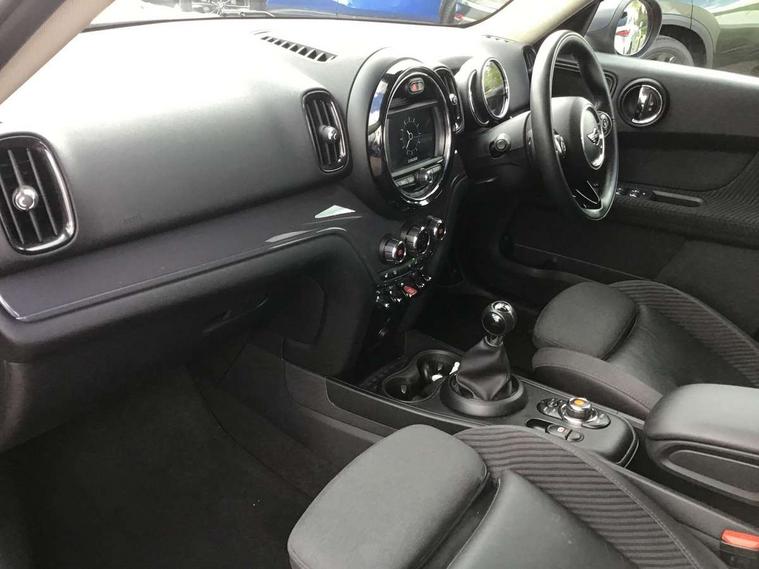 Apple CarPlay preparation, Brake pad wear indicator warning light, Central display with LED ring and 6.5" colour touch screen, Connected driver, DTC - Dynamic traction control, Exterior temperature gauge, Intelligent emergency call, MINI remote services, MINI TeleServices, Navigation system, On board computer, Personal Profile, Real time traffic information, Service interval indicator, Servotronic speed sensitive power steering, Diesel particulate filter, Electronic differential lock, Auxiliary input socket, DAB digital radio module, MP3 compatible radio/single CD player, Radio visual boost, Anti dazzle rear view mirror, Chrome door handles, Chrome exhaust tailpipe, Chrome headlight surround, Chrome plated radiator grille, Chrome window surround, Electric front windows + one touch + anti-pinch, Electrically adjustable door mirrors, Follow me home headlights, Green tinted glass, Heated door mirrors/heated windscreen washers, Heated rear window with automatic switch off, Metal look door sill finishers, Rain sensor including auto headlights activation, Rear wiper, Roof spoiler, White indicator lights, 12V power point front, 2 cupholders in front centre console, 4 lashing points to secure luggage, 40:20:40 split folding rear seats, Centre console storage box, Chrome interior door handles, Driver/passenger sunvisors, Front and rear headrests, Front interior light, Front passenger grab handle, Front seat backrest storage nets, Heater with recirculation function, Height/reach adjust steering wheel, Isofix rear child seat preparation, Luggage compartment lighting, Multifunction steering wheel, Rear grab handles, Sensatec gearshift and handbrake, Storage compartments in doors, Toolkit in luggage compartment, Interior lights pack - Countryman, MINI Excitement Pack - Countryman, 3 point automatic seatbelts, 3 point seatbelts on all rear seats, ABS, Cornering brake control (CBC), Crash Sensor - activates hazard/interior lighting + unlocks doors, Driver and passenger airbags, Driver and passenger side airbags, DSC - Dynamic Stability Control, Electronic brake force distribution, Electronic parking brake, Front curtain airbags, Front passenger airbag deactivation, Fuel cut off safety device, Hill start assist, Pyrotechnically pre-tensioned front seatbelts, Tyre pressure warning, Automatic door locking, Keyless start, Locking wheel bolts, RF remote control central locking, Second remote key, Thatcham category 1 alarm + immobiliser,