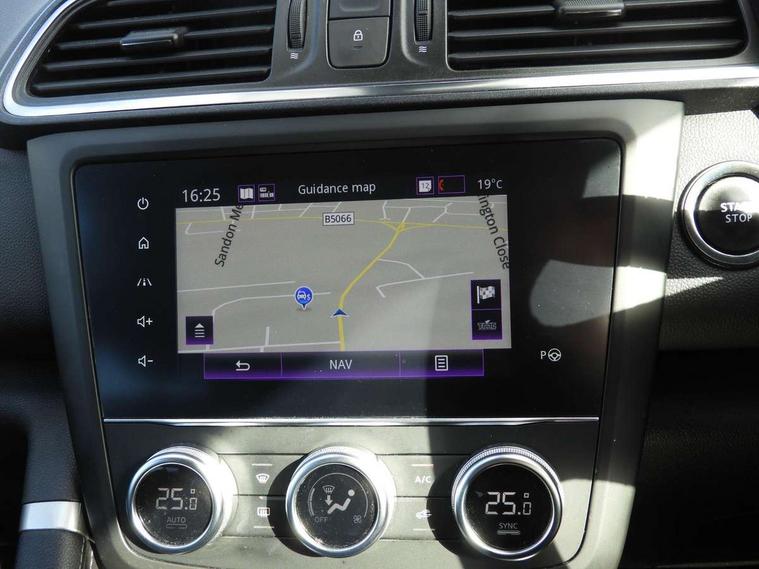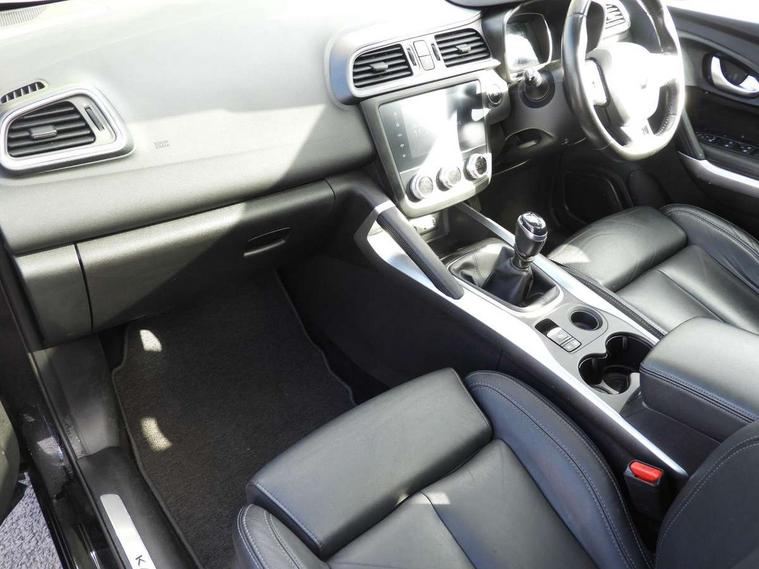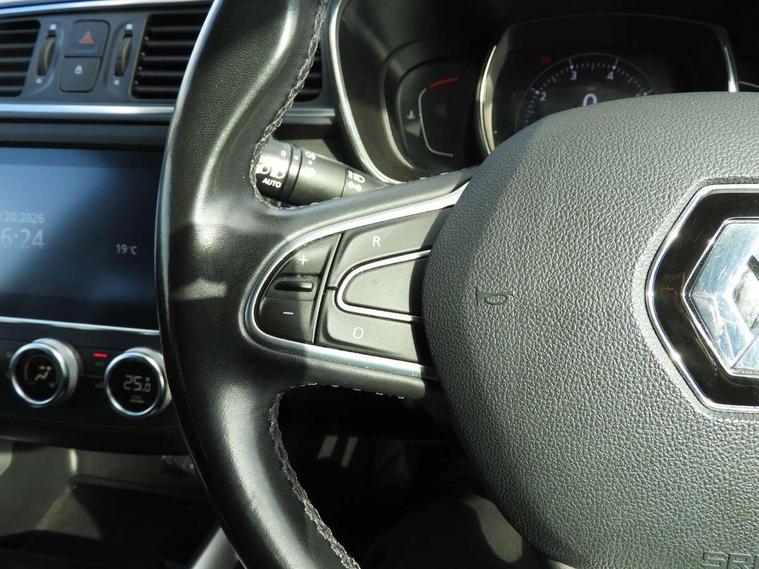 Blind spot warning with lateral sensors, Cruise control + speed limiter, Digital speedometer with 7 TFT screen, Door/boot open warning light, Eco mode, Exterior temperature indicator, Gear change indicator, Hands free parking system with 360 degree parking sensors, Lane departure warning system, Low fuel level warning light, Multi function trip computer, Oil level gauge, Over speed and traffic sign recognition, PAS, R-Link 2 Multimedia system + 7" touchscreen, TomTom + West European Map, DAB/FM/AM radio, bluetooth + hands free, USB/AUX, voice control, Rev counter, Smartphone integration, Bose sound system with 7 speakers/digital amplifier + 1 Subwoofer, Fingertip controls for audio system, Two rear USB sockets, Adamantium front and rear skid plates, Auto dimming rear view mirror, Automatic headlights, Automatic high/low beam, Automatic windscreen wipers with variable speed adjustment, Body colour door handles, Body coloured bumpers, Body coloured door mirrors, Bodyside mouldings with chrome inserts, Chrome fog light surround, Chrome front grille, Chrome roof rails, Chrome window surround, Electric adjustable/heated/folding door mirrors, Extra tinted glass in rear windows and tailgate, Fixed panoramic glass sunroof, Flank protection, Front and rear electric windows, Front and rear towing rings, Heated rear windscreen, Integrated C shape indicators with side repeaters, Integrated fuel filler cap, LED daytime running lights, LED front fog lamps with cornering function, LED high and low beam headlights with LED turn indicators, Rear wiper, Shark fin antenna, Side and boot kick plates, 12v socket in front, 3 height adjustable rear headrests, 3 seat rear bench, 60/40 split folding rear seat, Accessory power point, Adjustable dashboard illumination, Air recirculation system, Centre rear armrest with cup holder, Driver and front passenger seat cushion extension, Driver sunblind with illuminated mirror and ticket holder, Driver's seat with lumbar adjustment, Driver/passenger reading lights, Dual zone automatic climate control, Easy life quick folding rear seat, Electric adjust driver's seat, Front courtesy lights, Front footwell illumination, Front/rear floor mats, Heated front seats, Height adjustable front headrests, Height adjustable passenger seat, Height/reach adjust steering wheel, Illuminated boot, Illuminated centre console, ISOFIX child seat anchorage points attached on outer rear seats, Leather steering wheel, Multi positional boot floor, Pollen filter, Rear courtesy lights, Rear passenger air vents, Sliding front centre armrest, Storage glovebox, ABS/EBD, Advanced emergency braking system, Driver/passenger 2 stage auto adaptive airbags, Electronic parking brake, ESP with ASR and UCL (understeer control logical), Front and rear curtain airbags, Front lateral airbags, Front seat belts warning, Height adjustable front seatbelts with double pretensioners, Hill start assist, Passenger airbag deactivation system, Rear seatbelt warning indicator, Side impact protection, Three point rear center seatbelt, Traction control, Tyre pressure monitor, 3 Button retractable key, Anti-drill door locks/ignition barrel, Deadlocks, Insurance approved Cat 1 alarm system, Insurance Approved Immobiliser, Key card hands free with walk away lock function, RAID (Renault Anti-Intruder Device) with automatic door locking, Remote central locking, 19" Poseidon diamond cut alloy wheels,