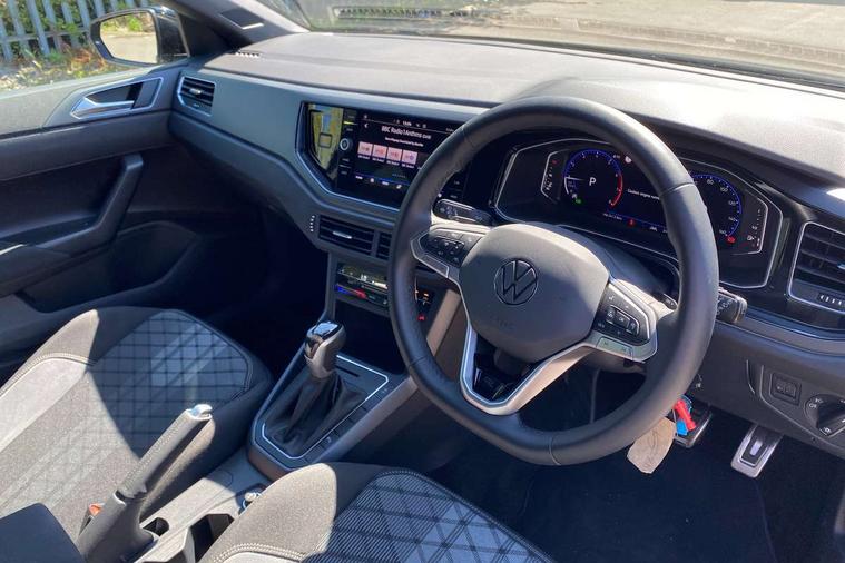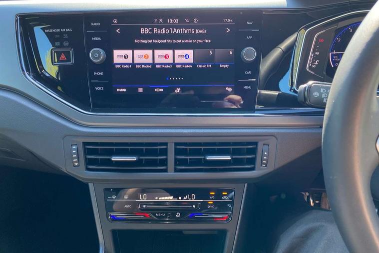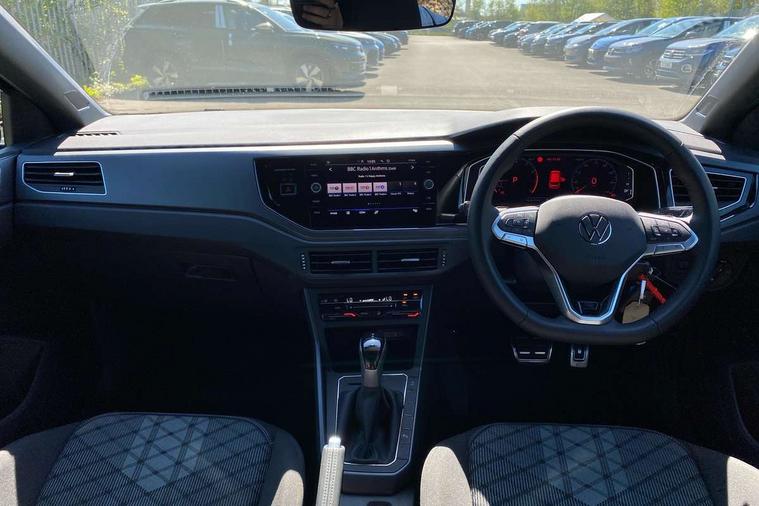Adaptive cruise control with follow-to-stop and speed limiter, Advanced driver attention and drowsiness monitor, Bluetooth mobile phone interface, Digital Cockpit Pro with 10.25" Display, Dynamic road sign display, Emergency call service, Mobile phone preparation with inductive charging function, Multifunction camera, Power assisted speed sensitive steering, Preparation for We connect and We connect plus, Speedo and rev counter, electronic odometer, trip, service interval display and fuel gauge, Standard rear axle, Travel Assist - Lane keeping system and traffic jam assist, Travel assist including emergency assist, Trip computer, Warning signal and warning light for front and rear seatbelts not fastened, Washer fluid level indicator, Wireless app connect, Front wheel drive, Rear shock absorpion, Start-stop system with battery regeneration (recuperation - energy recovery during braking), DAB Digital radio, Diversity antenna for FM reception, Body colour bumpers, Body colour door handles, Electric front windows, Front scuff plates with R-Line logo, Heat insulating glass windscreen, Power folding adjustable/heated exterior mirrors and front passenger exterior mirror lowering function, Rear electric windows, Rear fog light, Rear side wing doors, Rear windscreen washer and wiper with interval delay, Third brake light, 12V power socket in centre console, 2 USB-C ports in the front, 2 USB-C charging sockets on the center console in the rear, 3 rear head restraints, 60/40 split folding rear seat and rear seat bench not split, Air care climatronic air conditoning system with active combination filter and 2-zone temperature control, Black roof lining, Carpet mats, front and rear, Chrome plated radiator grille inserts, air vent surrounds and light switch surrounds, Door and side trim panel, Driver and front passenger seat height adjustment, Driver/passenger sunvisors with illuminated vanity mirrors, Front centre armrest, Front footwell illumination, Front seat backrest storage pockets, Front sports comfort seats, Handbrake lever handle in leather, Headliner in recycled material, Isofix child seat preparation easy-fit (for two outer rear seats, and front passenger seat) compatible with I-size, Karoso artvelours cloth upholstery, Leather trimmed gear knob, LED interior light with switch off delay and dimmer, 2 reading lights front and rear, Luggage compartment cover, Luggage compartment floor, Luggage compartment lighting, Lumbar adjustment for front seats, Single front passenger seat, Stainless steel pedals, Standard pedal cluster, Three spoke leather wrapped multifunction steering wheel with shifting paddles, Light and sight pack - Polo R-Line/Black Edition, 3 point height adj front seatbelts + pretensioners, 3x3 point rear seatbelts, ABS, Driver and front passenger airbag with front passenger airbag deactivation, Drivers and front passengers safety optimised head restraints, ESC (Electronic stability control) + EDL (Electronic Differntial lock) and ASR (Traction control), Extended and predictive pedestrian/ cyclist protection, Front curtain and side airbags with center airbag, Front/rear disc brakes, Hill hold control, Manual child lock in rear doors, Single tone horn, Tyre pressure loss indicator, Alarm with interior protection, Anti-theft alarm system with interior monitoring, backup horn, and towing protection, Anti-theft wheel bolts, Electronic engine immobiliser, Chrome applications on rotary light, mirror adjustment, window regulator switches, outlet with frame in black, Dark grey anodised matt decorative inserts in dash and front door panels, 16" Coventry alloy wheels, Low rolling resistance tyres,
