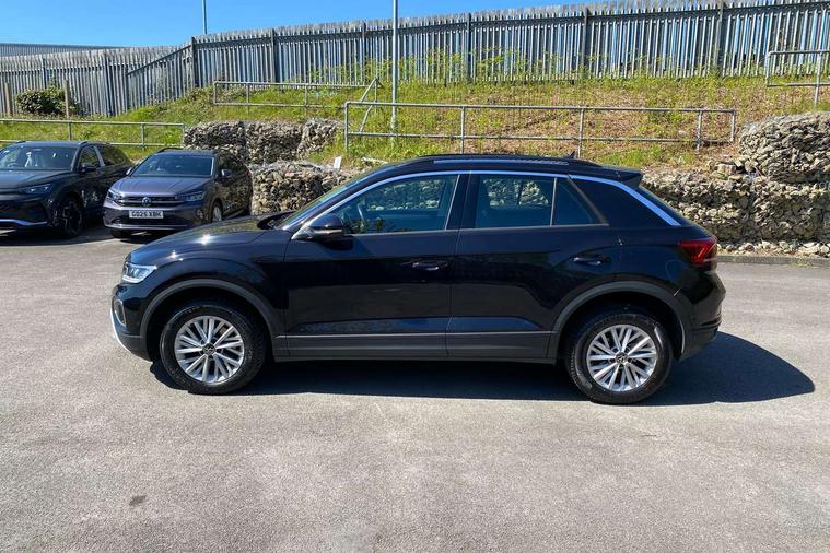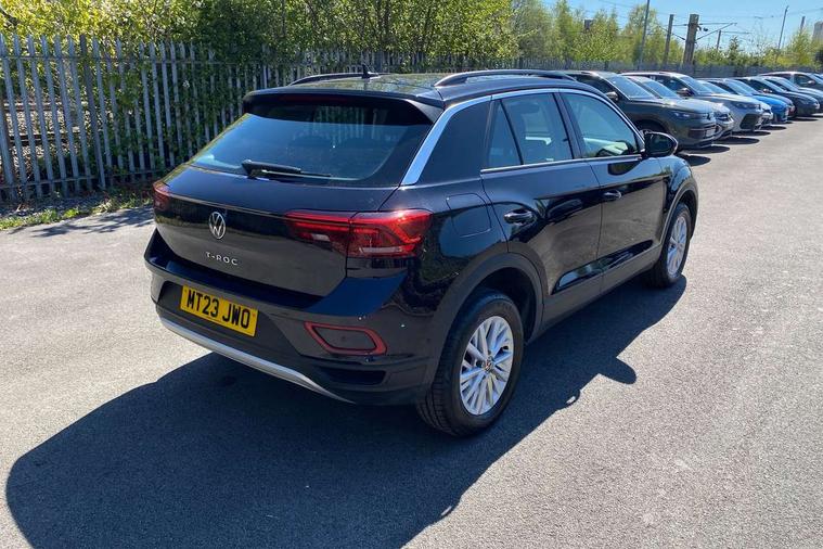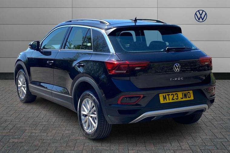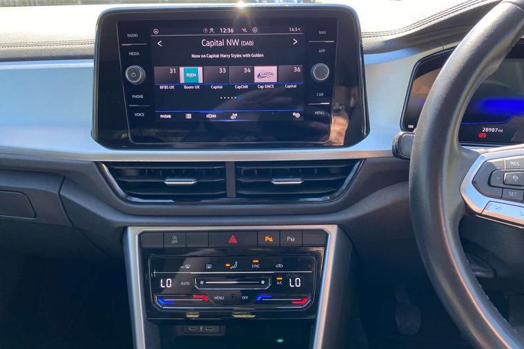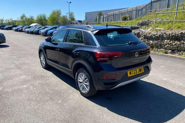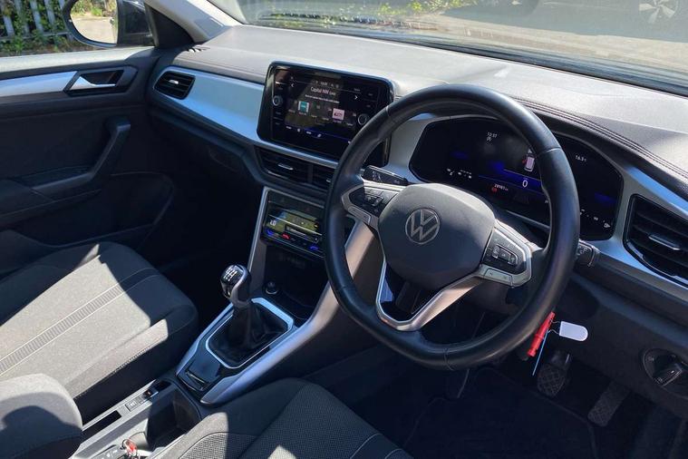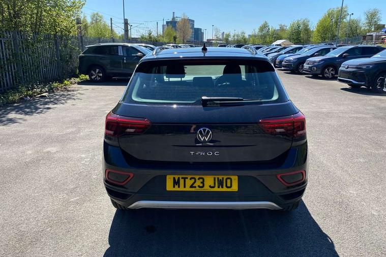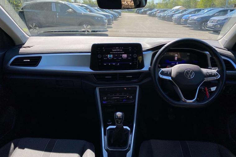 Bluetooth mobile phone interface, Driver alert system with fatigue detection, Driver tips and journey analysis, Emergency call service, Lane keeping system Lane Assist, Modified key software - reduce switch off time for key status change to Long no motion, Online services, Park assist including front and rear parking sensors, Power assisted speed sensitive steering, Service interval indicator, Tailgate/trunk lid release from outside, Think blue trainer driver tips and journey analysis, Warning sound and light for front seatbelts unfastened, Wireless app connect, Battery regeneration during braking, Front shock absorption, Rear shock absorption chassis with increased ride height, Start/stop function with battery regeneration, DAB Digital radio, Diversity antenna for FM reception, Front and rear 6 speakers, Music playback - MP3, WMA and AAC files, Premium USB cable in choice of either Apple or Android smartphone compatibility, SD card slot, Simultaneous pairing of 2 compatible mobile devices, Title and cover art display, We Connect and We Connect Plus functionality, 3rd brake light, Auto dimming interior rear view mirror, Automatic hazard lights activation under emergency braking, Automatic headlight control with LED separate daytime running lights with coming/leaving home function, Black roof rails, Body coloured bumpers and radiator grille with chrome trim and front fog lamps with chrome bezel, Body coloured exterior mirror housings and door handles, Extended roof spoiler, Exterior mirrors aspherical on driver side, convex on front passenger side, External USB type C socket and charging sockets, Front windscreen wiper with intermittent wipe and 4 position delay, Heated rear window, LED Headlights, LED rear combination lamps, LED rear number plate lights, LED tail lamp rear comination lamps, Power windows with comfort operation and circuit breaker, Rain sensor, Rear exhaust tailpipe, Rear fog light on one side and reversing lights on both sides, Rear side wing doors, Rear wash/wipe with intermittent wipe setting, Remote electrically foldable door mirrors, puddle lights and reverse activated passenger's door mirror, 12V power socket in centre console, 3 rear head restraints, 3 seat bench in 2nd row, 4 load lashing points in luggage compartment, Air care climatronic air conditoning system with active combination filter and 2-zone temperature control, Ambient lighting with mirror logo projection, Cloth upholstery, Door and side trim panel in cloth, Drawer under drivers seat, Driver/front passenger seat height adjustment, Front centre armrest, Front comfort sports seats, Front cupholders x 2, Front reading light, Instrument lighting, white adjustable panel illumination, Interior light delay, Isofix child seat preparation, Leather gearshift handle, Load-through provision with cup holder when folded down ('Unsplit rear seat bench, split folding backrest, with centre armrest), Luggage compartment lighting, Lumbar support for driver's and front passengers seat, Non-folding front passenger seat backrest, Single front passenger seat, Storage compartment in left and right luggage area, Storage compartment in rear doors, Storage compartments in driver and front passenger doors, Sunvisors with illuminated vanity mirrors, Variable boot floor, height adjustable and removable, Driver assistance pack without proactive passenger protection - T-Roc, 3 point height adj front seatbelts + pretensioners, 3 point seatbelts in outer rear with ECE label, ABS, Child locks on rear doors, Driver and front passenger airbag with front passenger airbag deactivation, Driver and front passenger safety-optimised head restraints, Drivers seatbelt reminder, Electronic parking brake, Electronic Stability Control (ESC) inc EDL (Electronic Differential Lock) and ASR (Traction Control), Front and rear passengers curtain airbag system including front side airbags, Front assist with city emergency braking and pedestrian monitoring, Front disc brakes, Front seat side impact airbags, Hill start assist, Predictive pedestrian protection, Rear disc brakes, Single tone horn, Tyre pressure loss indicator, Volkswagen roadside assistance, Alarm with interior protection, Anti-theft alarm system with interior monitoring, backup horn, and towing protection, Remote central locking with SAFELOCK, radio remote control with 2 remote control folding keys, Pewter matt decorative inserts for intrument panel, centre console and door panels at the front, Trims for alloy wheels,