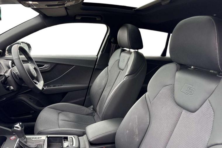 3D map display, Audi connect navigation and infotainment includes innovative services, Audi connect remote and control connects your vehicle to your smartphone, Audi drive select: S tronic - power steering assistance + engine + gearshift (modes: comfort, auto, dynamic, efficiency, individual), Audi smartphone interface - Apple carplay/Android Auto, USB connect, 2xSDXC card readers, voice control for navi, telephone, music and 3rd party apps, Audi virtual cockpit, Automatic start/stop system with recuperation, Bluetooth interface includes bluetooth audio streaming, Camera based traffic sign recognition, Cruise control, Distraction and Fatigue warning, E-call, Instrument dials with S logo, Jukebox hard drive memory for music (10GB), Lane departure warning, MMI navigation plus with 8.8" touchscreen, Natural voice recognition, Power operated tailgate, Progressive steering, Quattro all wheel drive, S sport suspension lowered by 20mm, DAB Digital radio, USB type C port, Audi beam, Auto dimming rear view mirror, Black window trims, C-Pillar blade in Brilliant black, Electrically adjustable, folding, auto dimming and heated door mirrors with integrated LED side indicators, Exterior mirror caps in Brilliant black, Front windscreen with grey tinted sunband, LED daytime running lights, LED headlights with dipped beam, high beam, position lights, indicators, LED rear lights, LED third brake light, Privacy glass - dark tinted rear and rear side windows from B-pillar backwards, Quattro decals on rear side flank, Rear side wing doors, Rear wiper, S design body styling - SQ2 front bumper, S design underbody protection, SQ2 rear diffuser, S design radiator grille with horizontal struts and SQ2 logo, S specific dual-branch black tailpipes, with twin tailpipes on both the left and right in black, Sport bumpers in manhattan grey, Variable front intermittent wipers, Wheel arch trims in manhattan grey, 12V socket in front, 3 seat bench in 2nd row, 3 spoke flat bottom multi-fun leather sport steering with gear shift paddle and S badge grip in perforated leather with contrast stitch in rock grey, 4-way electric lumbar support for front seats including manual seat height adjustment for both front seats, 60/40 split folding rear seat bench, Black carpets, Black cloth headlining, Dual zone electronic climate control, Front and rear head restraints, Front centre armrest, Front sport seats, Front/rear floor mats, Height/reach adjust steering wheel, Illuminated door sill trims with S logo, ISOFIX child seat mounting in front passenger and rear outer seats, Single front passenger seat, Stainless steel pedals, Black styling pack - Q2, Extended interior upholstery pack - SQ2, LED interior lighting pack - Q2, 3x3 point rear seatbelts, 6 airbags - Front, curtain and front side airbags, Brake calipers painted black with S logo at the front, Electromechanical parking brake, Electronic stabilisation control including ABS, ASR and EDL, Front passenger airbag deactivation, Hill hold assist, Pre-sense front with pedestrian recognition, S model enhanced braking system, Seatbelt monitoring, Tyre pressure warning light with visual and acoustic warning, Warning triangle and first aid kit, Anti theft wheel bolts, Electronically operated child locks, Remote central door locking, Thatcham category 1 alarm, Aluminium interior element, Black dashboard, Gloss black centre console, Matt brushed aluminium trim inlays, Tool kit,