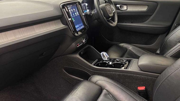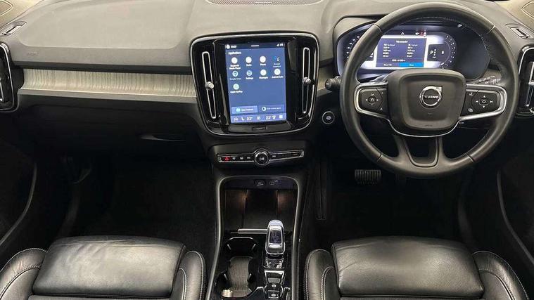 12.3" Progressive Driver Display, 360 degree surround view parking camera with side proximity sensors, 9" centre console portrait touch screen, Adjustable steering wheel force, Bluetooth hands free telephone kit, E-call, Front park assist, Google automatic services - Nav with google maps, apple carplay/android auto, voice recognition with google assistant, Hands free power tailgate, Lane keep assist with driver alert control, Oncoming Lane Mitigation, Rear park assist, Speed limiter, Speed sensitive steering, Wireless/Inductive Mobile Phone Charging, Dynamic chassis, DAB Digital radio, Premium Sound by Harman Kardon, Dolby Pro Logic II Surround Sound, Dirac Unison, 12 speakers/600W and subwoofer, Steering wheel mounted remote controls, Active bending pixel LED headlights with adaptive shadow technology, Active high beam incorporating daytime running lights, Adaptive brake lights with high level LED brake lights, Auto dimming interior mirror, Automatic headlamp levelling, Dark tinted windows for rear door side windows and cargo compartment, Front aluminium tread plates, Front and rear electric windows, Headlight cleaning system, High gloss black front and rear skid plate, High gloss black mesh front grille with high gloss black surround, High gloss black window trim, Home safe and approach lighting, Integrated roof rails in high gloss black, LED front fog lights, Power glass tilt and slide panoramic sunroof with sun curtain, Puddle lights, Rain sensor with automatic windscreen wiper activation, Rear side wing doors, Rear wiper, Roof antenna, Roof spoiler, Visible VIN plate, 12V socket in front tunnel console and luggage compartment, 2-Zone electronic climate control with CleanZone air quality system and pollen filter, 3 seat bench in 2nd row, 3 Spoke tailored steering wheel with chrome trim, 60/40 versatile split folding rear seat, A-pillar parking ticket holder, Ambient front door and instrumental panel lighting, Centre console cupholders and storage, Flexible load floor and grocery bag holder, Floor mats, Front door pocket and front cupholder illumination, Front footwell illumination, Front headrests, Front reading light and theatre lighting, Front seat cushion extensions, Front tunnel pocket, Glovebox bag hook, Heated front seats, Height adjustable passenger seat, Height/reach adjustable steering column, High gloss centre tunnel deco, Illuminated glovebox, Illuminated luggage compartment, Illuminated tailgate, Illuminated vanity mirrors, Integrated waste bin, Isofix attachments on outer rear seats, Load protection net, Multi directional lumbar support, Power driver seat with memory + exterior mirrors memory, Power folding rear headrests, Power passenger seat, Rear armrest / integral cup holders / storage tray, Rear reading and courtesy lights, Single front passenger seat, Underfloor cargo storage, Climate pack without heated front seats - XC40, Driver assist pack - XC40, 3x3 point rear seatbelts, City safety with steering support with Pedestrian + cyclist + front collision warning with full auto brake and rear auto brake, Drivers knee airbag, Dual stage driver/passenger airbags, Electronic parking brake with auto hold, First aid kit, Front and outer rear seatbelt reminder and pretensioners, Front seats SIPS airbags, Hill descent control, Hill start assist, Inflatable curtain, Passenger airbag cut-off device, Power child locks on rear doors, Road sign information display, Run off Road Mitigation, Run off Road Protection, SIPS (Side Impact Protection System), Slippery road and hazard light alert, Stability and Traction Control with Spin control, Engine Drag Control and Corner Traction Control, Tyre pressure monitoring system, Vehicle deceleration control with Anti-lock Brake System, Electronic Brake Distribution and Emergency Brake Assist, Warning triangle, WHIPS whiplash protection system - front, Anti-theft alarm including immobiliser/volume sensor + level sensor, Key integrated remote control central locking + fuel flap with deadlocking system and auto open/close power windows, Keyless drive includes keyless entry and keyless start, Locking wheel nuts,
