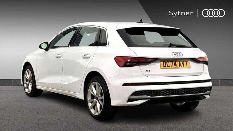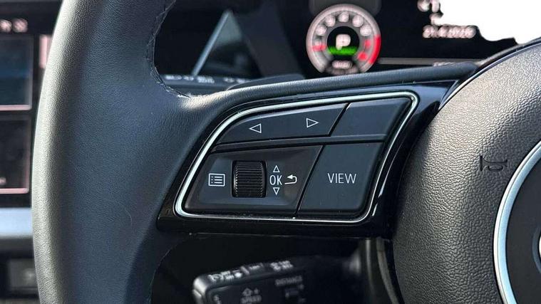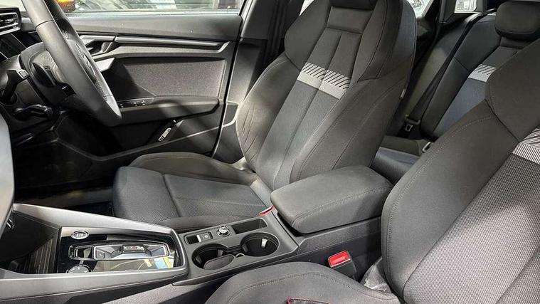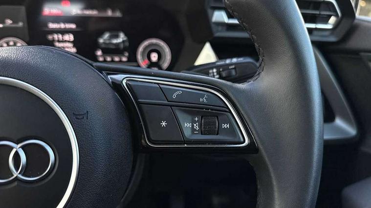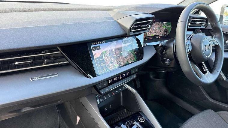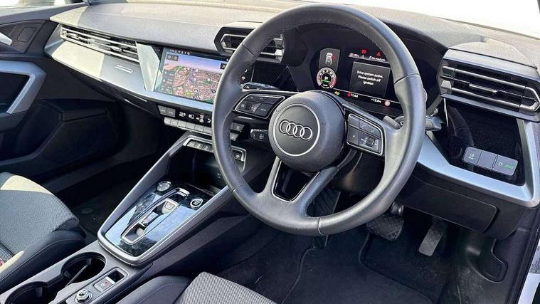 Adjustable speed limiter, Audi drive select, Audi smartphone interface with app store includes wireless Apple carplay, Android auto and Amazon alexa integration, Audi virtual cockpit plus - 12.3" full HD resolution dynamic digital instrument cluster, Automatic start/stop system with recuperation, Bluetooth interface, Camera based traffic sign recognition, Collision avoidance assistant, Cruise control, Distraction and Fatigue warning, e-Call (emergency call), Electromechanical power speed sensitive steering, Lane departure warning system, MMI Navigation Plus with high resolution 10.1" colour touch screen display, Park Assist with parking system Plus, Service indicator, Tailgate, Trip computer, Voice control system with natural language interaction, Standard suspension, Audi Phonebox light with wireless charging, Audi sound system - 10 loudspeakers including centre loudspeaker and subwoofer, DAB Digital radio, USB ports with charging function in the rear, 3rd brake light, Acoustic glass windscreen, Aluminium window trim, Auto dimming frameless rear view mirror, Body colour exterior mirrors, Body colour roof spoiler, Electrically adjustable/heated/folding/auto dimming door mirrors with integrated LED indications + kerb view function for passenger side, Exterior model badging, Front electric windows, Front radiator grill in high gloss dark chrome, Front side air inlets in grained matt black with silver frame, Heat insulating glass windscreen, LED daytime running lights, LED headlights and halogen rear lights, Light and rain sensors, Rear diffuser and grill in grained matt black with silver frame, Rear electric windows, Rear side wing doors, Rear window, rear door windows and rear side windows in clear glass, Rear wiper, 12V socket and storage compartment in front centre console, 3 seat bench in 2nd row, 3 spoke leather multifunction steering wheel with gear shift paddles, 3-zone deluxe automatic air conditioning, 4 way electrically adjustable lumbar support for driver and front passenger, 60/40 split folding rear seat bench, Front and rear headrests, Front centre armrest, Front door sill trims with aluminium inlay, Front/rear floor mats, Heated front seats, Height and reach adjustable steering wheel, Manual boot compartment lid, Manually adjustable front seats, Routine cloth upholstery with front sports seats, Seat side bolsters, Single front passenger seat, Steel grey cloth headlining, Aluminium interior elements pack - A3 Sportback, LED interior lighting pack -A3, 3x3 point rear seat belts, Driver and front passenger airbag with passenger airbag deactivation, Electronic Stabilisation Control (ESC) including ABS, ASR and EDL, First aid kit with warning triangle and 2 safety vests, Front side airbags with head airbags and interaction airbag, Hill hold assist, Pre-sense front with pedestrian and cyclist detection, Seatbelt monitoring, Tyre pressure loss indicator, Anti theft alarm, Anti-theft wheel bolts, Electronically operated child locks, Immobiliser, Remote central locking with safelock, Inlays in volcano grey fine paint finish,