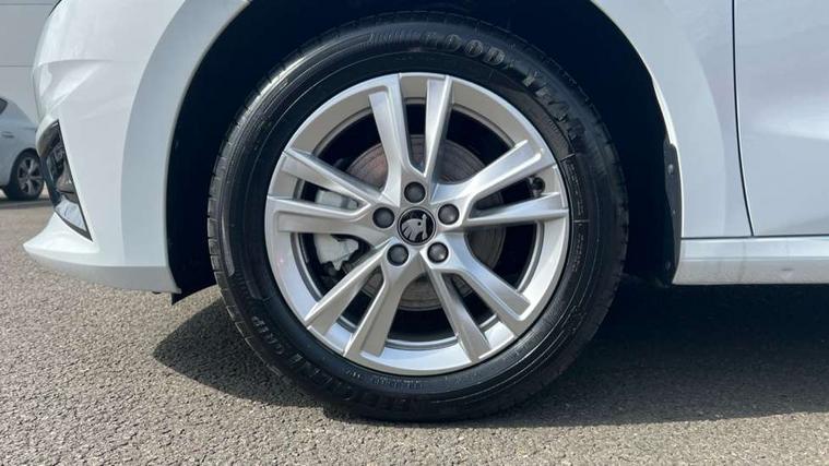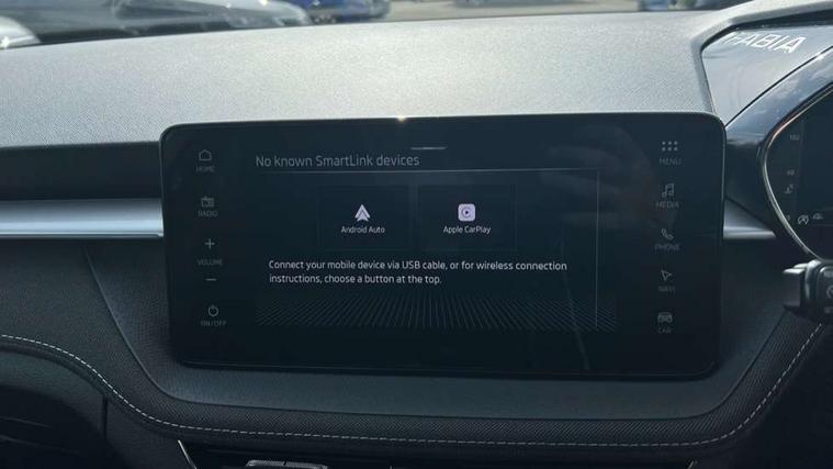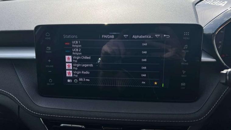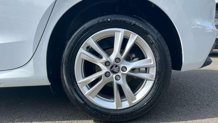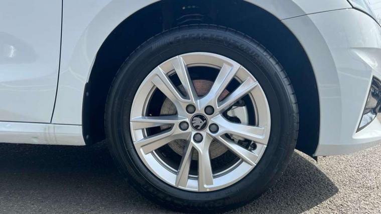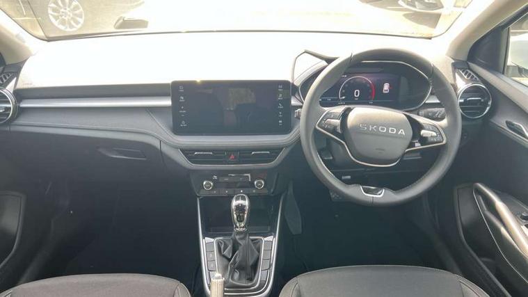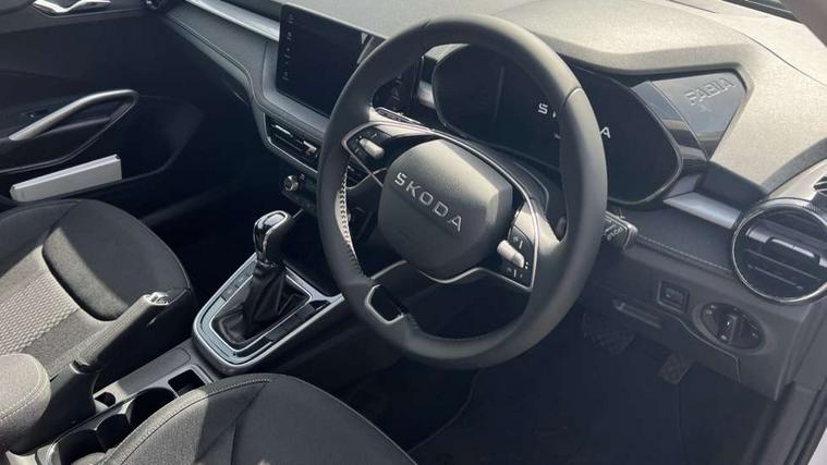 Advanced driver attention and drowsiness monitor, Bluetooth connection, Driver alert system, Electromechanical power steering, Exterior temperature gauge, Service interval indicator, Traffic sign recognition, Virtual cockpit with 10.25" colour display, Wireless SmartLink for Apple CarPlay and Android Auto, 9.2" colour display skoda navigation system with voice control and web radio, Auxiliary socket for external MP3 player, DAB digital radio reception, Auto dimming rear view mirror, Body colour door mirrors, Body coloured bumpers, Chrome window surround, Door mirror integrated indicators, Front and rear electric windows, Front window wiper intermittent control, Headlight range control - Automatic, Ice scraper in fuel cap, LED 3rd brake light, LED daytime running lights with coming and leaving home feature, LED rear lights, Privacy glass, Rear LED fog light, Rear side wing doors, Rear window wiper with washing nozzles, Roof mounted spoiler, SKODA tailgate lettering in chrome, Unique dark chrome design logo on alloy wheels, 2 LED reading lights in front and rear, 3 rear headrests, Backrest split and folding, Central console with fixed cup holder and storage box, Chrome handbrake release button, Comfort seats, Door sills with fabia badging, Dual zone air conditioning with climatronic electronic control, Fabric upholstery, Front centre armrest, Gearshift knob/handle in leather, Grain satin black interior door handles, Hand brake lever handle in leather, Height adjustable front headrests, Height adjustable front seats, Height adjustable steering wheel, ISOFIX and TopTether anchorage points to the outer rear seats, ISOFIX and TopTether on the front passenger seat, Luggage compartment lighting, Manually adjustable lumbar support in front seats, Pollen filter, Rear seat bench unsplit, Single front passenger seat, Skoda lettering on steering wheel, Storm grey headlining, Sun visors with mirror and airbag label on passenger side, Textile floor mats, Ticket holder, Ambient lighting pack - Fabia Hatchback, 3-point height adjustable front seats belts with pretensioner and force limiter, Automatic warning lights in case of crash, Driver and passengers airbag with switch off function, e-Call+, ESC including ABS, MSR, ASR, EDS, HBA and XDS, Front and rear seat belt warning, FRONT ASSIST (AEB City and AEB Inter Urban), Front side airbags, Head airbags, Hill hold control, One tone horn, Pedestrian protection, Three rear 3-points safety seat belts with pretensioner and force limiter including stop function for outer rear seat belts, Tyre pressure monitoring system, Anti-theft alarm system including immobiliser, interior monitoring, backup horn, and towing protection, Central locking with radio remote control, interior controls, SAFE function and 2 foldable keys, Chrome edged air vents, Grain satin black central console cover, Metallic grey upper decorative trim, Satin black door and side trim panel in front, Textile microsuede grey lower decorative trim with art grey stitching, Anti-theft wheel bolts protection, Super-low rolling resistance tyres,