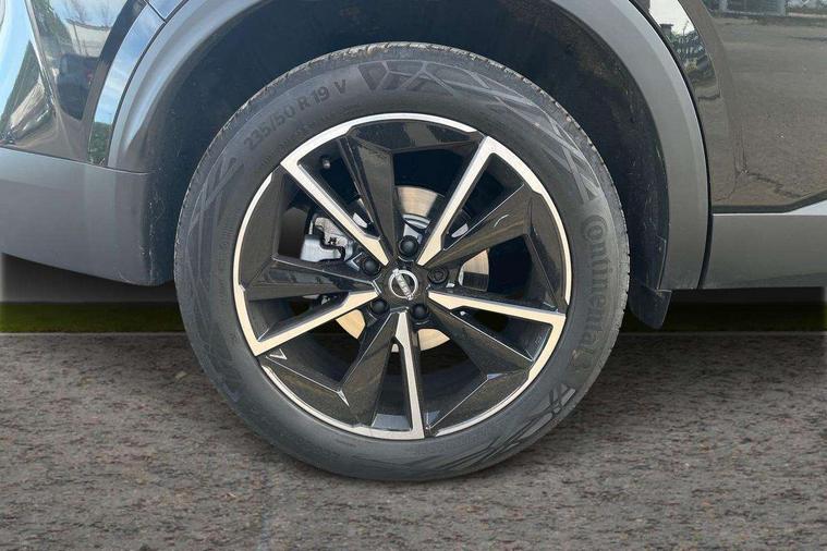 360 degree Intelligent around view monitor with moving object detection, Advanced windscreen head up display, Blind spot warning, Drive assist custom mode, Drive modes (sport, normal, eco), Driver drowsiness and attention warning, Electric speed sensitive power steering, Emergency and breakdown call, Emergency lane keep assist, Emergency Stop Signal (ESS), Engine start/stop button, Event data recorder, Front and rear parking sensors, Full Digital 12.3" TFT Digital Combimeter, Google virtual personal assistance, Hands free power tailgate, Idle stop/start system, In-car WIFI hotspot, Intelligent Cruise control (ICC), Intelligent driver alert system, Intelligent forward collision warning, Intelligent lane intervention, Intelligent speed assist, Lane departure warning system, Nissan connect 12.3 inch touchscreen infotainment system, Nissan connect navigation with google maps, Nissan connect services 2.0 (Google Automotive System), Outside temperature sensor, Propilot assist with Navi-Link, Rear cross traffic alert, Remote control services - door locks, lights, horn and car locator, Reversing detection, Traffic jam pilot, Traffic sign recognition with legal speed adjustment, Trip computer, Wireless Apple CarPlay/Android Auto, Wireless charging pad, Limited slip differential, 2 front USB-C ports, 2 rear USB-C ports, 6 speakers, AM/FM audio system with DAB, Bluetooth audio streaming, Auto dimming frameless rear view mirror, Auto rear wiper when reversing, Body coloured door handles, Bodyside mouldings, Chrome side window finisher, Electric auto folding door mirrors, Electrically adjustable and heated door mirrors with LED turn indicator, Follow me home headlights, Gloss black mirror caps, High beam assist, Intelligent auto headlights, LED 3rd brake light, LED daytime running lights, LED headlights with adaptive driving beam, LED rear lights, LED sequential turn lights, One touch front and rear electric windows with remote opening and closing, One touch passenger window, Partially body coloured bumpers, Rain sensing wipers, Rear privacy glass, Rear roof spoiler, Rear side wing doors, Rear styling plate, Reverse tilting door mirrors, Shark fin antenna, Silver roof rails, Splash free rain sensing wipers, Super RED rear LED lights, Super UV and infrared cut glass, Thermaclear heated windscreen, 12v power socket in dashboard and luggage, 3 bench rear seats in 2nd row, 3 rear headrests, 60/40 split folding rear seat bench, Chrome interior door handles, Dark headlining, Driver and passenger sunvisors with illuminated vanity mirrors, Driver seat back pocket, Dual zone automatic climate control with pollen filter, Electrically adjustable driver seat, Electrically adjustable lumbar support for driver, Fixed Glass roof with electric sunshade, Front centre console and armrest, Front cupholders, Front door with bottle holders, Heated front seats, Heated steering wheel, Height adjustable front headrests, Height adjustable passenger seat, Luggage board system, Luggage space lighting, Manual adjustable lumbar support for passenger, Multifunction steering wheel, Passenger seat back pocket, Quilted/PVC upholstery, Rear door bottle holders, Rear seat armrest with 2 cupholders, RGB ambient light (Extended area coverage), Single front passenger seat, Smooth leather steering wheel, Steering wheel gearshift paddles, Tilt/telescopic adjustable steering wheel, Two rear isofix child seat anchorage points with top tether, 3x3 point rear seatbelt pretensioners + load limiters, ABS with EBD and brake assist, Autonomous emergency braking, Child locks on rear doors, Curtain and front side, far side airbags, Driver and passenger airbags, Driver, passenger and 2nd row rear seat belt reminder, Electric handbrake with auto hold function, Front seatbelt pretensioners + load limiters, Height adjustable front seatbelts, Hill start assist, Intelligent blind spot intervention, intelligent front emergency braking, Intelligent rear automatic braking, Tyre pressure monitoring system, Vehicle dynamic control, Engine immobiliser, Intelligent key with walk away lock and approach unlock functions, Remote central door locking with deadlocking, Thatcham alarm, 19" Diamond cut alloy wheels, Tyre puncture repair kit,