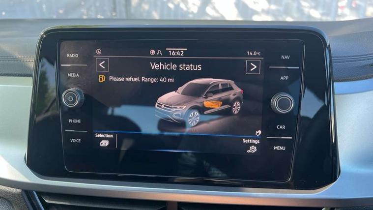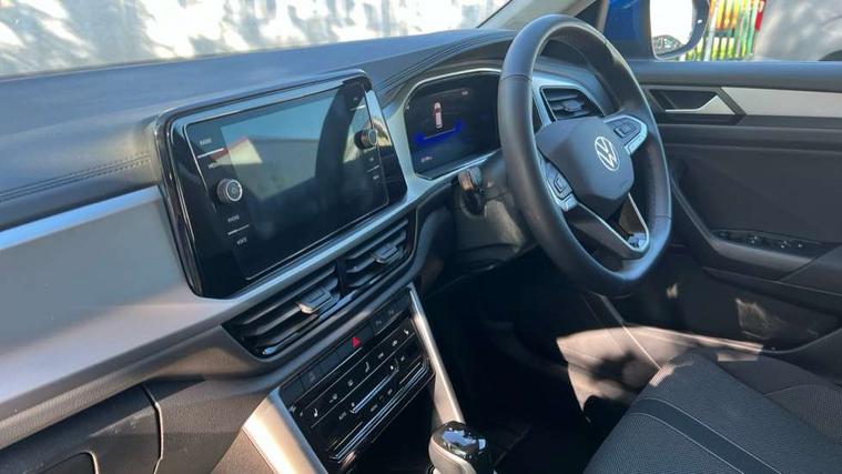 Advanced driver attention and drowsiness monitor, Dynamic road sign display, Emergency call service, Lane keeping system Lane Assist, Mobile phone interface, Modified key software - reduce switch off time for key status change to Long no motion, Online services, Park assist including front and rear parking sensors, Power assisted speed sensitive steering, Rear view camera, Service interval indicator, Tailgate/trunk lid release from outside, Think blue trainer driver tips and journey analysis, Warning sound and light for front seatbelts unfastened, Wireless app connect, Battery regeneration during braking, Front shock absorption, Rear shock absorption chassis with increased ride height, Start/stop function with battery regeneration, DAB Digital radio, Diversity antenna for FM reception, Front and rear 6 speakers, Music playback - MP3, WMA and AAC files, Premium USB cable in choice of either Apple or Android smartphone compatibility, SD card slot, Simultaneous pairing of 2 compatible mobile devices, Title and cover art display, We Connect and We Connect Plus functionality, Auto dimming interior rear view mirror, Automatic hazard lights activation under emergency braking, Automatic headlight control with LED separate daytime running lights with coming/leaving home function, Black roof rails, Body coloured bumpers and radiator grille with chrome trim and front fog lamps with chrome bezel, Body coloured exterior mirror housings and door handles, Electrically adjustable and heated door mirrors, Extended roof spoiler, Exterior mirrors aspherical on driver side, convex on front passenger side, External USB type C socket and charging sockets, Front windscreen wiper with intermittent wipe and 4 position delay, Heated rear window, LED 3rd brake light, LED rear combination lamps, LED rear number plate lights, Power windows with comfort operation and circuit breaker, Privacy glass for rear side windows and rear window, Rain sensor, Rear exhaust tailpipe, Rear fog light on one side and reversing lights on both sides, Rear side wing doors, Rear wash/wipe with intermittent wipe setting, Remote electrically foldable door mirrors, puddle lights and reverse activated passenger's door mirror, 12V power socket in centre console, 3 rear head restraints, 3 seat bench in 2nd row, 4 load lashing points in luggage compartment, Air care climatronic air conditoning system with active combination filter and 2-zone temperature control, Black stitching for floor mats, Ceramique roof liner, Cloth upholstery, Door and side trim panel in cloth, Drawer under drivers seat, Driver/front passenger seat height adjustment, Front centre armrest, Front comfort sports seats, Front cupholders x 2, Front reading light, Front seat back storage pockets, Glove compartment door with light, Instrument lighting, white adjustable panel illumination, Interior ambient lighting and surround lighting, Interior light delay, Isofix child seat preparation, Leather gearshift handle, Load-through provision with cup holder when folded down ('Unsplit rear seat bench, split folding backrest, with centre armrest), Luggage compartment lighting, Lumbar support for driver's and front passengers seat, Non-folding front passenger seat backrest, Single front passenger seat, Storage compartment in left and right luggage area, Storage compartment in rear doors, Storage compartments in driver and front passenger doors, Sunvisors with illuminated vanity mirrors, Variable boot floor, height adjustable and removable, Driver assistance pack without proactive passenger protection - T-Roc Life/Match, 3 point height adj front seatbelts + pretensioners, 3 point seatbelts in outer rear with ECE label, ABS, Child locks on rear doors, City emergency braking and pedestrian monitoring, Driver and front passenger airbag with front passenger airbag deactivation, Driver and front passenger safety-optimised head restraints, Drivers seatbelt reminder, Electronic parking brake, Electronic Stability Control (ESC) inc EDL (Electronic Differential Lock) and ASR (Traction Control), Front and rear passengers curtain airbag system including front side airbags, Front disc brakes, Hill start assist, Predictive pedestrian protection, Rear disc brakes, Two tone horn, Tyre pressure loss indicator, Volkswagen roadside assistance, Alarm with interior protection, Keyless locking and starting system keyless access with safelock, Pewter matt decorative inserts for intrument panel, centre console and door panels at the front, Trims for alloy wheels,