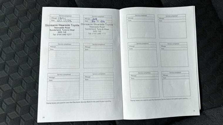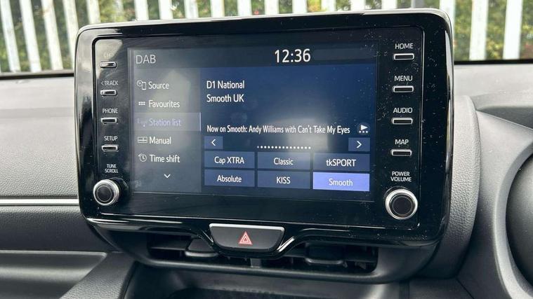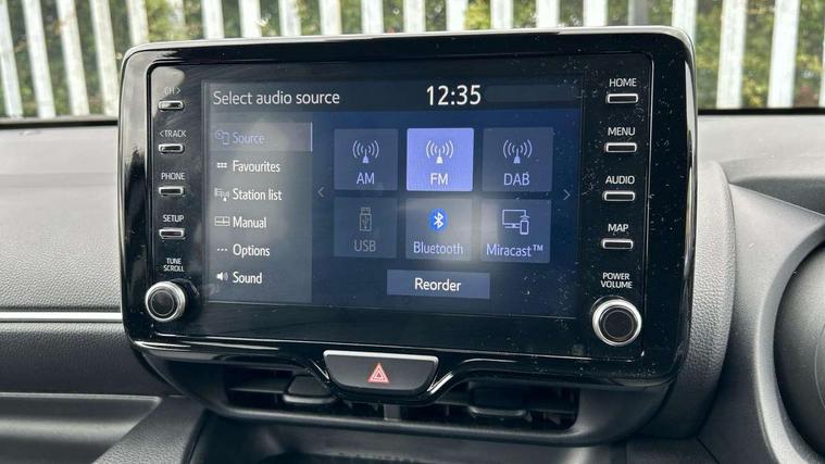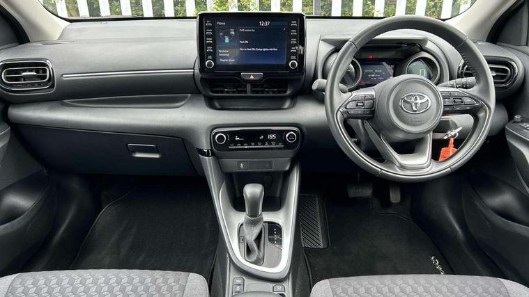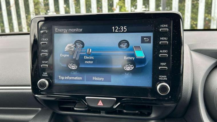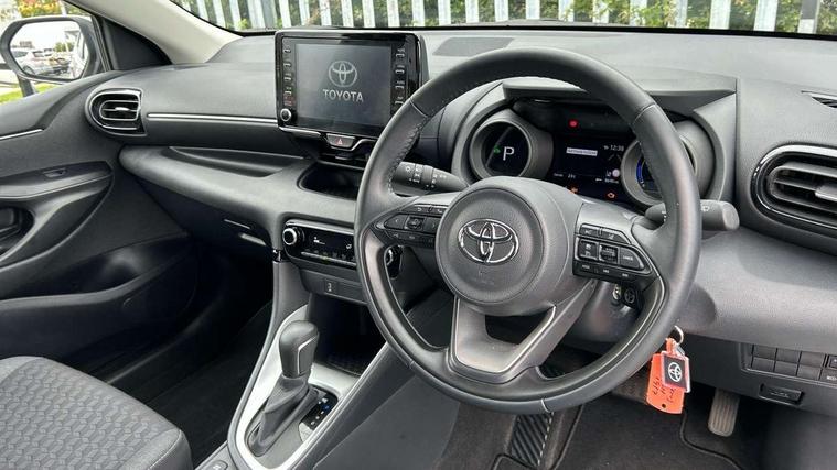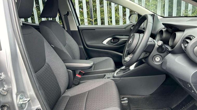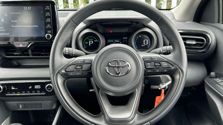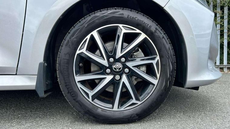 Adaptive cruise control, Adjustable speed limit with speed warning, Bluetooth connectivity, Colour binocular inspired displays with digital speedometer, E-call, Electric power steering, Hybrid energy display, Multi information display switches on steering wheel, Reversing camera, Smartphone integration with Apple CarPlay and Android auto, Tailgate, Voice recognition, Vehicle Stability Control (VSC), 4 speakers, 8" Multimedia display touch screen, USB connection, Acoustic windscreen glass, Auto windscreen wipers, Automatic headlights, Body coloured door mirrors, Electric adjustable heated door mirrors, Follow me home headlights, Front auto power windows with anti jam protection, Full LED rear lights, LED daytime running lights, LED front fog lights, LED front light guide, LED Headlights, LED High mounted stop lamp, LED Indicators, LED rear light guide, Manual headlight levelling, Painted chequered front grille, Rain sensor, Rear auto power windows with anti jam protection, Rear privacy glass, Rear side wing doors, Rear spoiler, Rear wiper, Shark fin antenna, Turning signal integrated indicators in door mirrors, Variable front intermittent wipers, 3 adjustable rear headrests, 3 spoke leather steering wheel, 60/40 split folding rear seat, Active headrests, Adjustable boot height, Auto air conditioning, Coat hooks in rear grab handles, Cup holders (2 front & door), Data Communication Module (DCM) connected services, Fabric upholstery, Front armrest, Glovebox, Grey roof lining, Height adjustable driver's seat, Isofix seat fixing, Leather gearshift, Pollen filter, Shopping bag hooks, Single front passenger seat, Tilt/telescopic steering column, 3 point seatbelts on all rear seats, ABS+EBD+Brake assist, Electronic parking brake, Emergency brake light system (EBS), Front passenger airbag on/off switch, Front seatbelt reminder, Hill start assist control (HAC), Rear child proof door locks, Rear seat belt reminder, Supplemental Restraint System (SRS) 8 airbags: Driver & passenger's airbags, dual side curtain airbags, side impact airbags, front centre airbag, Toyota Safety Sense 2, Precollison + Night time Pedestrian & Cyclist Detection, Lane Trace Assist, Auto High Beam, Intelligent ACC & Road Sign Assist, Tyre pressure warning system, 2x Master key, Alarm/immobiliser, Remote powered central double locking doors, Soft touch instrument panel, Space saver spare wheel,