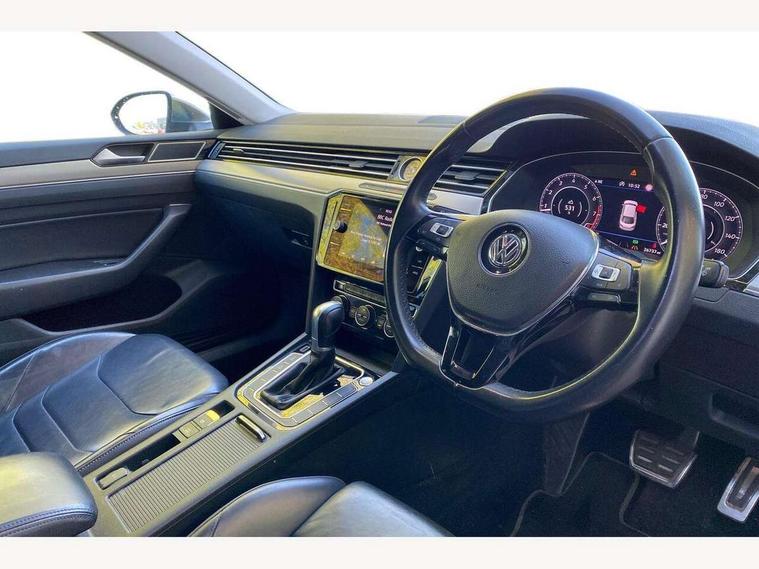 App-Connect, 'Lights On' Reminder warning buzzer, Active information display, Adaptive Cruise Control with pedestrian detection and speed limiter, Analogue clock, Door/tailgate open warning lights, Driver alert system, Driver profile selection, Lane assist, Press and drive key, Progressive power assisted steering, Remote tailgate release, Rev counter with fuel gauge, Service interval indicator, Touch screen display, Traffic message channel (TMC), Warning buzzer and light for front seatbelts unfastened, CD/MP3/WMA, USB and SD card reader, aux-in, DAB Digital radio, MDI with USB/iPod connection cables, Volkswagen media control, Auto dimming driver's door mirror, Auto dimming rear view mirror, Automatic activation of hazard warning lights, Automatic coming/leaving home lighting function, Automatic headlights with dusk sensor, Body colour bumpers, Body colour door handles, Chrome headlight surround, Chrome louvres in grille, Chrome side window surrounds, Dynamic light assist, Electric adjustable/heated/folding door mirrors, Front and rear electric windows, Front fog lights, Headlight range control, Headlight washers, Heated rear window, Heated windscreen washer jets, High beam assist, LED daytime running lights, LED headlights with dynamic curve lighting, LED rear lights, Matt chrome door mirrors, Rain sensor, Reverse activated kerb-view adjustment on passenger's door mirror, Side skirts with chrome inserts, Stainless steel door sill protection, Tinted rear windows, Trailer stability assist, Windscreen wipers/ intermittent wipe + 4 position delay, 12V Accessory socket in centre console, 12v socket in front centre armrest storage compartment, 2 bag hooks in luggage compartment, 3 rear head restraints, 3 spoke multi-function leather steering wheel, 3 Zone electronic climate control with automatic air recirculation, 60/40 split folding rear seat, Aluminium finish interior door handles, Ambient lighting, Cover for storage compartment in centre, Front + rear carpet mats, Front and rear interior lighting with delay and dimming function, Front centre armrest with storage box and rear air vents, Front cupholders x 2, Front footwell lights, Front seat and rear pockets, Gearshift paddles, Heated front seats, Height adjustable head restraints, Height/reach adjust steering wheel, Isofix system on outer rear seats, LED reading lights, Load through provision, Lockable, illuminated, cooled glovebox, Luggage compartment lighting, Mistral headliner, Nappa leather upholstery, Rear armrest with 2 cupholders, Removable luggage cover, Stainless steel foot rest, Stainless steel pedals, Storage box in luggage compartment, Storage compartment in driver's door, Storage compartment in passenger's door, Storage compartment in rear doors, Sunvisors with illuminated vanity mirrors, USB charging point, 3 rear 3 point seatbelts + pretensioners, ABS+EBD+Brake assist, Active bonnet, Driver/Front Passenger airbags, Driver/Front passenger WOKS head restraints, Drivers knee airbag, Electronic parking brake with auto hold, ESP with EDL + ASR, Front and rear curtain airbags, Front and rear seat side impact airbags, Front assist including city emergency braking, Front passenger airbag deactivation, Height adjustable front 3 point seatbelts + pretensioners, Hill start assist, Proactive passenger protection system, Two tone horn, Tyre pressure warning, Warning triangle, Alarm with interior protection, Anti-theft wheel bolts, Electronic engine immobiliser, Remote central locking with 2 remote folding keys, Piano black centre console, Full size alloy spare wheel,
