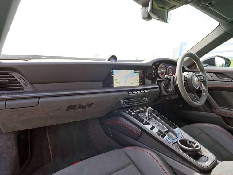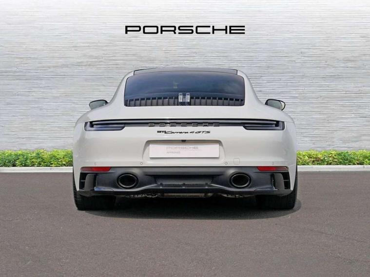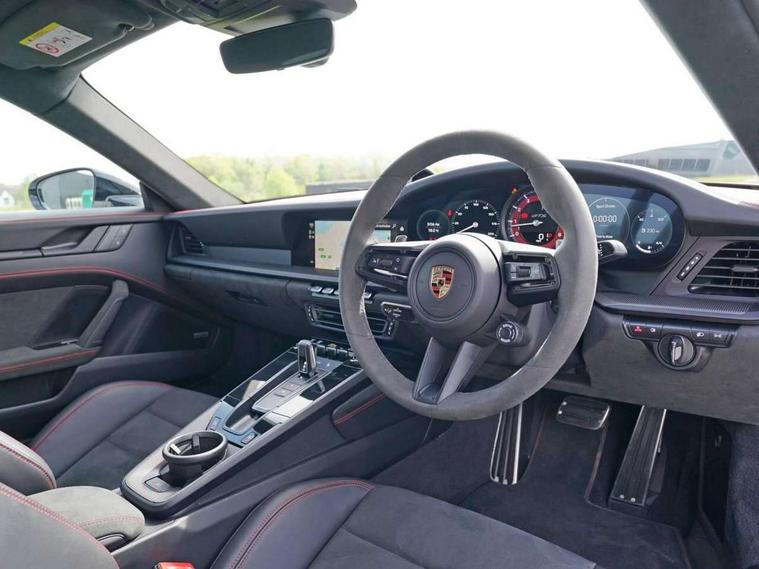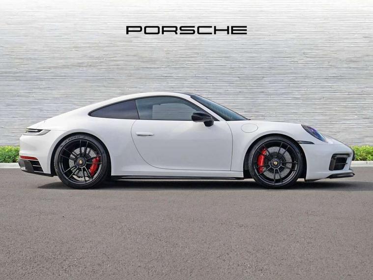 10.9 inch centre display, Automatic start/stop system, eCall emergency system, Gear indicator in rev counter, Instrument cluster with central analogue rev counter and two 7-inch TFT displays, Porsche Communication Management (PCM) including online navigation module, mobile phone preparation, audio interfaces and voice control system, Service indicator, Smartphone integration with Apple CarPlay and Android auto, Stationary management with HOLD function, Trip computer, Warn and brake assist including pedestrian protection, 8 Speed Porsche Doppelkupplung (PDK) with dual mass flywheel, All wheel drive with map controlled multi plate clutch Porsche Traction Management (PTM), Aluminium block and cylinder heads, Catalytic converters, Direct fuel injection (DFI), Dry sump lubrication, Expansion intake manifold, Four valve per cylinder, McPherson-strut suspension with anti-roll bar at front, Porsche Stability Management (PSM), ABS with extended brake functions, Porsche Torque Vectoring Plus (PTV Plus) inc electronically regulated rear differential lock and fully variable torque distribution, Twin turbocharger intercooled, Two gasoline particulate filter, VarioCam Plus variable valve timing and switchable valve lift, Water-cooled engine with thermal management, 4 valves per cylinder, 2 USB-C connectivity and charge ports in the centre console storage compartment, DAB Digital radio, 3rd brake light, Auto deploying rear spoiler, Automatic headlight activation including welcome home lighting, Automatically dimming interior and exterior mirrors with integrated rain sensor, Black trim strips, Body coloured bumpers, Green tinted heat insulating glass, Heated rear windscreen, Intelligent lightweight body in Aluminium/Steel composite construction, LED auxiliary light units in the front end with position lights, direction indicators and side indicators, LED daytime running lights, PORSCHE black lettering integrated in taillight strip, Power windows with one touch operation and door seal protection, Rear boot, Rear lid grille with vertical slats in satin black, Side skirts trim in black, Trims on sideskirts in black, Windscreen washer system with aero wiper blades and washer jets, 12V socket in front passenger footwell, 2 individual seats in 2nd row, 2+2 seater with rear engine, Ascending centre console with storage compartment, Black race-tex on steering wheel rim, seat centres, door handles, door panel armrests, gear lever, centre console storage compartment lid partially, Driver and front passenger illuminated vanity mirrors, Front and rear head restraints, Heated front seats, LED door lights, LED footwell lights, LED glove compartment lighting, LED ignition light, LED luggage compartment lighting, LED orientation light, LED reading lights, Lockable glove compartment, Luggage compartment lid release, Particle/pollen filter with active carbon filter, Single front passenger seat, Split folding rear seats, Storage compartments in each doors, Two individual cupholders 1x as inlet in centre console and 1x passenger side, Two zone auto climate control with separate temperature settings for driver/front passenger, automatic air recirculation mode incl air quality sensor, Sport Design pack - 911 GTS, 6 piston aluminum monobloc fixed front calipers and 4 piston aluminum monobloc fixed rear calipers with cross-drilled, internally vented brake discs, Electric parking brake, Electromechanical power brake, Full size two stage airbags for driver and front passenger, Pedestrian protection, Porsche side impact protection system includes side impact protection in doors, curtain, head/thorax airbags for driver/front passenger in each door, Tyre pressure monitoring system, Dashcam preparation, Engine immobiliser with remote central locking and alarm system with ultrasonic sound based interior surveillance, Porsche vehicle tracking system (PVTS Plus), Tyre sealing compound and electric air compressor kit,
