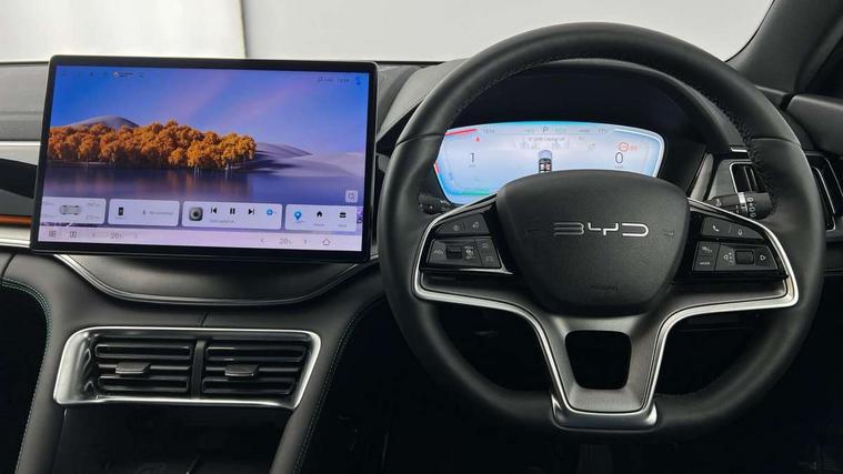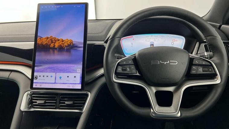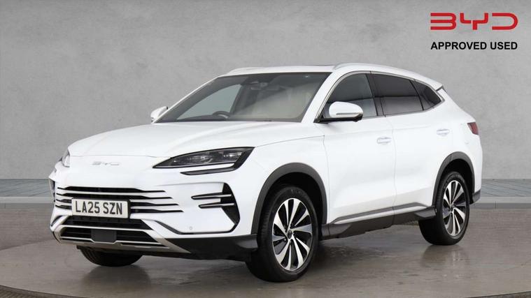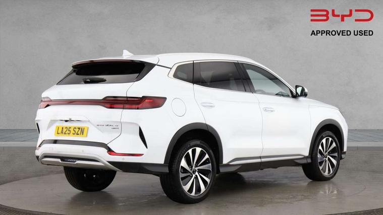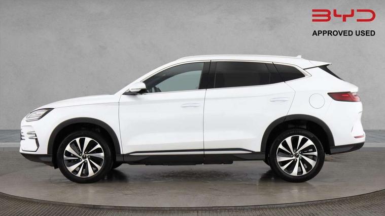 12.3" TFT full LCD instrument panel, 360 camera, Adaptive Cruise Control (ACC) and Intelligent Cruise Control (ICC), Automatic vehicle hold, Blind spot detection, BYD voice control assistant "Hi, BYD", Controller Deceleration Parking (CDP), Drive mode select (Eco, normal, sport, snow), e-Call (emergency call), Electric tailgate release, Emergency Lane Keeping Assist (ELKA), Forward collision warning, Front and rear parking sensors, Front cross traffic alert and front cross traffic brake, Head up Display, Indirect driver fatigue management, Intelligent Speed Limit Control (ISLC), Keyless system entry and start, Lane change assist, Lane Departure Assistant (LDA) and Lane Departure Warning (LDW), Lane departure prevention, PAS, Predictive collision warning, Rear collision warning, Rear cross traffic alert and rear cross traffic brake, Rollover Control System (RMI), Smartphone wireless charging, 2 x 15W, Traffic sign recognition (TSR), Vehicle-to-Load (V2L) function, 11kW on board charger, Mode 3 Type 2 charging cable (3 phase), V2L (Vehicle to load) power strip - Type F, 15.6" Electrically rotatable touchscreen, FM/DAB+ radio, Front USB ports, 1 x 18W Type C, 1 x 60W Type C, Infinity sound system with 10 speakers, Rear USB ports, 2 x 18W Type C, Aluminium roof rails, Auto dimming interior rear view mirror, Auto headlamps (on/off), Dynamic welcome lights, Electric folding and heated door mirrors, Emergency tow hook, Exterior mirror footlights, Follow me home headlights (The headlights turned on in advance and delayed off function), Front windscreen, UV protection, thermal insulation and sound proofing, High beam assist, LED 3rd brake light, LED daytime running lights, LED Headlights, LED taillights, One touch electric front/rear windows with pinch protection, Panoramic sunroof with anti-pinch sensor and electrically adjustable sunshade, Rain sensor windscreen wipers, Rear fog lights, Rear side wing doors, Rear window and rear windscreen with tinted glass, Rear wiper, 12V power outlet, 3 seat bench in 2nd row, 8 way electrically adjustable drivers seat, Adjustable rear headrests, Boot parcel shelf, Driver and passenger sunvisors with illuminated vanity mirrors, Driver seat memory function, Front centre armrest with 2 cupholders, Front LED reading lights, Front passenger seat with 4-way electric adjustment, Front seat footlights, Heat pump, Heated front seats, Heated steering wheel, Integrated headrest in front seats, ISOFIX and i-Size for front passenger and outer rear seats, LED front door lights, Nylon floor mats, PM2.5 air filter, PM2.5 air purification system, Rear air vents, Rear armrest with 2 cupholders, Rear side LED reading lights, Rhythm-reactive multi-colour ambient lighting, Single front passenger seat, Split folding rear seats - 40/60, Vegan leather multifunction steering wheel, Vegan leather upholstery, Ventilated front seats, 3x3 point rear seatbelts, ABS/EBD, Automatic emergency braking system, Brake override system (BOS), Child presence detection, Comfort stop, Door open warning, Driver airbag, Electric parking brake, Force limiting pre-tensioned front seat belts, Front centre airbag, Front passenger airbag, Front passenger airbag deactivation, Front side airbags, Hill descent control, Hill hold control, Hydraulic Brake Assist (HBA), Hydraulic brake boost, Mechanical child safety lock, Rear middle seat force limiting seat belt, Rear seat belt pretensioners, Reflective vest, Side curtain airbags, Traction control system (TCS), Tyre pressure monitoring system (TPMS), Vehicle Dynamics Control System (VDC), Warning triangle, 2 x Smart keys, Anti theft alarm system, Automatic door locking, 19" Bi-colour alloy wheels, Tyre nut covers remover, Tyre repair kit,