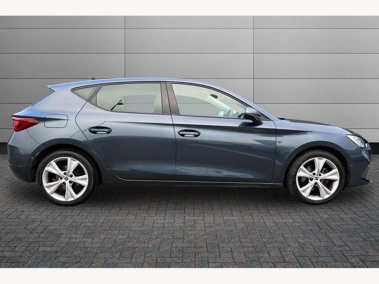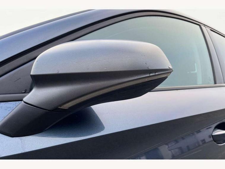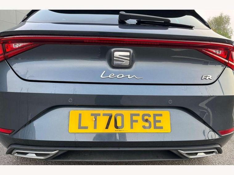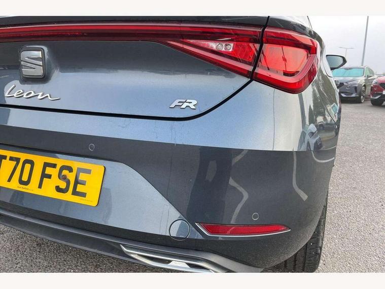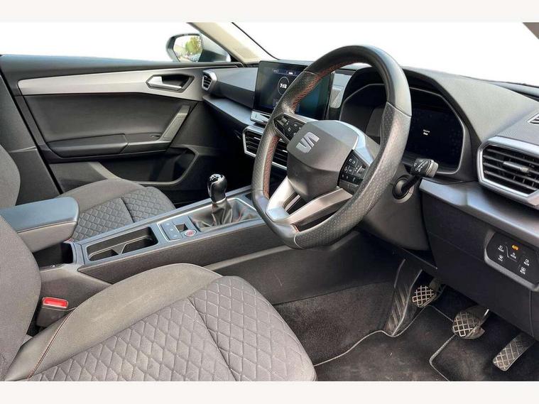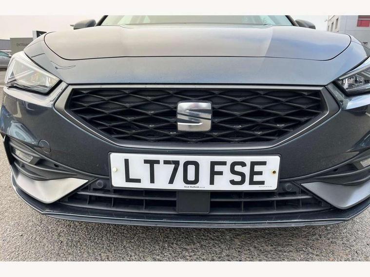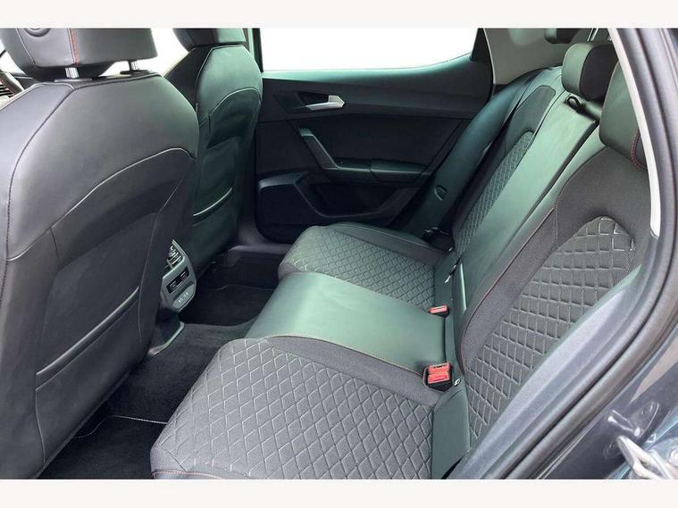 Digital cockpit, Front assist with forward collision warning braking reaction to vehicles, pedestrians and cyclists, Full link smartphone integration with Mirror Link, wireless Apple CarPlay and wired Google Android Auto, Lane keeping system, Lockable tailgate, Park assist (inc front/rear parking sensors), Power assisted speed sensitive electro-mechanical steering, RPM, trip computer, outside temp gauge, instrument light brightness, low fuel warning light, lights on reminder, gearshift indicator, SEAT drive profile with 4 modes (Eco/Normal/Sport/Individual), throttle response, Service interval indicator, Start/stop system with regenerative braking, Sports suspension, XDS electronic differential lock and dynamic traction support, Auxiliary input socket, Auto dimming rear view mirror, Body colour door handles, Body coloured bumpers, Cosmo grey exterior mirrors with integrated LED indicators, Dark tinted rear windows, Electric front/rear windows, Electrically adjustable, heated and folding door mirrors, FR sports bumper, Illuminated front door sill, LED front fog lamps with cornering function, LED headlights and tail lights with dynamic turn signals, welcome light silhouette from exterior mirrors and dynamic headlight range control, LED rear fog lamp, Rain sensing wipers, Rear wash/wipe, Separate daytime running light with automatic headlight control and coming home feature, 12v power point in centre console, 60/40 split rear bench seat with armrest, Ambient lighting in door trim, Cloth upholstery, Driver/passenger manual seat height adjustment, Dust/pollen filter, Flat bottomed perforated leather steering wheel with red stitching and FR logo and leather gear stick, Folding boot cover, Front and rear height adjustable headrests, Front and rear reading lights X 4, Front centre armrest, Front seatback storage pockets, Height/reach adjust steering wheel, Interior lighting with LED lighting in sunvisor, glovebox and rear headlining, ISOFIX points in outer rear seats with top tether anchorage points, Luggage tie-down hooks, Lumbar adjustment for front seats, Sunvisors with covered illuminated mirror, Three zone climate control, Tool kit, Media system plus with navigation - Leon, 3 point seatbelts on all rear seats, ABS, Brake control system - ESC and brake booster, Child proof door locks, Driver and front passenger airbags with front passenger airbag de-activation, front side and curtain airbags, Electronic parking brake, Extended safety system - seat belt tensioner, window closure and hazard lights, Hill hold control, Rear disc brakes, Seat belt reminder for front and rear seats, Tiredness recognition system, driver alert system, Tyre pressure monitoring system, Anti theft alarm system with interior monitoring in cab, backup horn and towing protection, KESSY Go (Keyless start), Locking wheel bolts, Wireless phone charging, Chrome interior detailing, 17" Dynamic Bi-spoke alloy wheels with 91W tyres,