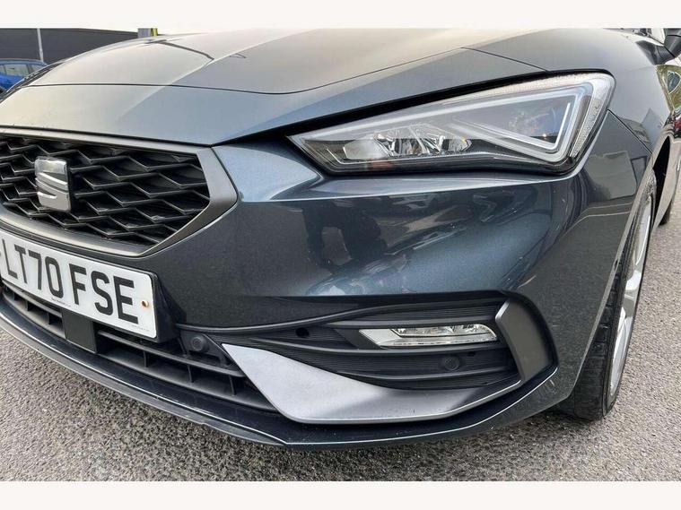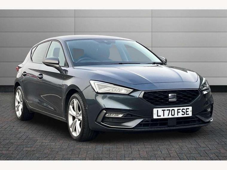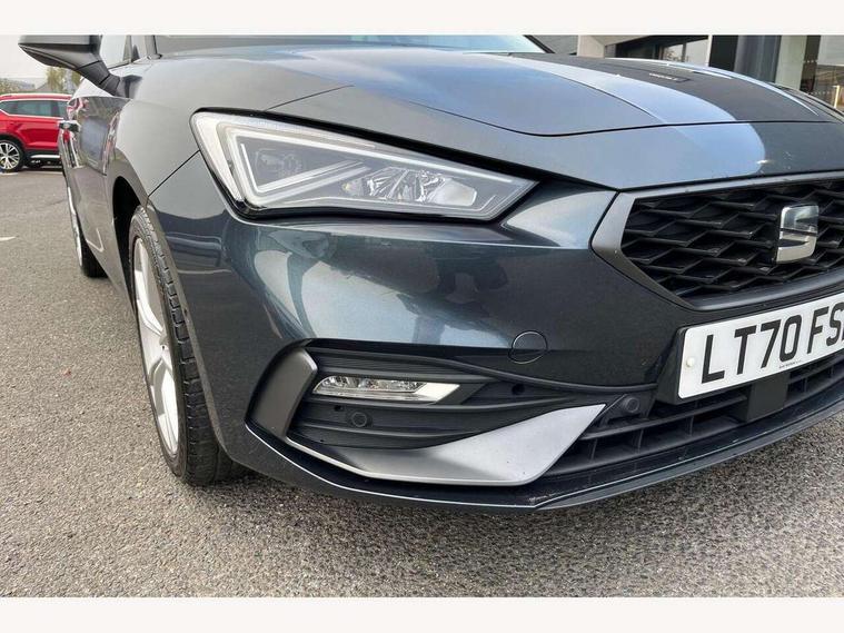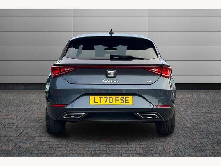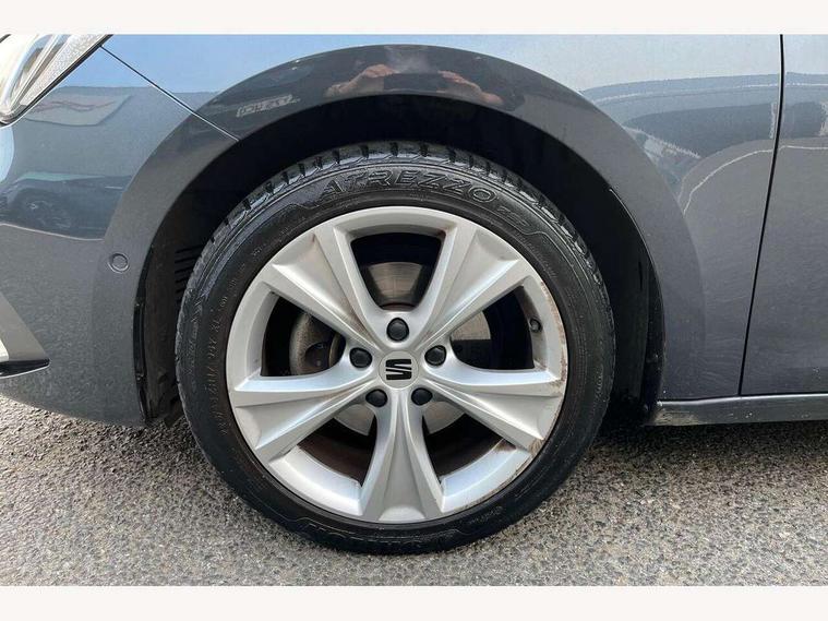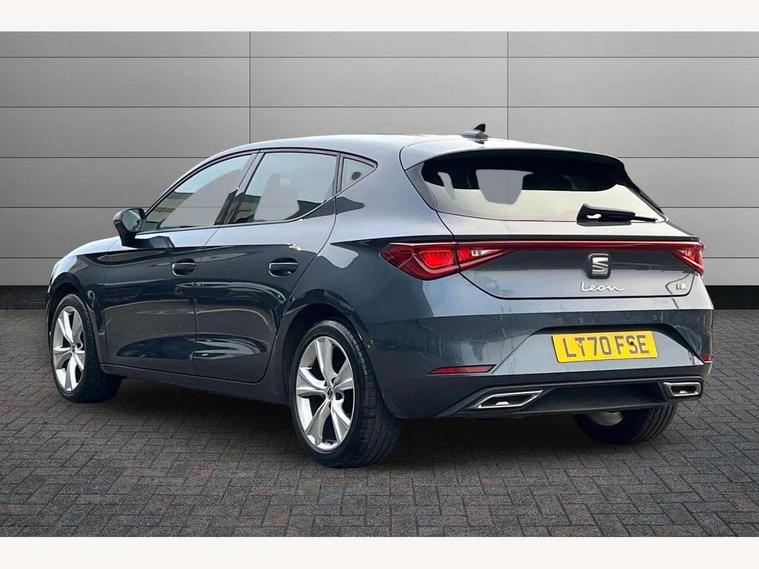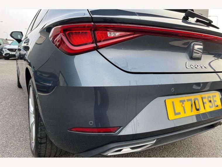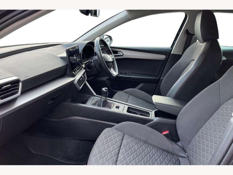 Digital cockpit, Front assist with forward collision warning braking reaction to vehicles, pedestrians and cyclists, Full link smartphone integration with Mirror Link, wireless Apple CarPlay and wired Google Android Auto, Lane keeping system, Lockable tailgate, Park assist (inc front/rear parking sensors), Power assisted speed sensitive electro-mechanical steering, RPM, trip computer, outside temp gauge, instrument light brightness, low fuel warning light, lights on reminder, gearshift indicator, SEAT drive profile with 4 modes (Eco/Normal/Sport/Individual), throttle response, Service interval indicator, Start/stop system with regenerative braking, Sports suspension, XDS electronic differential lock and dynamic traction support, Auxiliary input socket, Auto dimming rear view mirror, Body colour door handles, Body coloured bumpers, Cosmo grey exterior mirrors with integrated LED indicators, Dark tinted rear windows, Electric front/rear windows, Electrically adjustable, heated and folding door mirrors, FR sports bumper, Illuminated front door sill, LED front fog lamps with cornering function, LED headlights and tail lights with dynamic turn signals, welcome light silhouette from exterior mirrors and dynamic headlight range control, LED rear fog lamp, Rain sensing wipers, Rear wash/wipe, Separate daytime running light with automatic headlight control and coming home feature, 12v power point in centre console, 60/40 split rear bench seat with armrest, Ambient lighting in door trim, Cloth upholstery, Driver/passenger manual seat height adjustment, Dust/pollen filter, Flat bottomed perforated leather steering wheel with red stitching and FR logo and leather gear stick, Folding boot cover, Front and rear height adjustable headrests, Front and rear reading lights X 4, Front centre armrest, Front seatback storage pockets, Height/reach adjust steering wheel, Interior lighting with LED lighting in sunvisor, glovebox and rear headlining, ISOFIX points in outer rear seats with top tether anchorage points, Luggage tie-down hooks, Lumbar adjustment for front seats, Sunvisors with covered illuminated mirror, Three zone climate control, Tool kit, Media system plus with navigation - Leon, 3 point seatbelts on all rear seats, ABS, Brake control system - ESC and brake booster, Child proof door locks, Driver and front passenger airbags with front passenger airbag de-activation, front side and curtain airbags, Electronic parking brake, Extended safety system - seat belt tensioner, window closure and hazard lights, Hill hold control, Rear disc brakes, Seat belt reminder for front and rear seats, Tiredness recognition system, driver alert system, Tyre pressure monitoring system, Anti theft alarm system with interior monitoring in cab, backup horn and towing protection, KESSY Go (Keyless start), Locking wheel bolts, Wireless phone charging, Chrome interior detailing, 17" Dynamic Bi-spoke alloy wheels with 91W tyres,