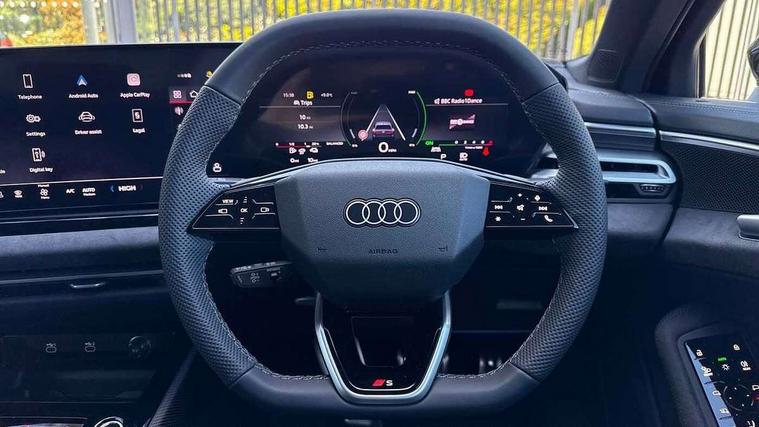 All wheel steering, Audi application store, Audi assistant, Audi connect emergency call and service, Audi connect with Amazon Alexa Integration, Audi digital key, Audi drive select, Audi phone box with wireless charging, Audi virtual cockpit, Automatic start/stop system with coasting functionality, Bluetooth interface, Lane departure warning with emergency assist, Luggage compartment lid with Electric opening / closing, MMI 10.9" front passenger touch display, MMI navigation plus with high resolution 14.5" OLED touchscreen colour display, Power assisted steering, Service interval indicator, Side assist and exit warning with rear cross-traffic assist and rear turn assist, Smartphone interface includes wireless Apple carplay/Android Auto, Voice control system, 3 pin 10 amp domestic charging cable, Compact e-tron charging system, Fuel tank 46L, Hybrid propulsion system, Industrial connector CEE 32A, 230V, long and straight for the e-tron charging system, Mode 3 charging cable for public charging (AC), Quattro with ultra technology, Type 2 socket for AC charging, Audi sound system impressive sound with 10 loudspeakers including centre speaker and subwoofer, 6-channel amplifier with a total output of 180 watts, DAB Digital radio, USB ports with charging function, Audi Matrix LED technology, Auto dimming rear view mirror, Automatic-dynamic headlight range control, Black door handle inserts, Body coloured door handles, Dipped beam, main beam, position light, dynamic indicator and cornering light, Door mirrors - electrically adjustable, heated, folding and auto dimming on both sides, Dynamic light scenarios of the coming home/leaving home function when stationary, Electric front/rear windows, Exhaust-pipe in dark chrome, Frameless auto dimming interior rear view mirror, Front illuminated aluminium inlay door sill trims with S logo, Headlight cleaning system, LED headlights Plus incl. digital daytime running lights, turning light, all-weather light, motorway light, manouevring light and intersection light, LED rear lights pro incl. brake lights, tail lights, rear number plate lights, reversing lights, continuous light strip, LED third brake light, Privacy glass, Rain and light sensors, Rear and side windows with heat insulating glass, Rear boot, Rear side wing doors, S line exterior styling, Sport exterior inc Radiator grille, air inlets and diffuser in scandium grey as well as inlay in diffuser in selenite silver, White rhombus logo projection light in exterior mirrors, Windscreen with heat insulating and acoustic glazing, 3 seat bench in 2nd row, 3-spoke Sport leather steering wheel flat top and bottom with multifunction and shift paddles, 4 way electric lumbar support for driver and front passenger, 4 zone deluxe automatic climate control, 40:20:40 split folding rear seat bench with centre armrest and cup holders, Centre armrest, front- adjustable angle with four settings, Convenience auxiliary air conditioning, Dinamica microfibre/Artificial leather upholstery, Electrically adjustable front seats, Front and rear floor mats, Front head restraints, Heated front seats, i-Size child seat mounting on the front passenger side and outer rear seats, i-Size and top tether on the outer rear seats, Manual steering wheel adjustment, Rear headrests, Single front passenger seat, Sport front seats, Stainless steel pedals and footrest, Steering wheel trim in chrome look, S emblem, steering wheel grips in perforated leather and contrasting stitching, Ambient lighting package plus - A6, Black exterior package - A6, Drive and Park assistance package - A6 Edition 1, Protective warning assistance package - A6, 3x3 point rear seat belts, Acoustic vehicle alerting system, Black seat belts, Convenience key with safelock, Driver and front passenger airbags, EBD - Electronic brakeforce distribution, Electric rear child safety lock, Electromechanical parking brake, Electronic Stability Control (ESC) including ABS, ASR and EDL, First aid kit with warning triangle and vests, Front passenger airbag deactivation, Proactive occupant protection, front, side and rear, Red brake calipers, Seatbelt monitoring, Side airbags in front and rear with head airbag system and front interaction airbag, Standard 18"steel disc brakes front and rear, Tyre pressure monitoring system, Anti theft alarm, Anti-theft wheel bolts, Immobiliser, Keyless Go, Remote central locking, Accents in the interior in aluminium look, Carbon square structure inlays, Upper and lower interior elements in dinamica microfibre, Wraparound interior elements in artificial leather, Tyre repair kit,