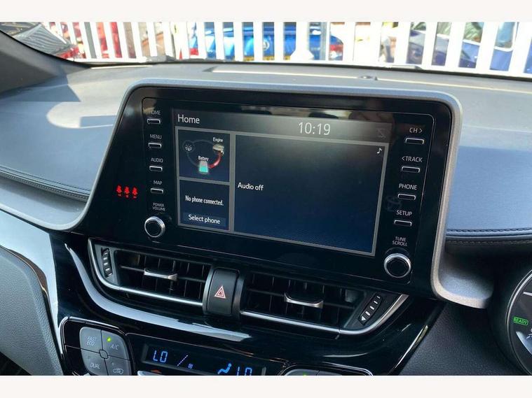 4.2" coloured TFT screen for multi-information display, Adaptive cruise control, Bluetooth connectivity, E-call, Electric power steering, Hybrid system indicator, Lane departure alert with steering control, Lane trace assist, Push button start, Push button tailgate release, Remote boot door release in cabin, Remote boot door release in key, Reversing camera, Road sign assist - RSA, Smart voice assist, Trip computer, Voice recognition, Vehicle Stability Control (VSC), 6 speakers, AM/FM radio, DAB Radio (Digital Audio Broadcasting), Toyota touch 2 multimedia system with 8" display, USB connector, Wi-fi connectivity, Anti-jam protection on power windows, Auto high beam, Auto up and down function on all power windows, Automatic headlights, Automatic headlights cut-off, Black and body coloured rear bumper, Black lower front grille, Black upper front grille, Body colour door handles, Body colour door mirrors, Body colour front spoiler lip, Body coloured front bumper, Boot door release with push button, Electric heated door mirrors, Follow me home headlights, Front and rear power windows, Front fog lights, Headlight cut off reminder, Honeycomb lower front grille, LED daytime running lights, LED High mounted stop light, LED rear brake lights, LED rear combination lights, Manual headlight levelling, Manually retractable door mirrors, Noise reduction layer on front windows and windscreen, Power adjustable door mirrors, Rear side wing doors, Rear spoiler, Rear tailgate, Rear window defogger, Rear window wiper, Reflective LED headlights, Shark fin antenna, UV-filter on driver and passenger windows, UV-filter on rear windows, 12v power outlet - front, 3 rear headrests, 3 seat bench in 2nd row, 3 spoke leather steering wheel, 60/40 split folding rear seat, Adjustable rear headrests, Adjustable speed limiter switch on steering wheel, Assist grips front and centre pillar, Audio and telephone switches on steering wheel, Black front door assist grips, Boot light, Chrome interior door handles, Cloth upholstery, Driver and front passenger personal light, Driver and front passenger Whiplash Injury Lessening seats, Dual zone automatic air conditioning, Floor mats, Front cupholders, Front head restraints, Front sports seats, Glovebox with internal light, Hard tonneau cover, Hooks for luggage holding net, Humidifying Nanoe air purifier, Illuminated entry system, Isofix attachments on outer rear seats, Leather gearshift, Light on driver sun visor, Light on passenger sun visor, Manual telescopic steering wheel, Manual tilt steering wheel, Manually adjustable lumbar support on driver seat, Manually height adjustable driver seat, Manually height adjustable front passenger seat, Manually reclining driver seat, Manually reclining front passenger seat, Manually sliding driver seat, Manually sliding front passenger seat, Microphone on front personal light, Mirror on driver sun visor, Mirror on passenger sun visor, Multimedia switches on steering wheel, Pollen filter, Shopping bag hooks, Single front passenger seat, Slow opening on lower glovebox, Voice recognition switch on steering wheel, 16 Disk front wheel brake, 3x3 point rear seatbelts, ABS+EBD+Brake assist, Electronic parking brake, Front and rear seatbelt reminder, Front passenger airbag on/off switch, Hill start assist control (HAC), Pre collision system with pedestrian detection, Pre-tensioners and force limiters, Rear door child safety locks, SRS Airbags - Driver + Front passenger, front side, front and rear curtain and driver's knee airbags, Toyota safety sense, Tyre pressure monitoring system, Tyre pressure warning system, Acoustic vehicle alert system (AVAS), Glass-breaking alarm sensors, Immobiliser, Intrusion alarm, Intrusion sensor, Motion sensor alarm, Power door locks, Power passenger window lock, Remote central locking, Black lower dashboard, Black upper dashboard, Grey deco line on upper dashboard, Matte black centre console, Tyre repair kit,